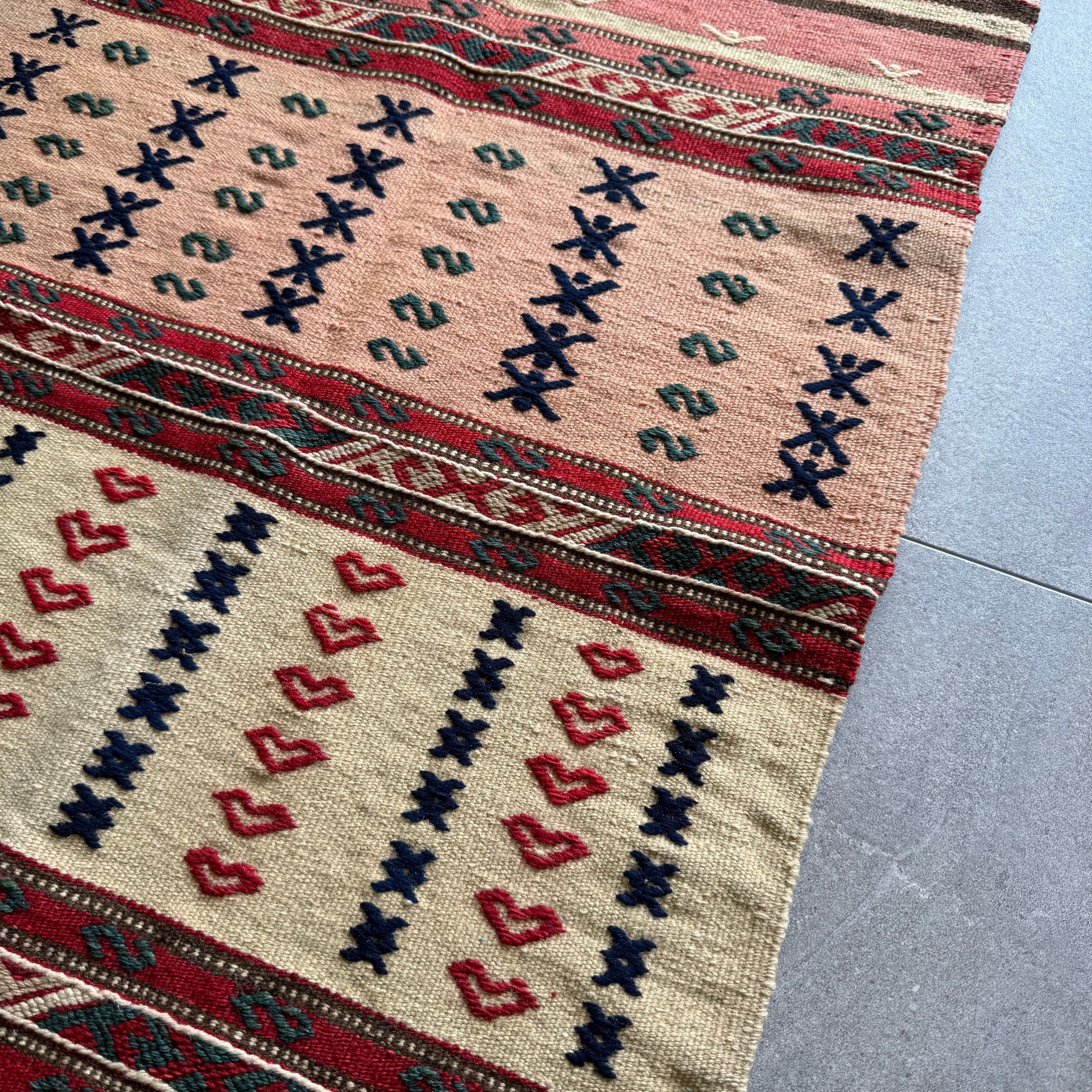 優しい色と絨毯が美しいキリムです。お部屋の雰囲気を明るくしてくれます。