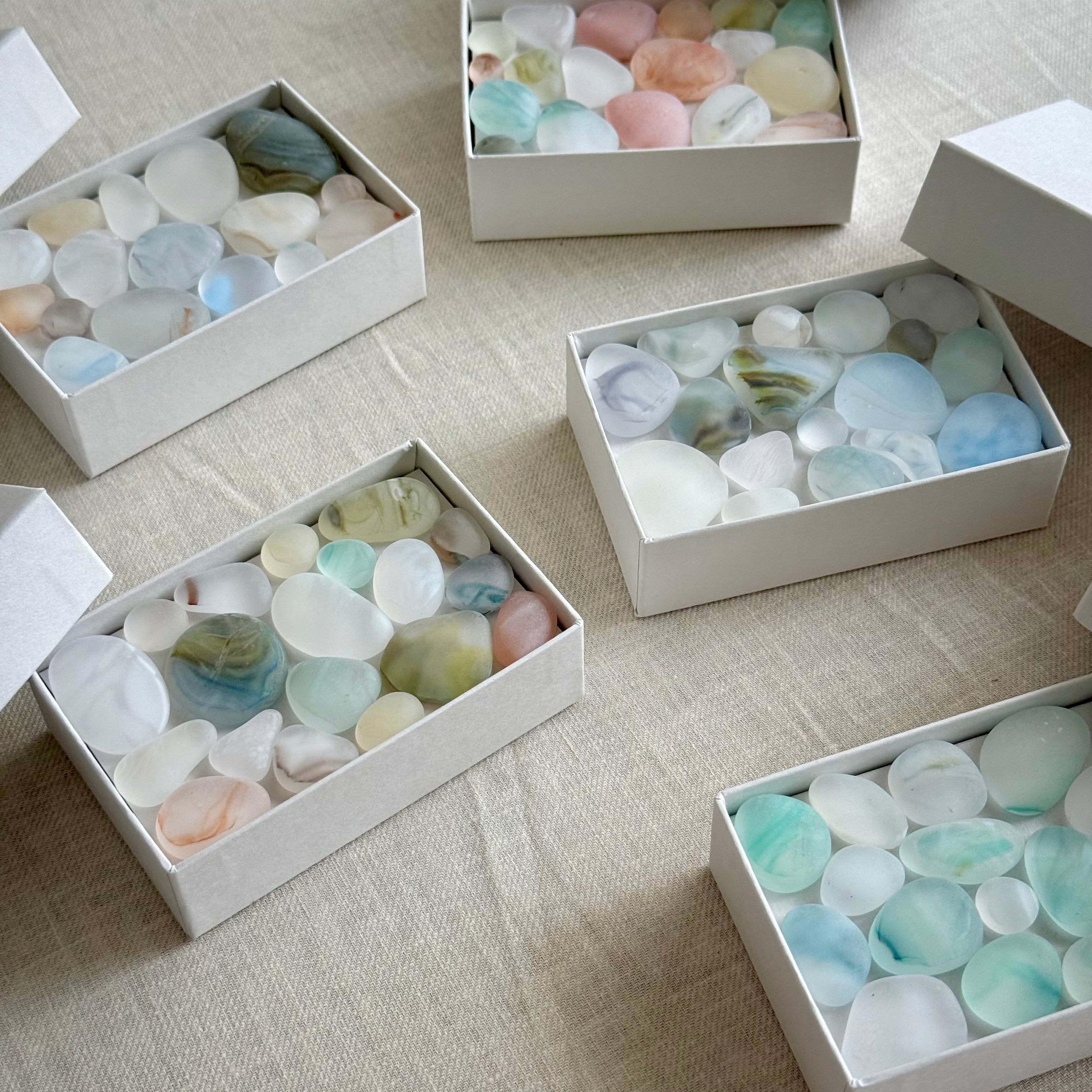 箱にぴったりと入っている石たちは、取り出して並べたり、小皿に乗せてアロマオイルを垂らしたりしてお使いいただくことも可能です。