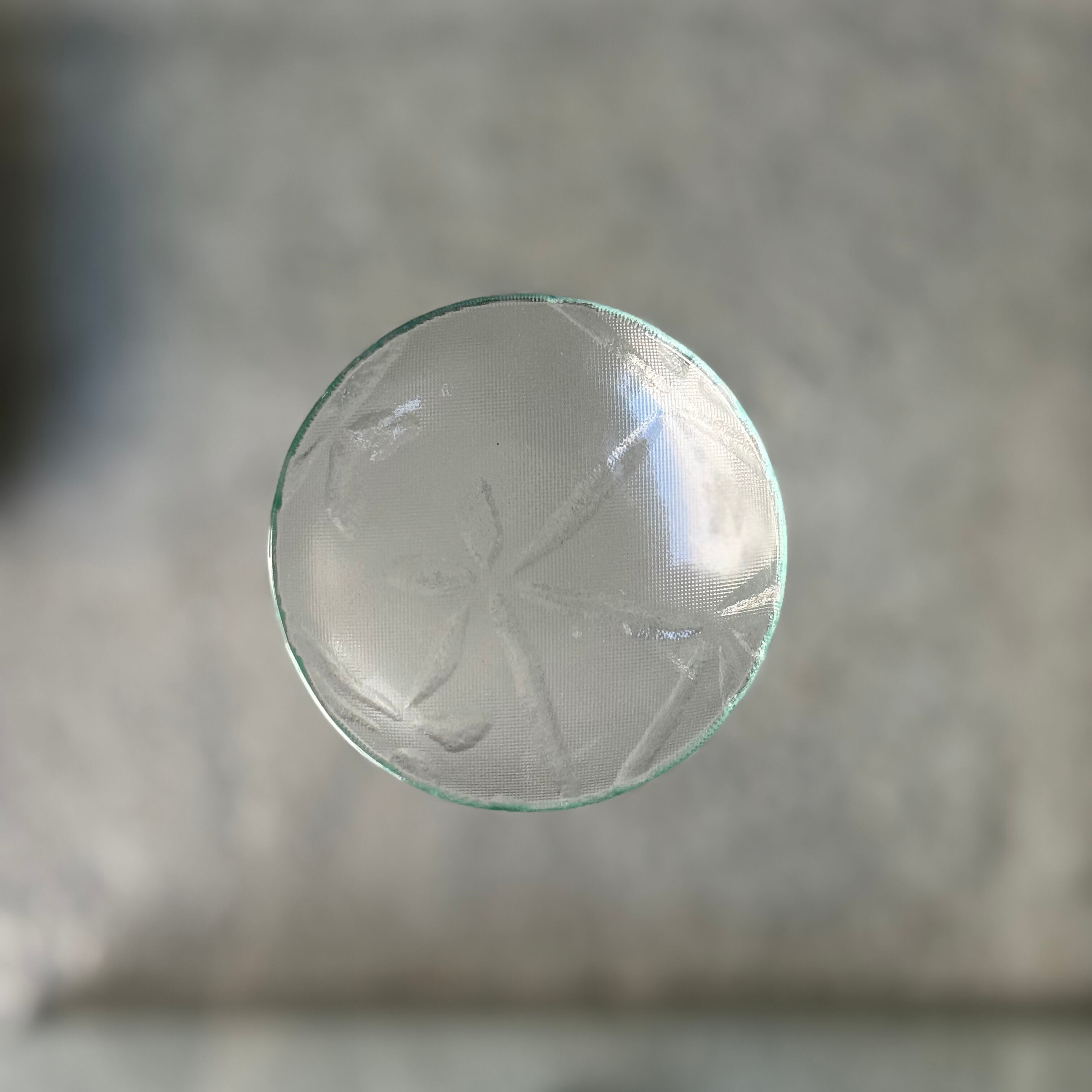 熟練の職人が、板ガラスを1つずつ手作業で丸くカットし、電気炉で18時間かけて焼成して制作しています。