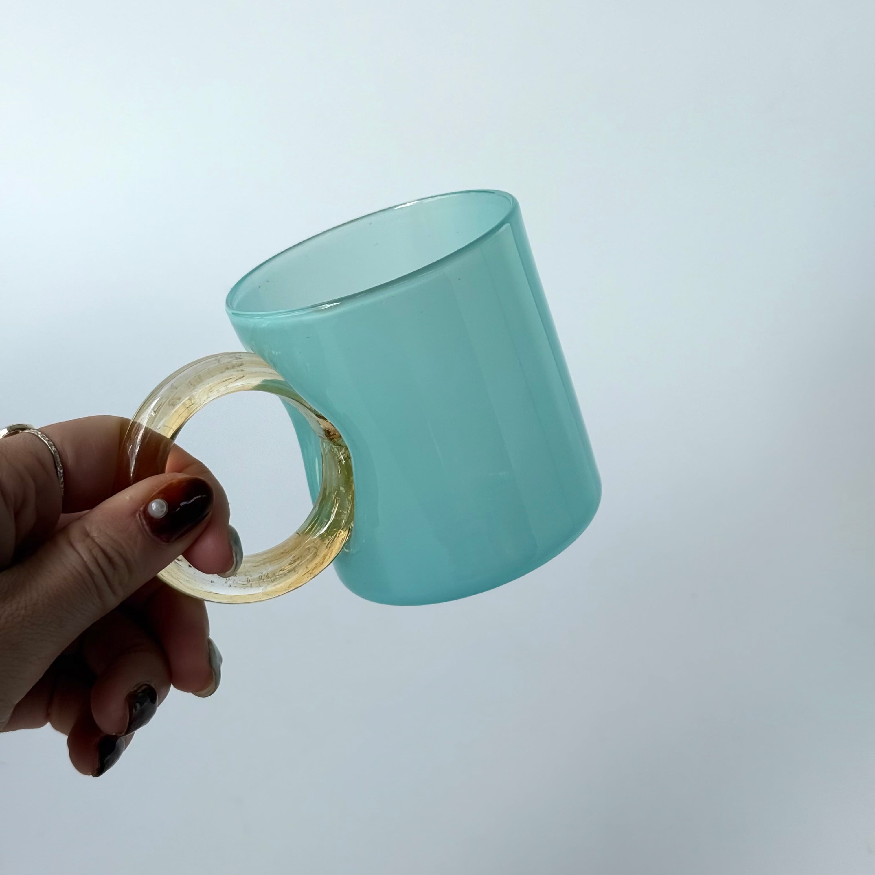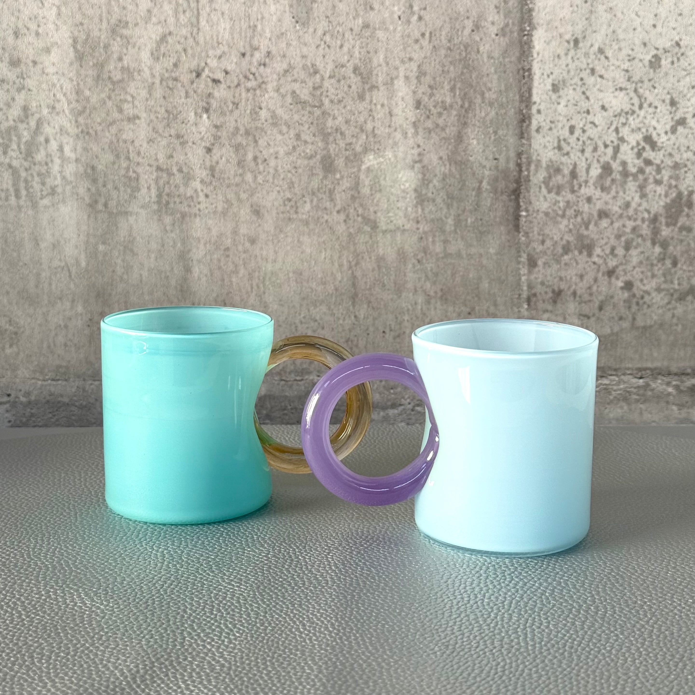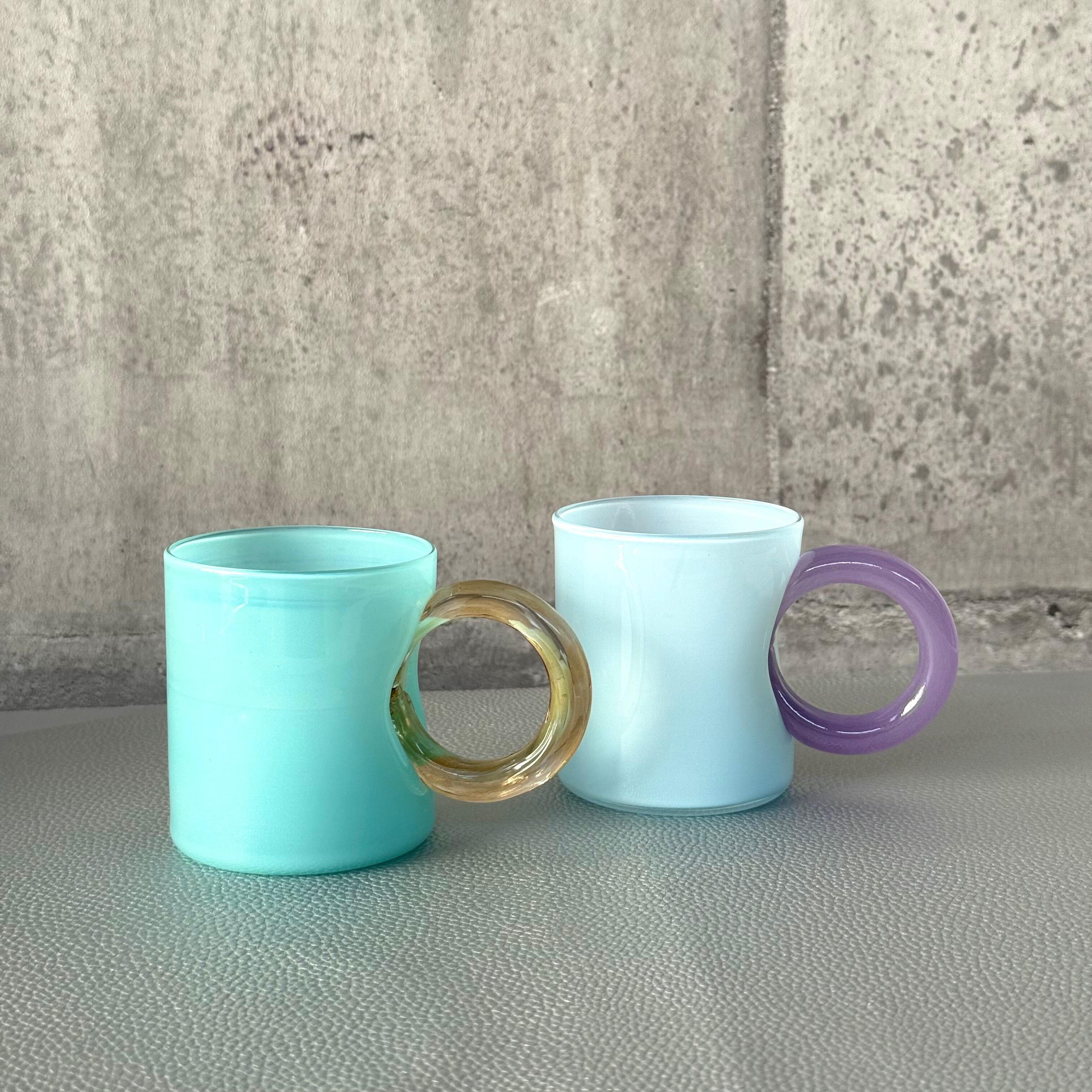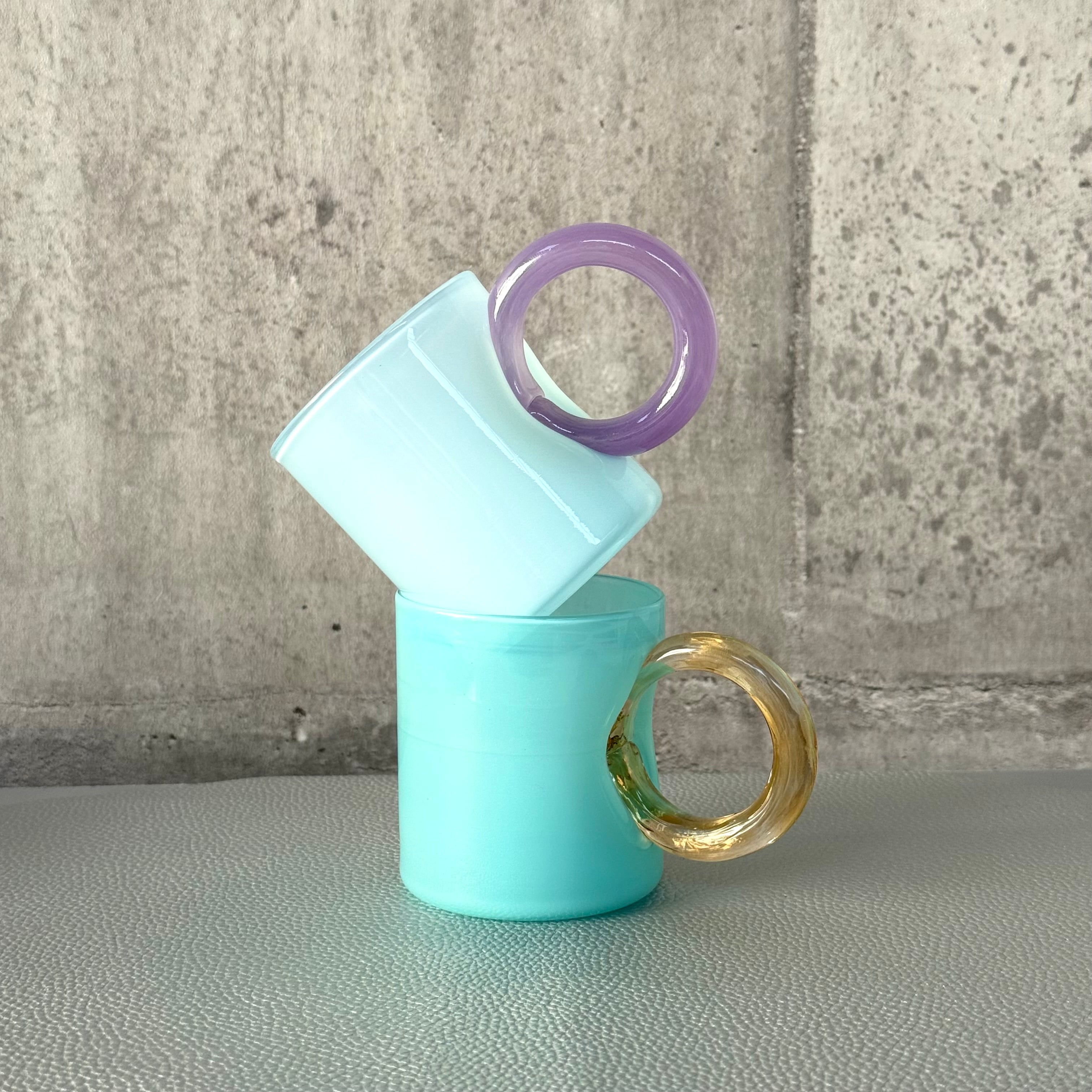 ・小さな気泡や不純物が、制作の過程で付着している場合がございます。また、取っ手部分に切り込みのような跡がございますが、制作の過程でできるものでヒビではありません。使用上は問題ない作品となっておりますので予めご了承ください。
