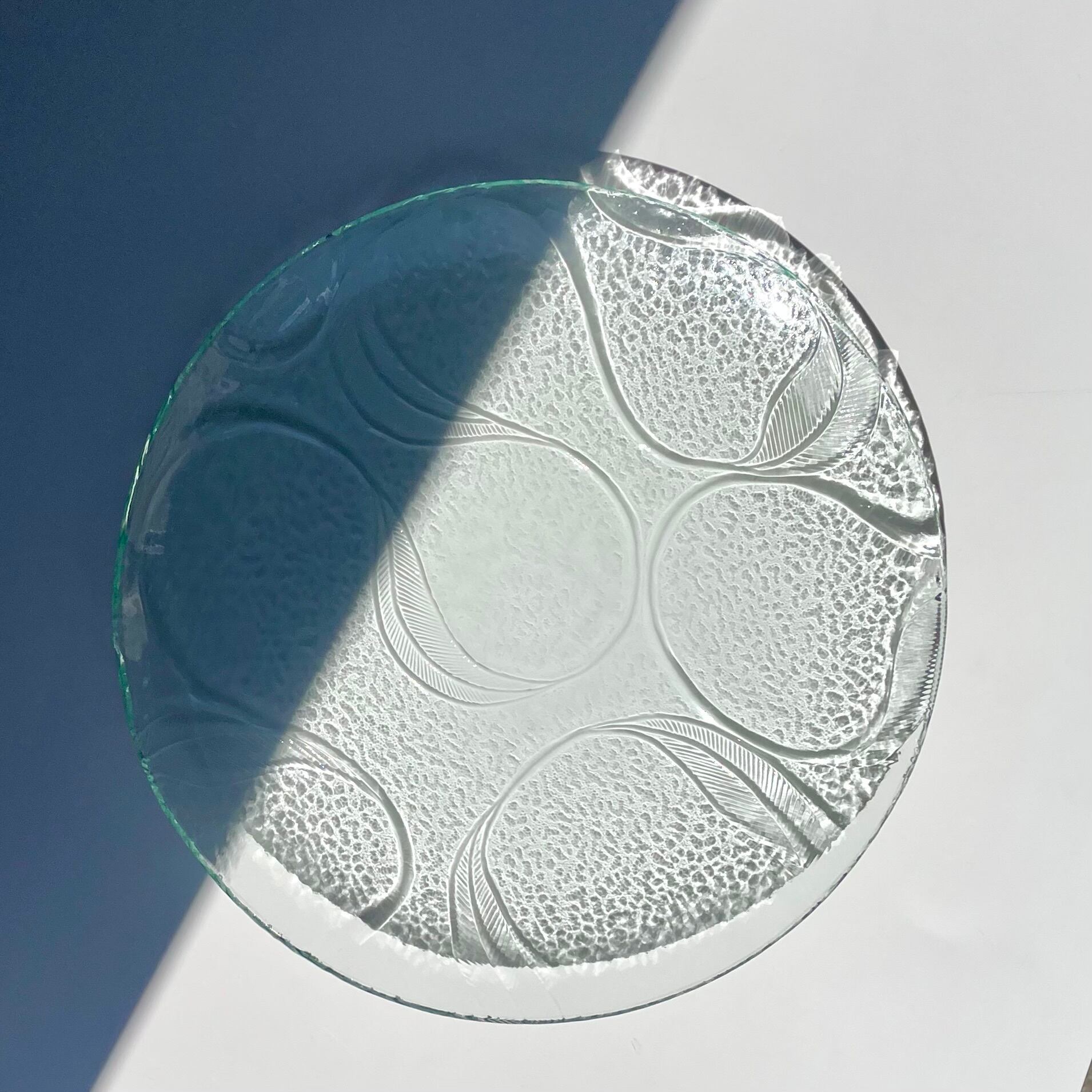 熟練の職人が、1つずつ手作業で板ガラスを丸くカットして、電気炉で18時間かけて焼成し制作しています。
