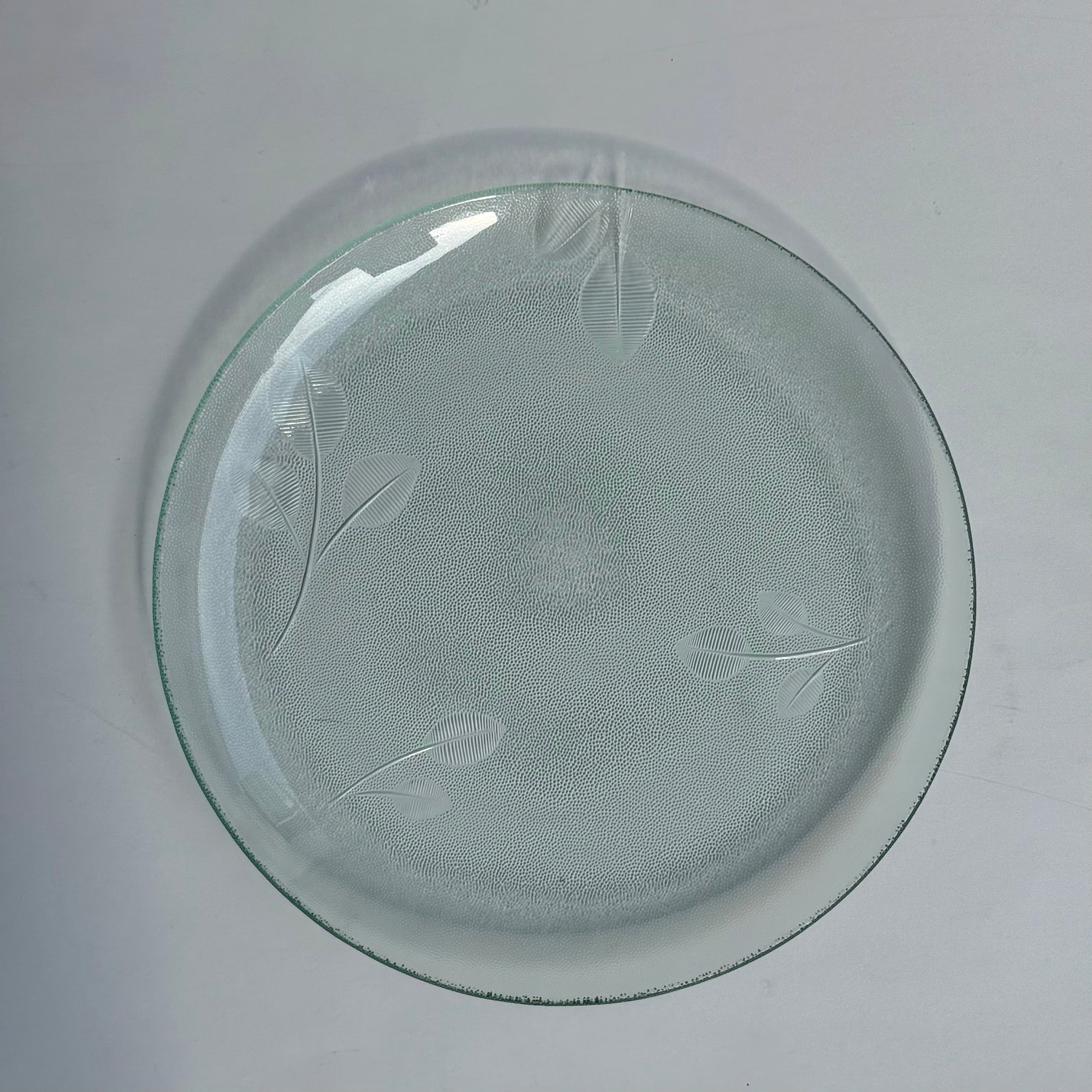 熟練の職人が、1つずつ手作業で板ガラスを丸くカットして、電気炉で18時間かけて焼成し制作しています。