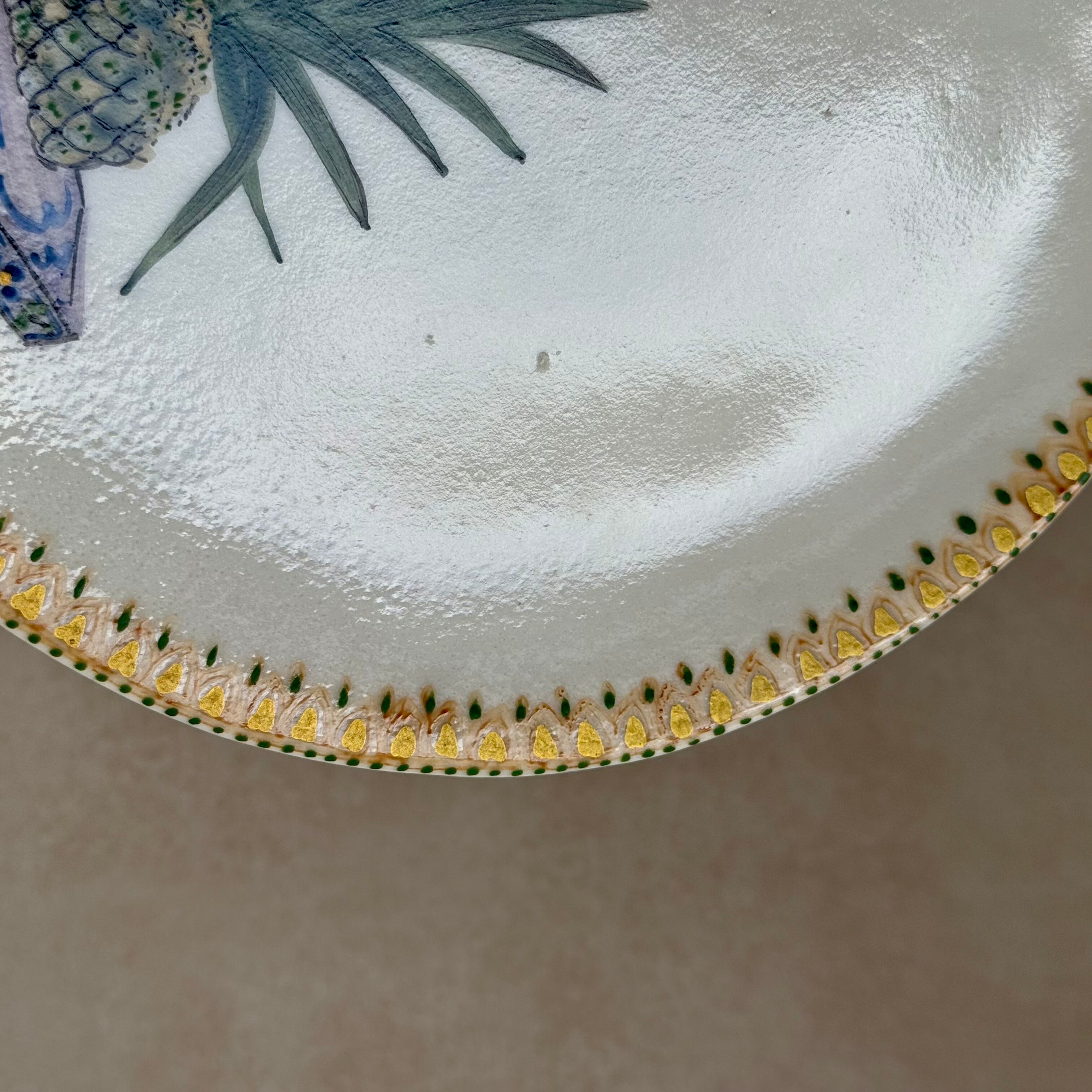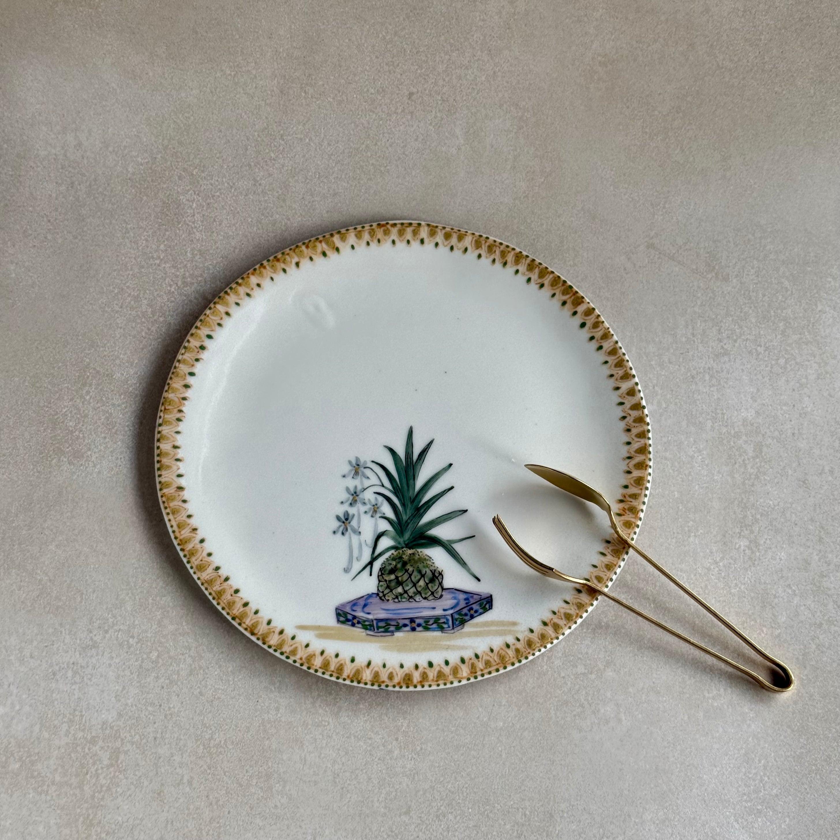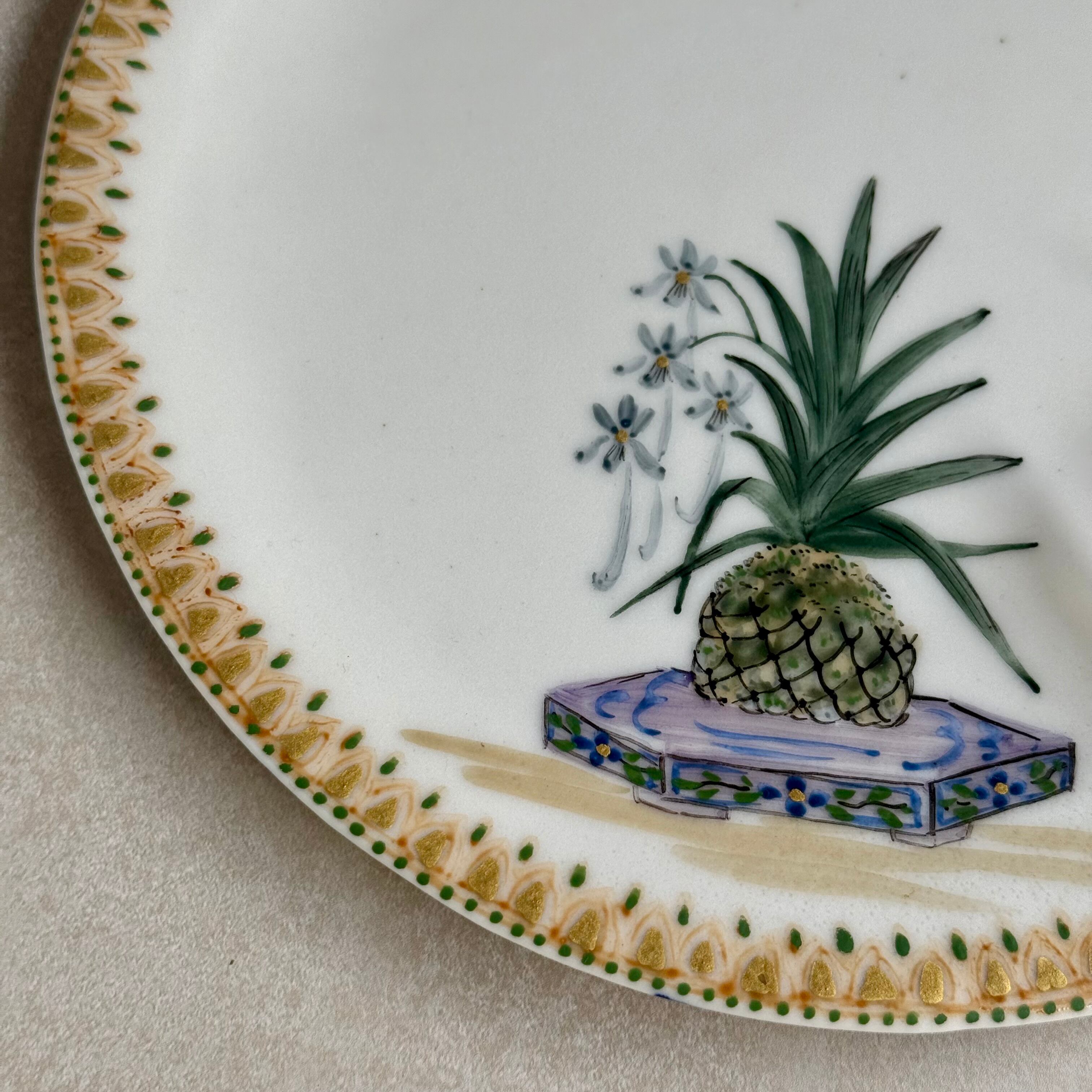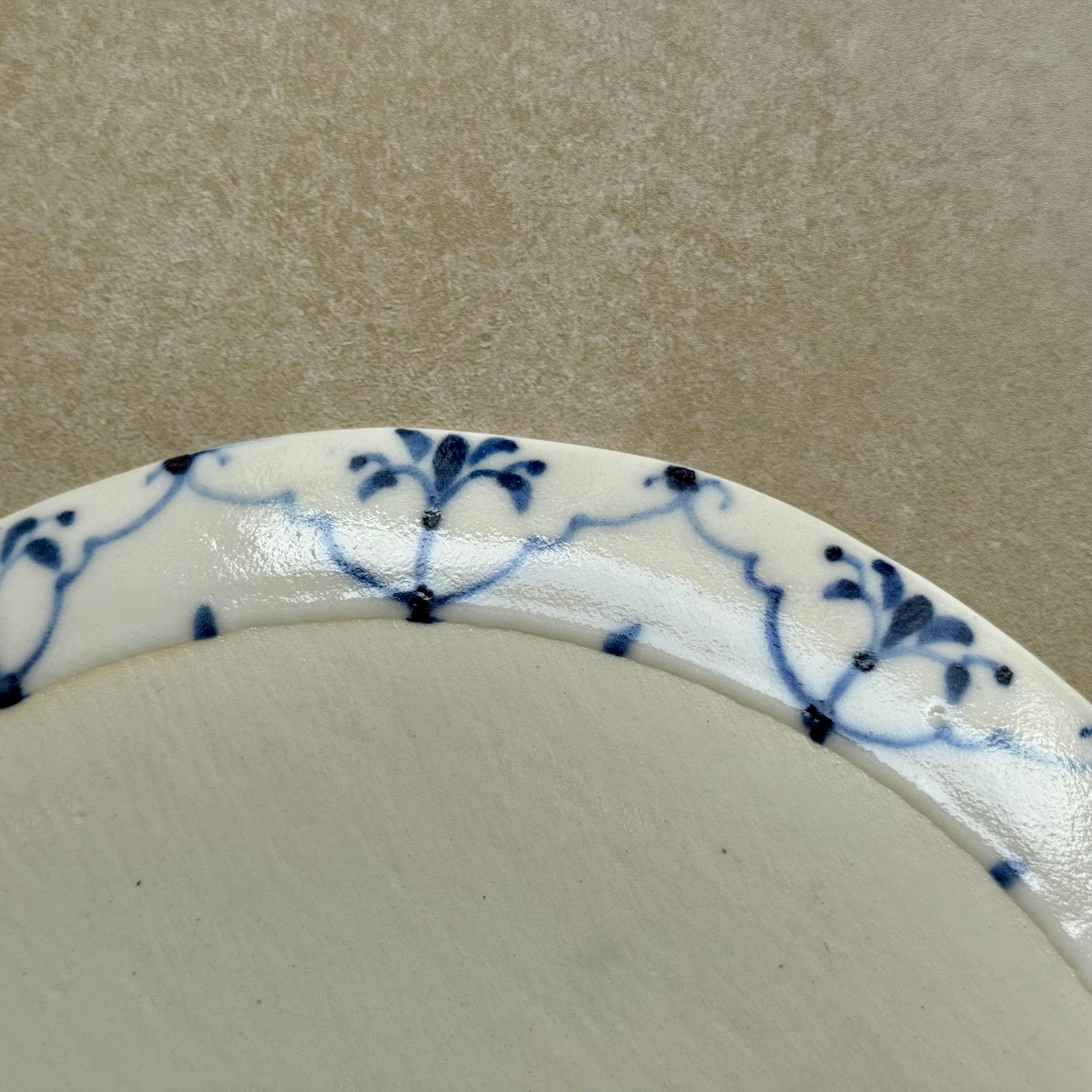 彩り豊かな植物などのモチーフは、印判や手書きで一つ一つ丁寧に描かれています。手捻りならではの温かさが感じられる作品。