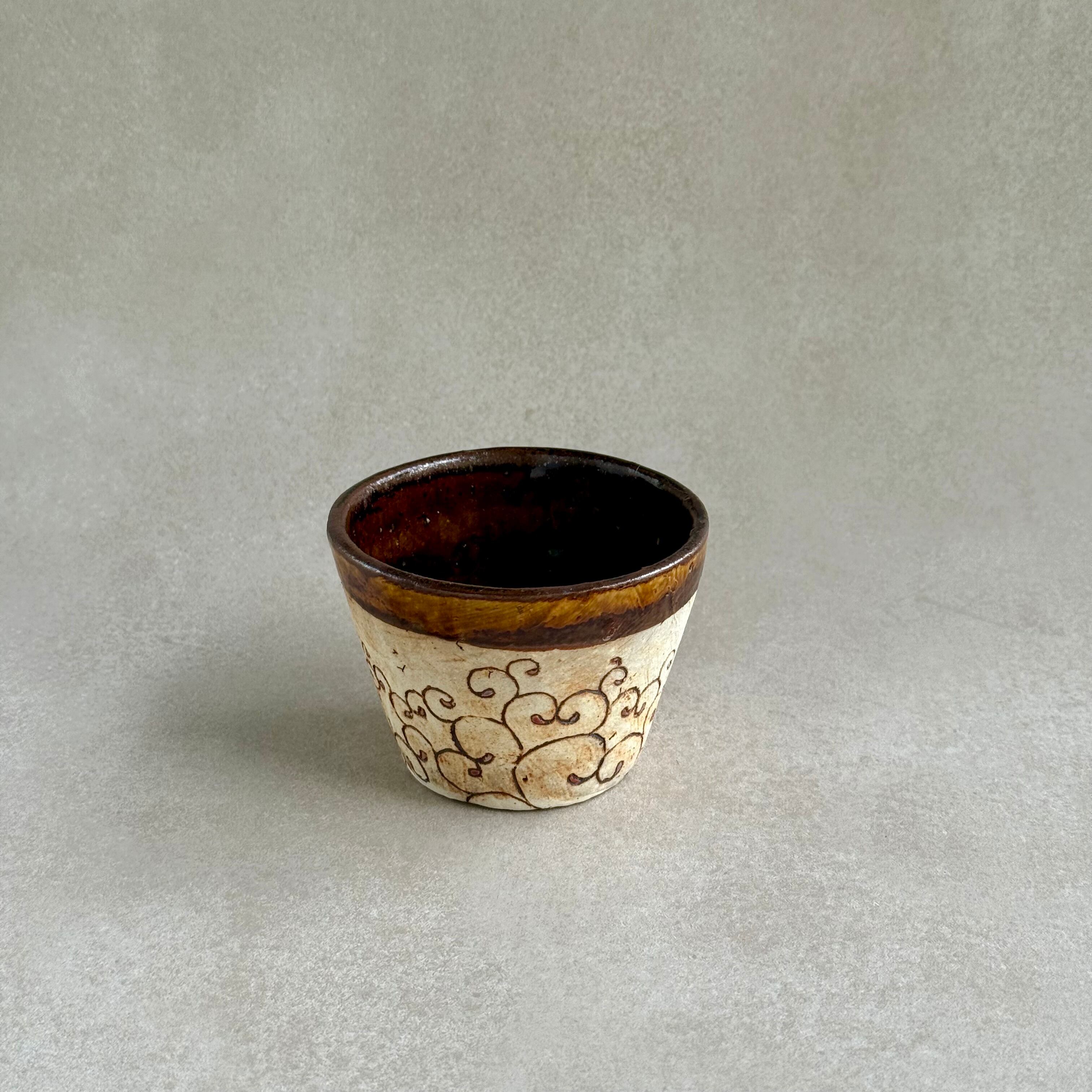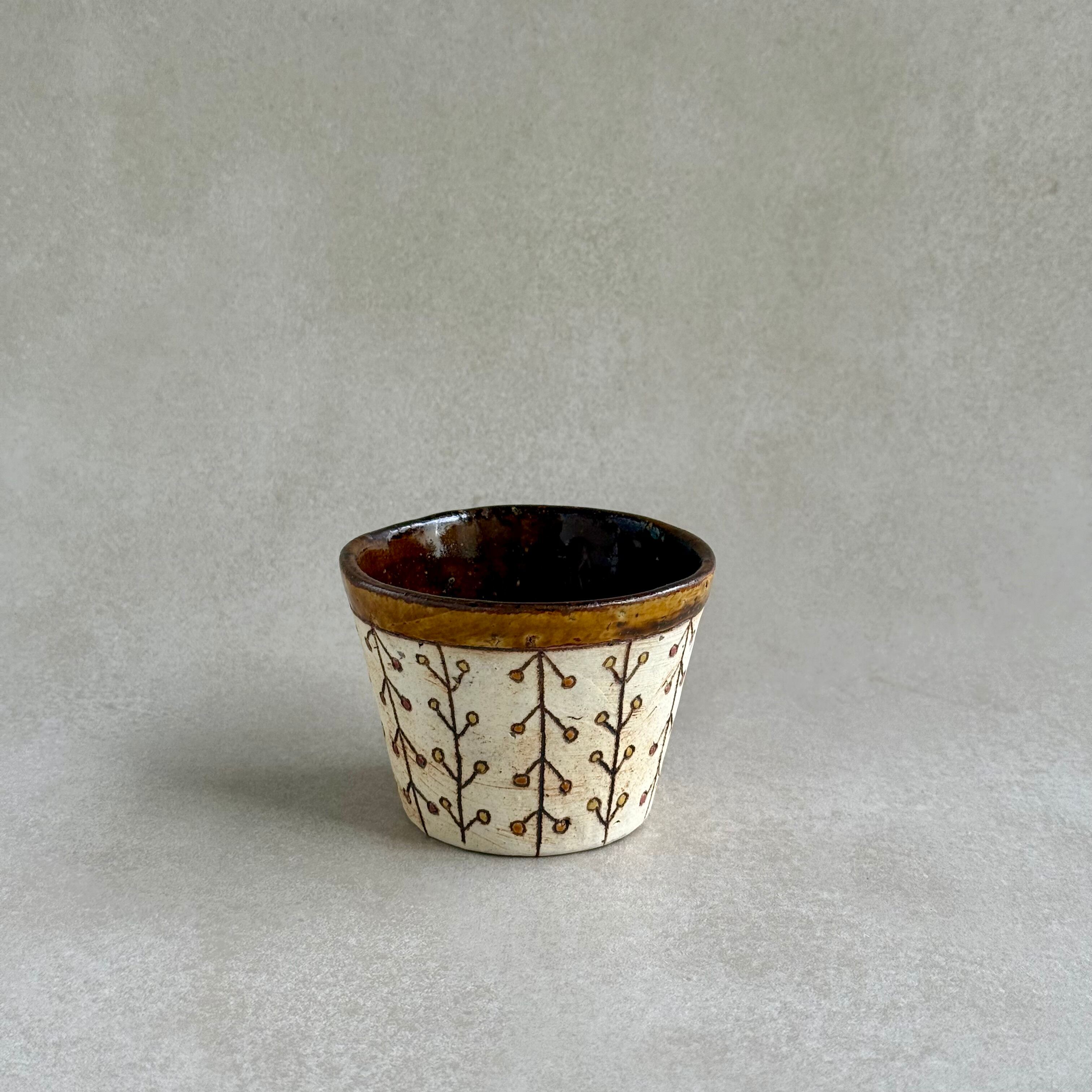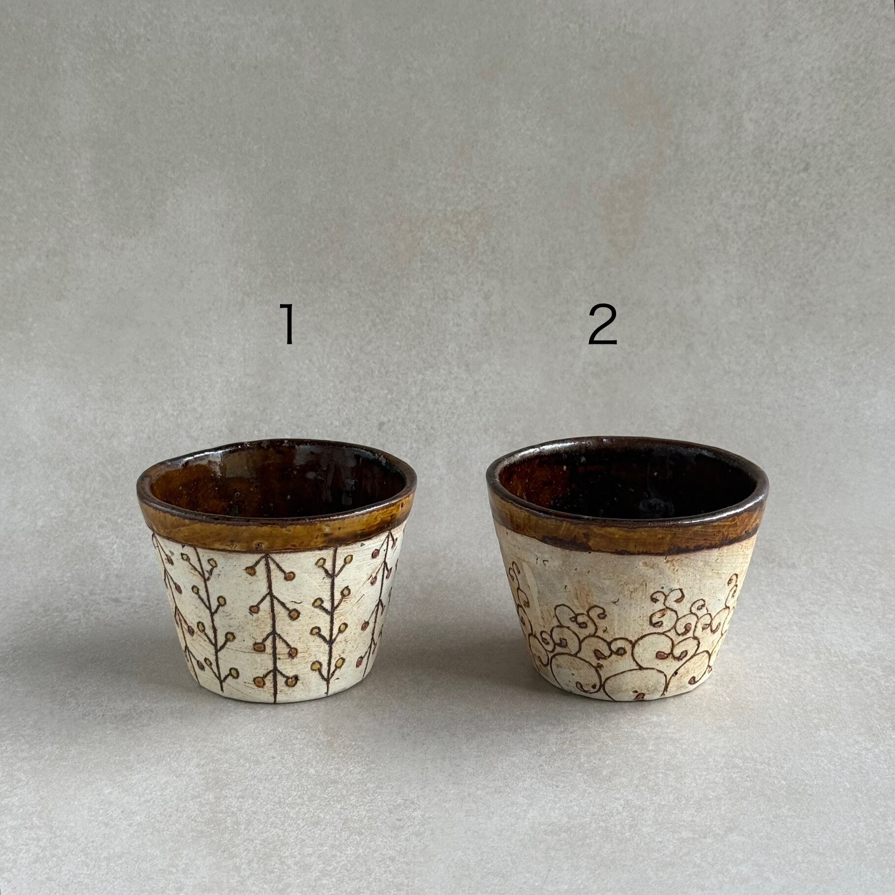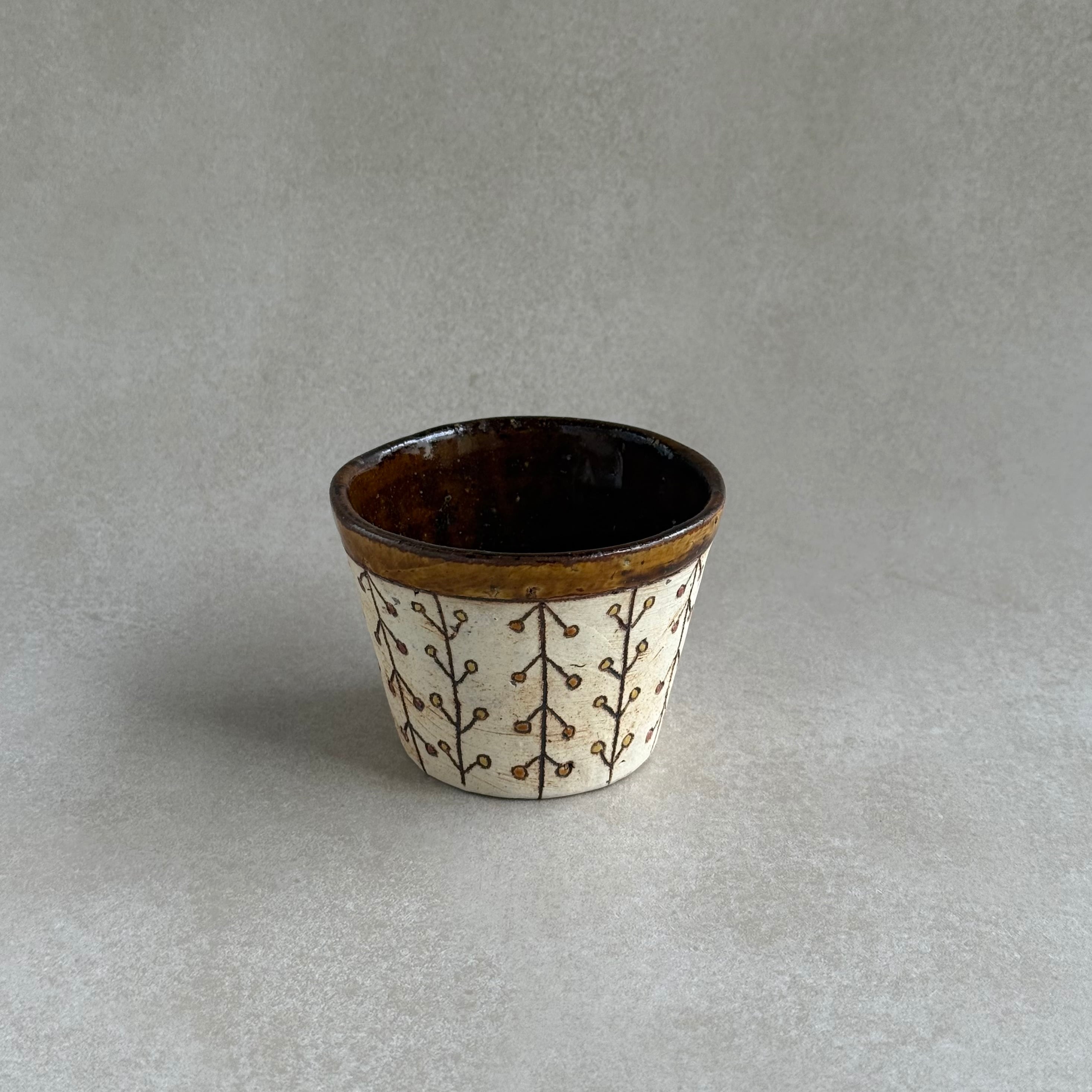 大平真己 色絵カップです。かわいい模様が特徴の、見ているだけでも楽しい作品です。