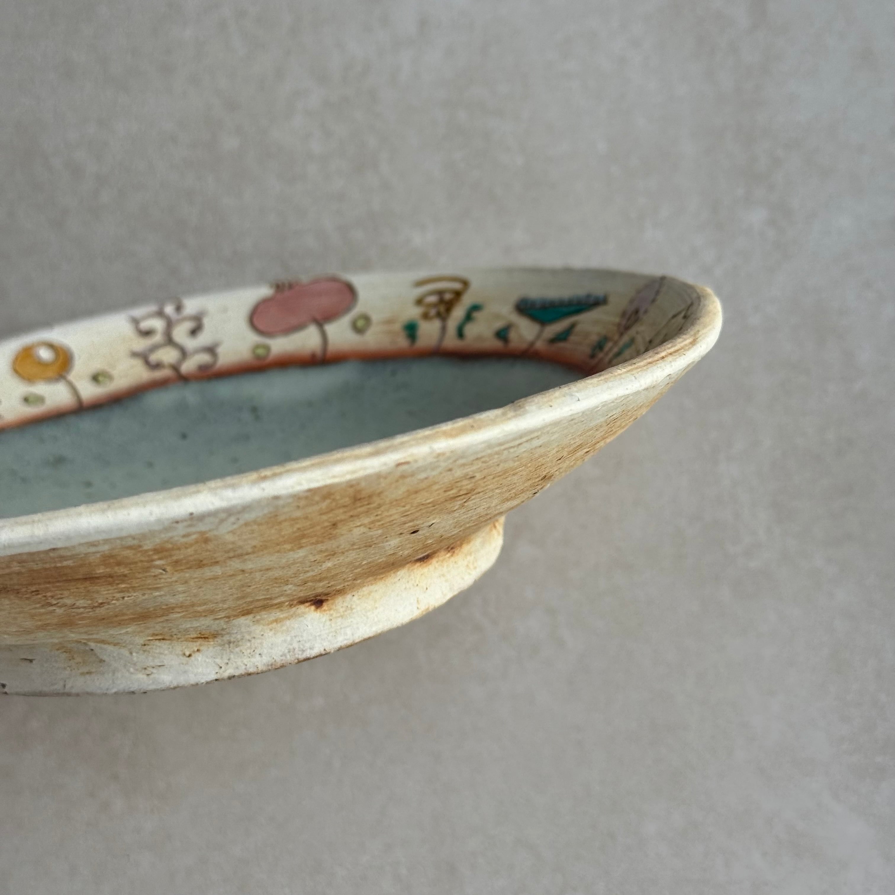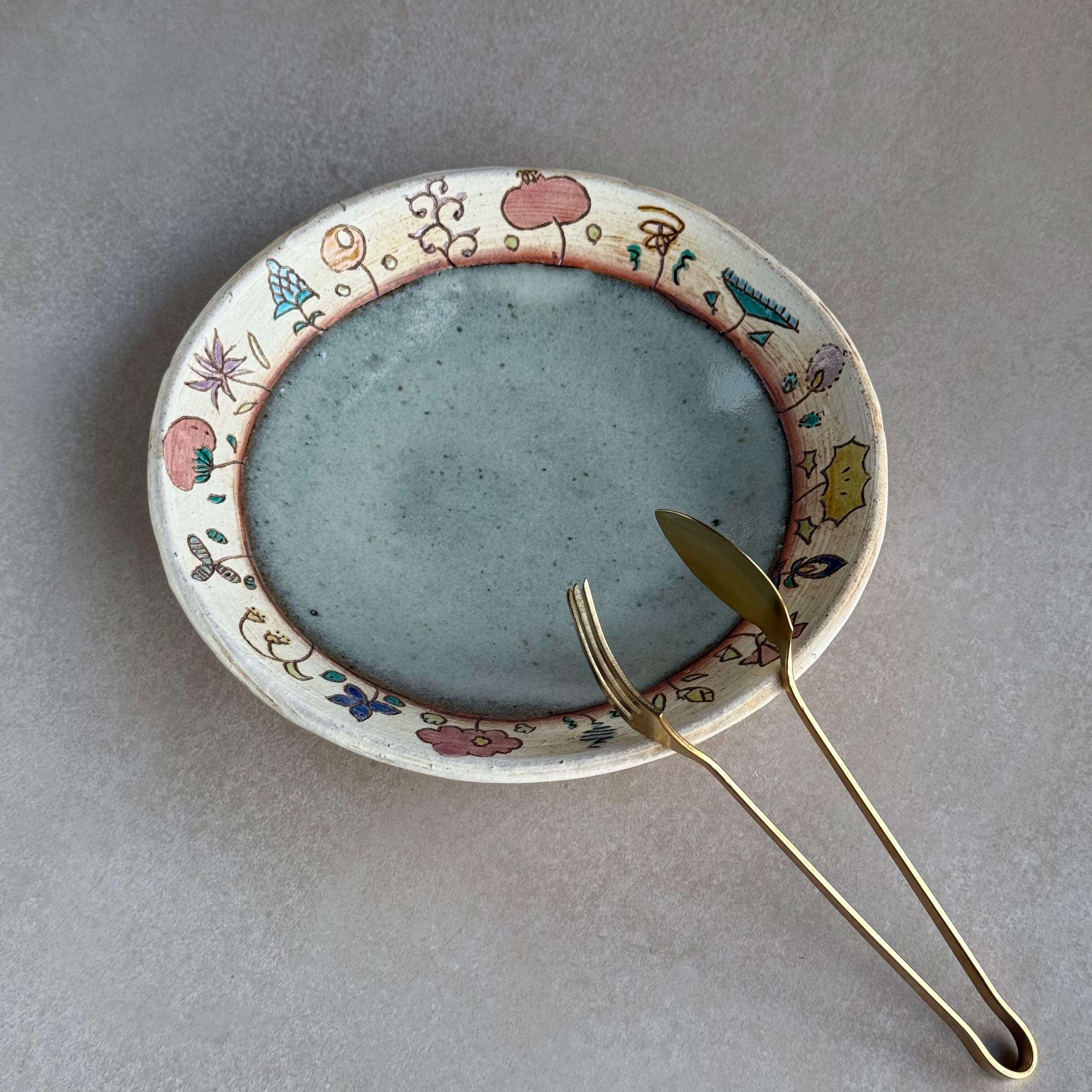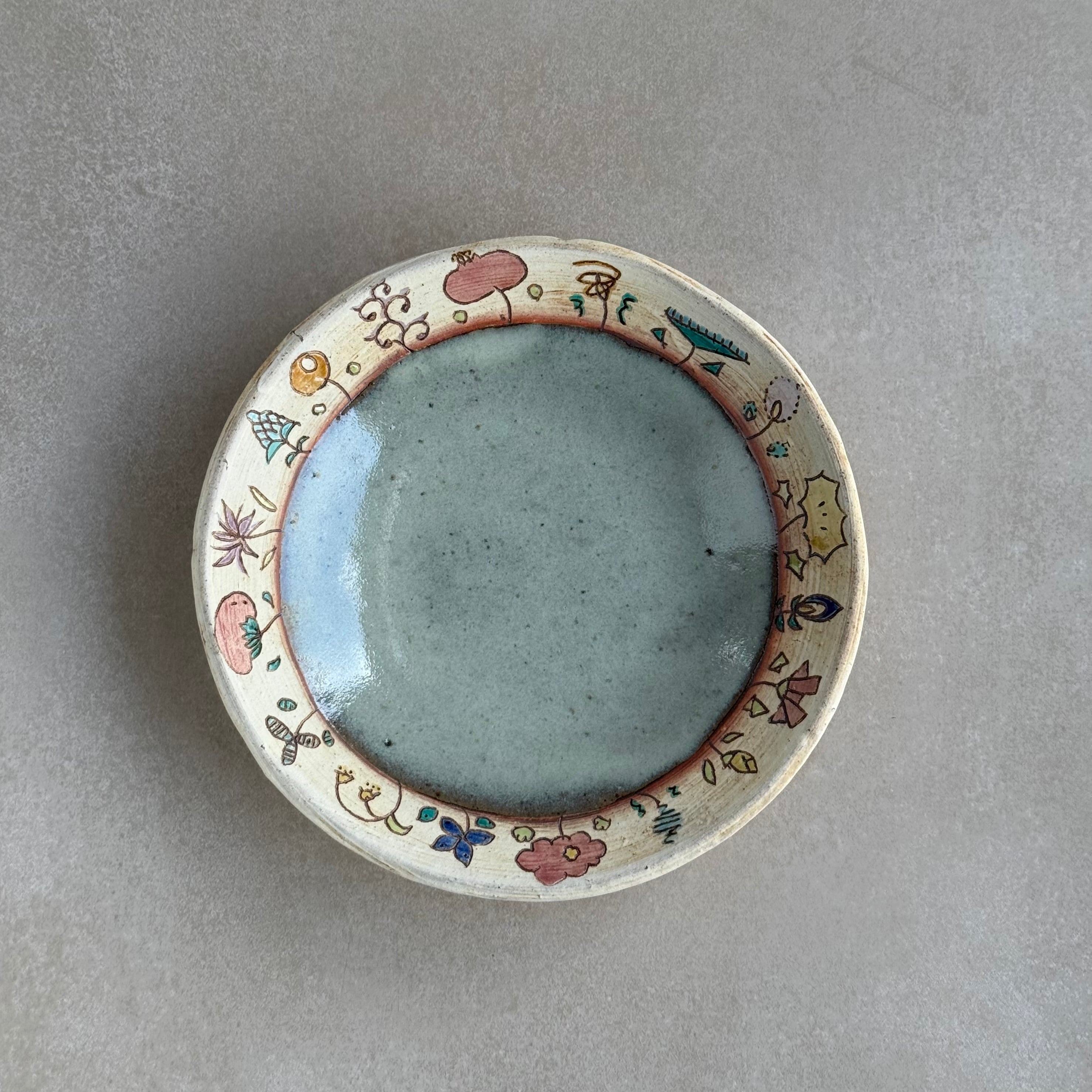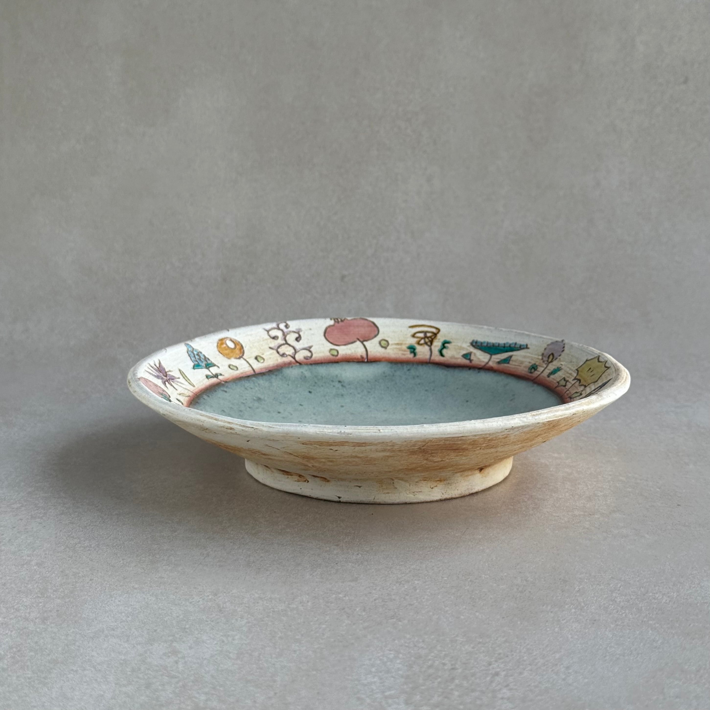 大平真己 色花絵 中皿です。かわいい模様が特徴の、見ているだけでも楽しい作品です。