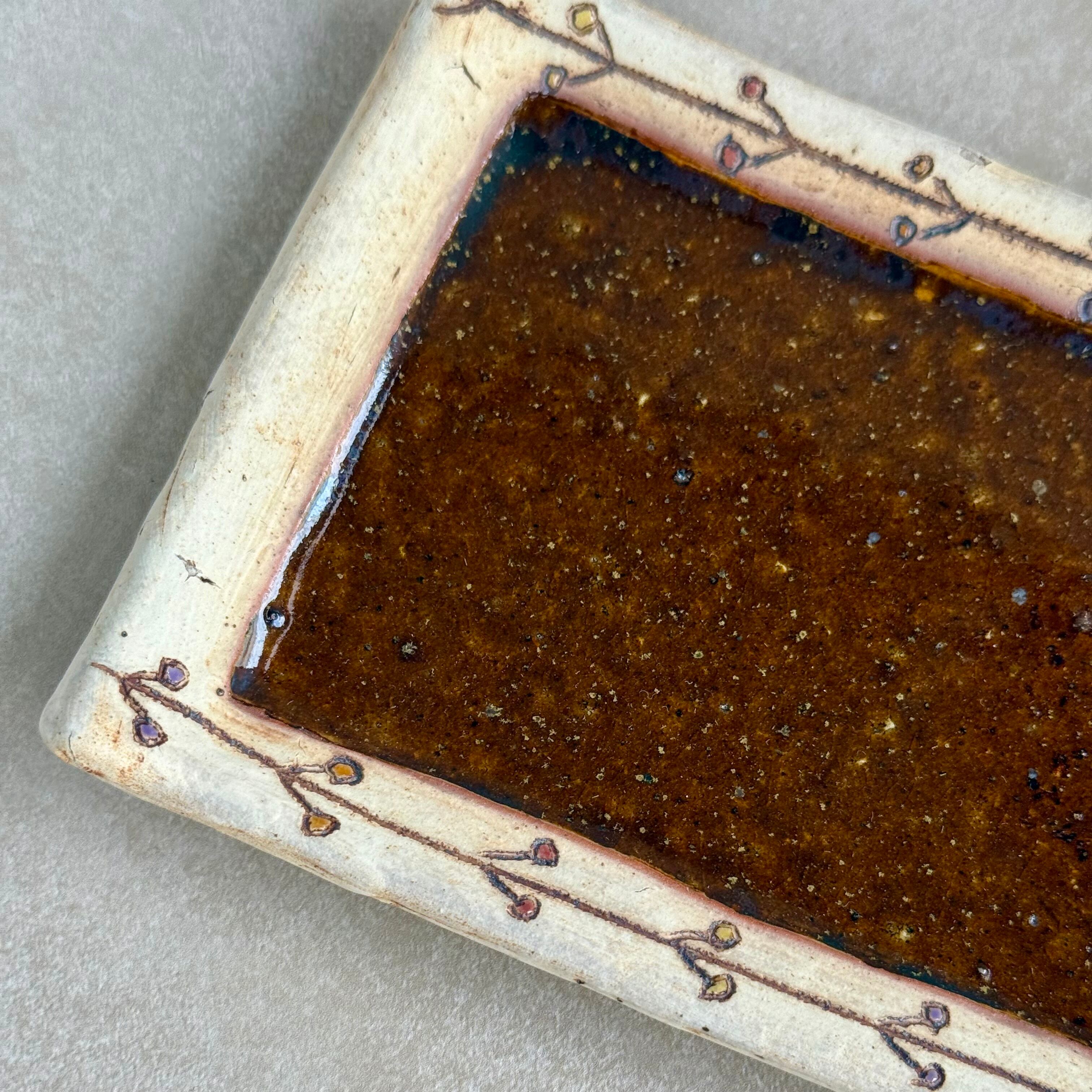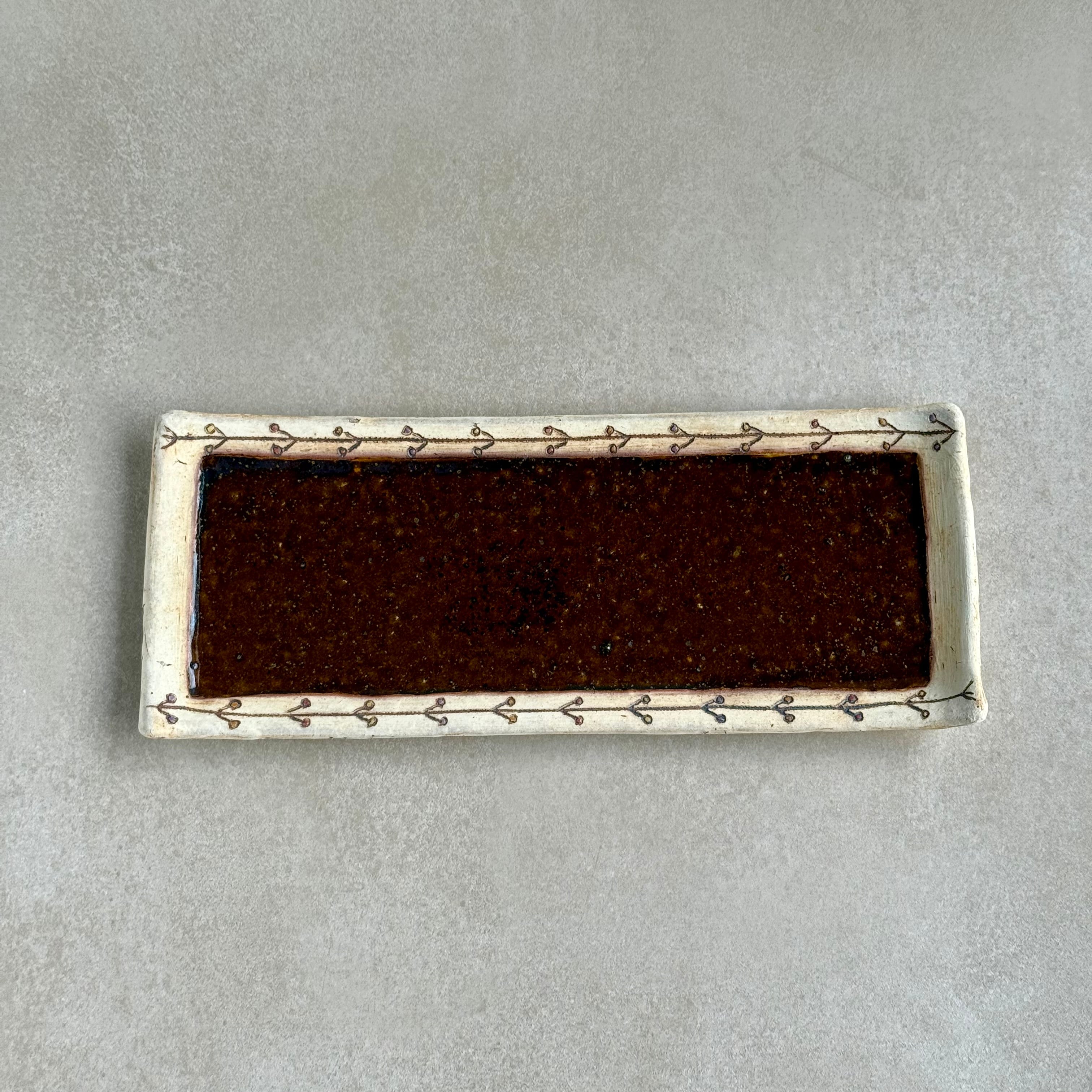 大平真己 色絵 板皿 です。かわいい模様が特徴の、見ているだけでも楽しい作品です。