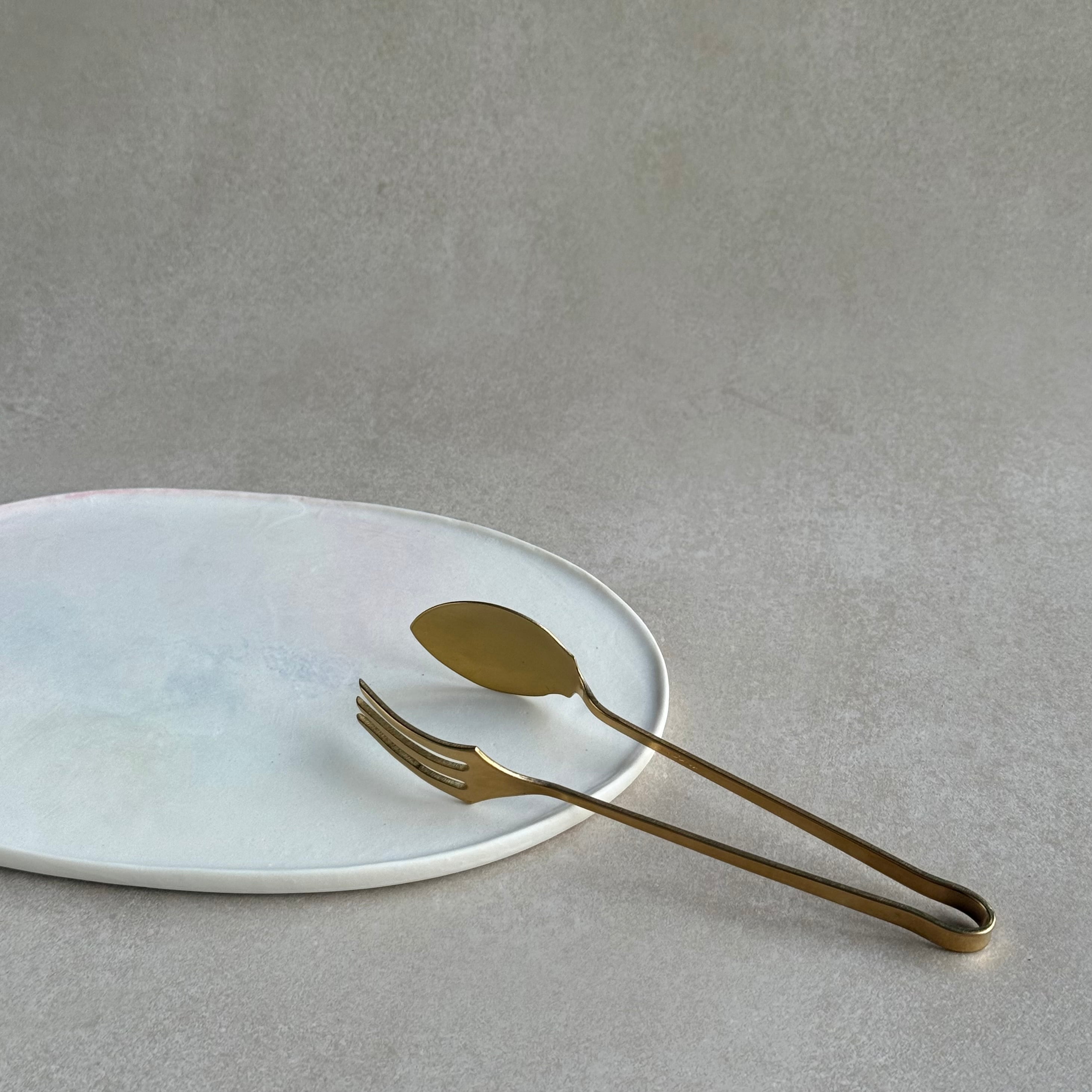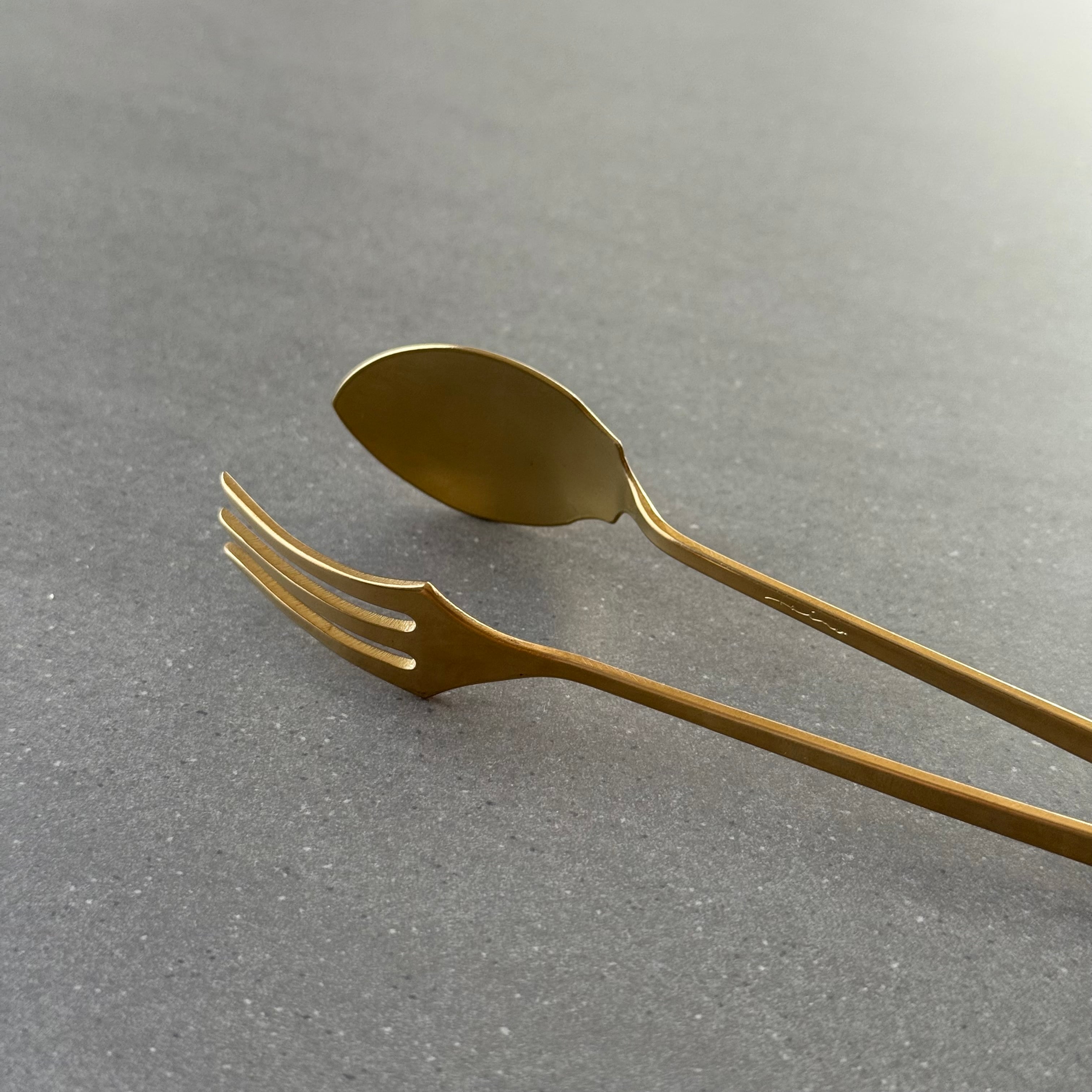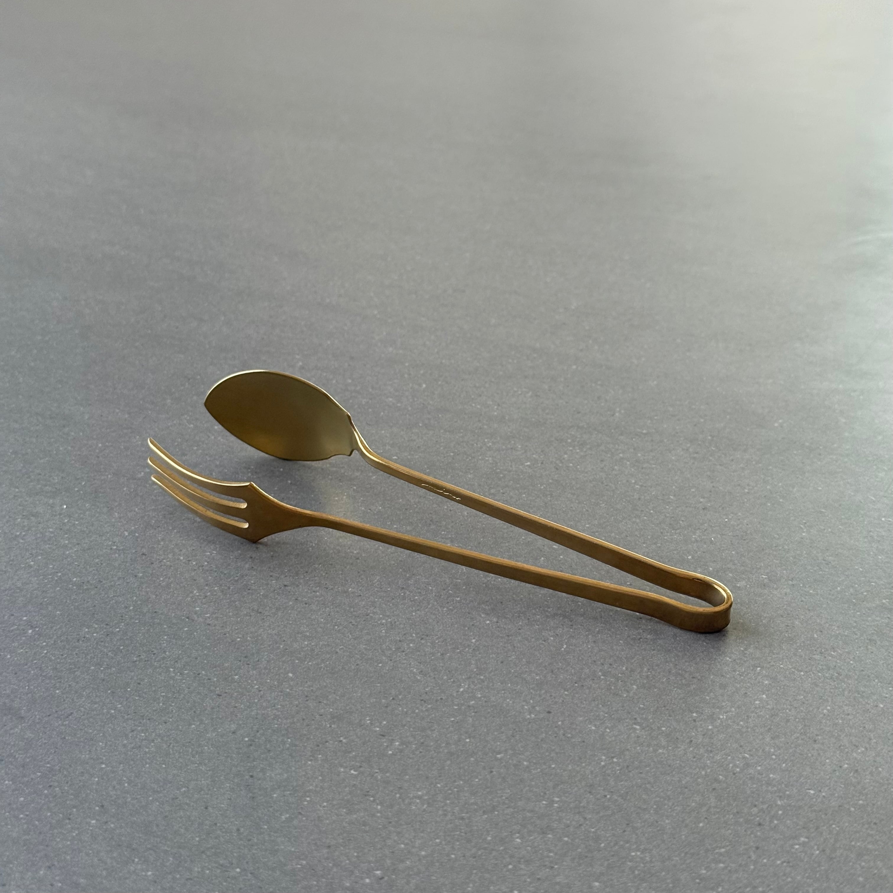 樫原さんの代表的なシリーズであるジュテから、フォークとスプーンをくっつけたような独創的なデザインのミニトングです。