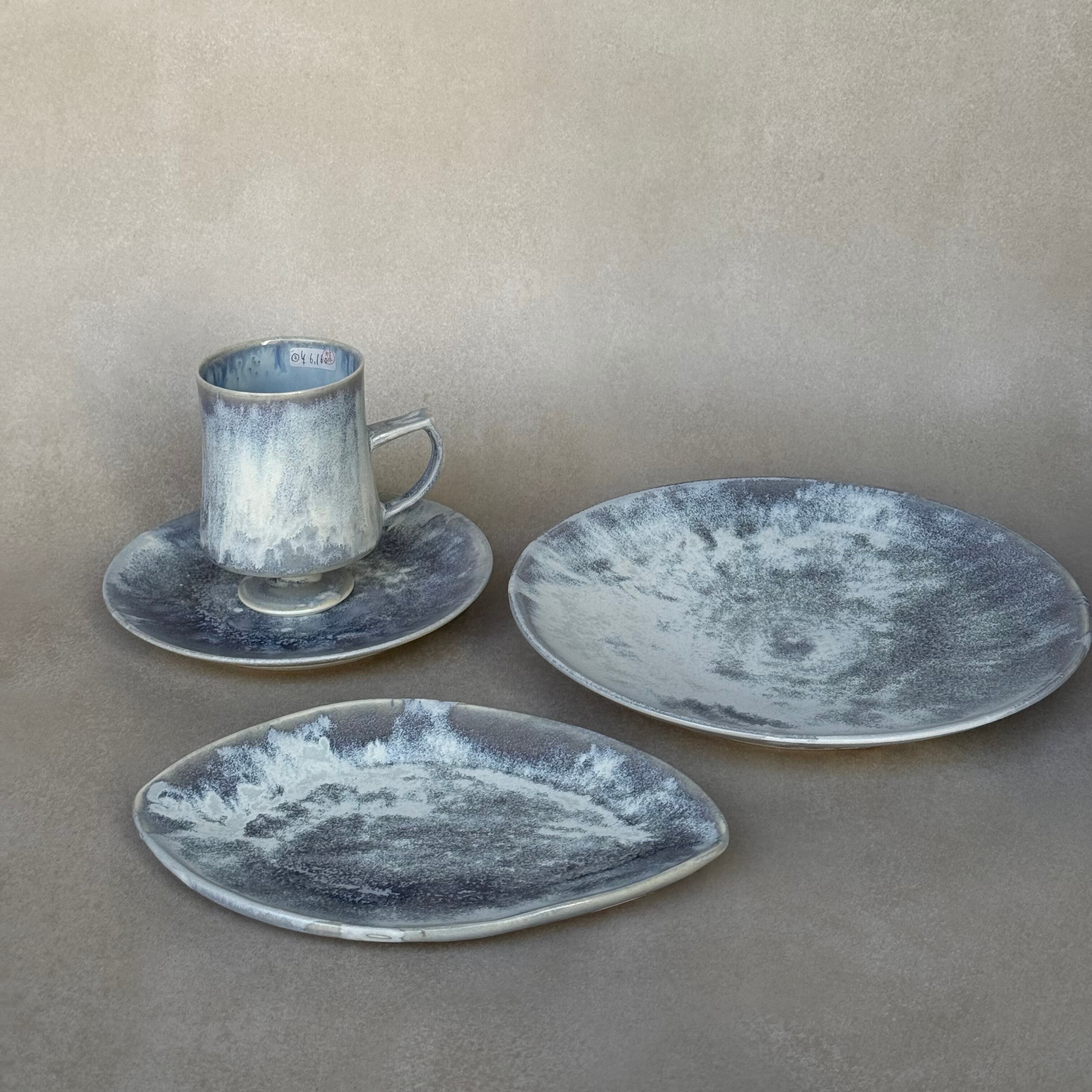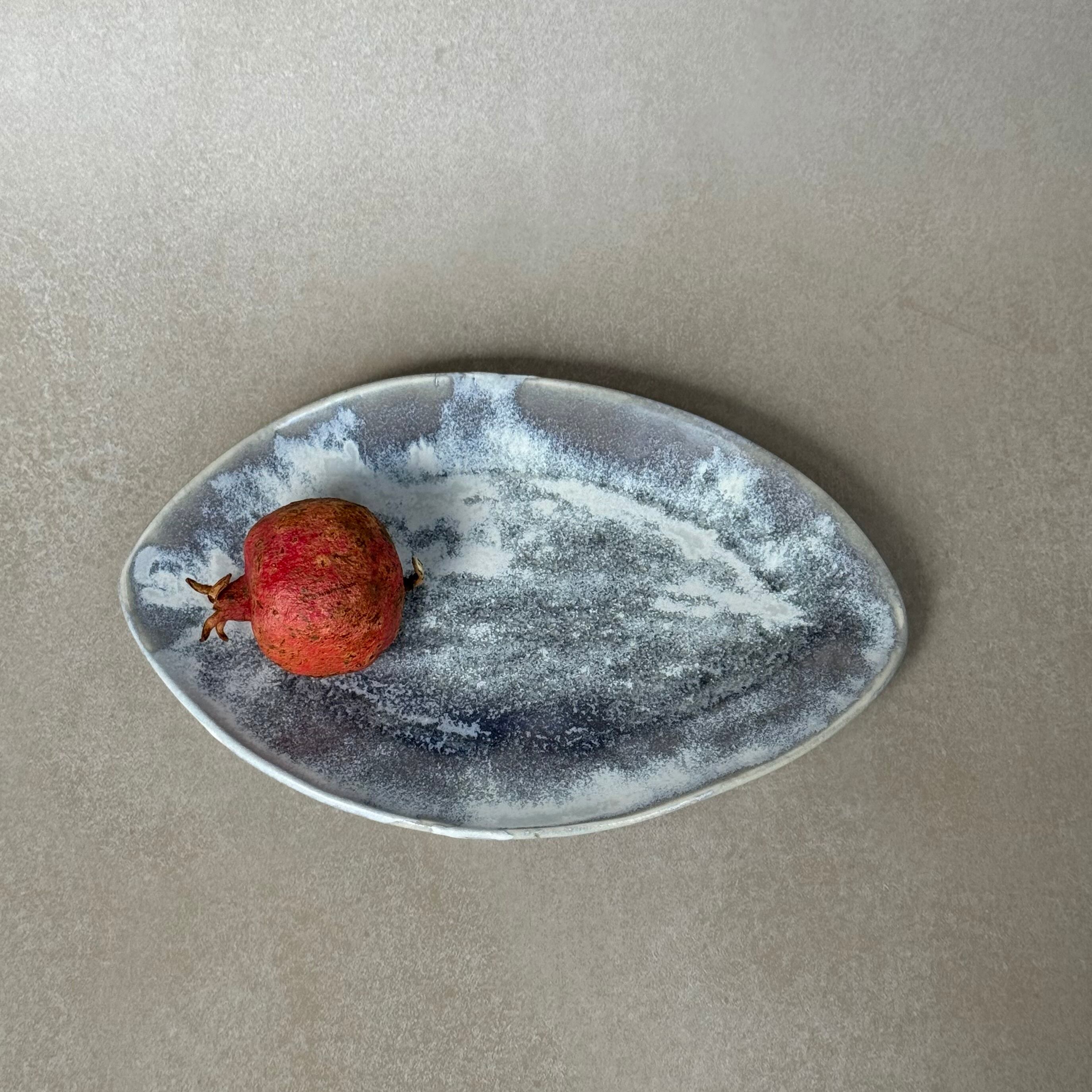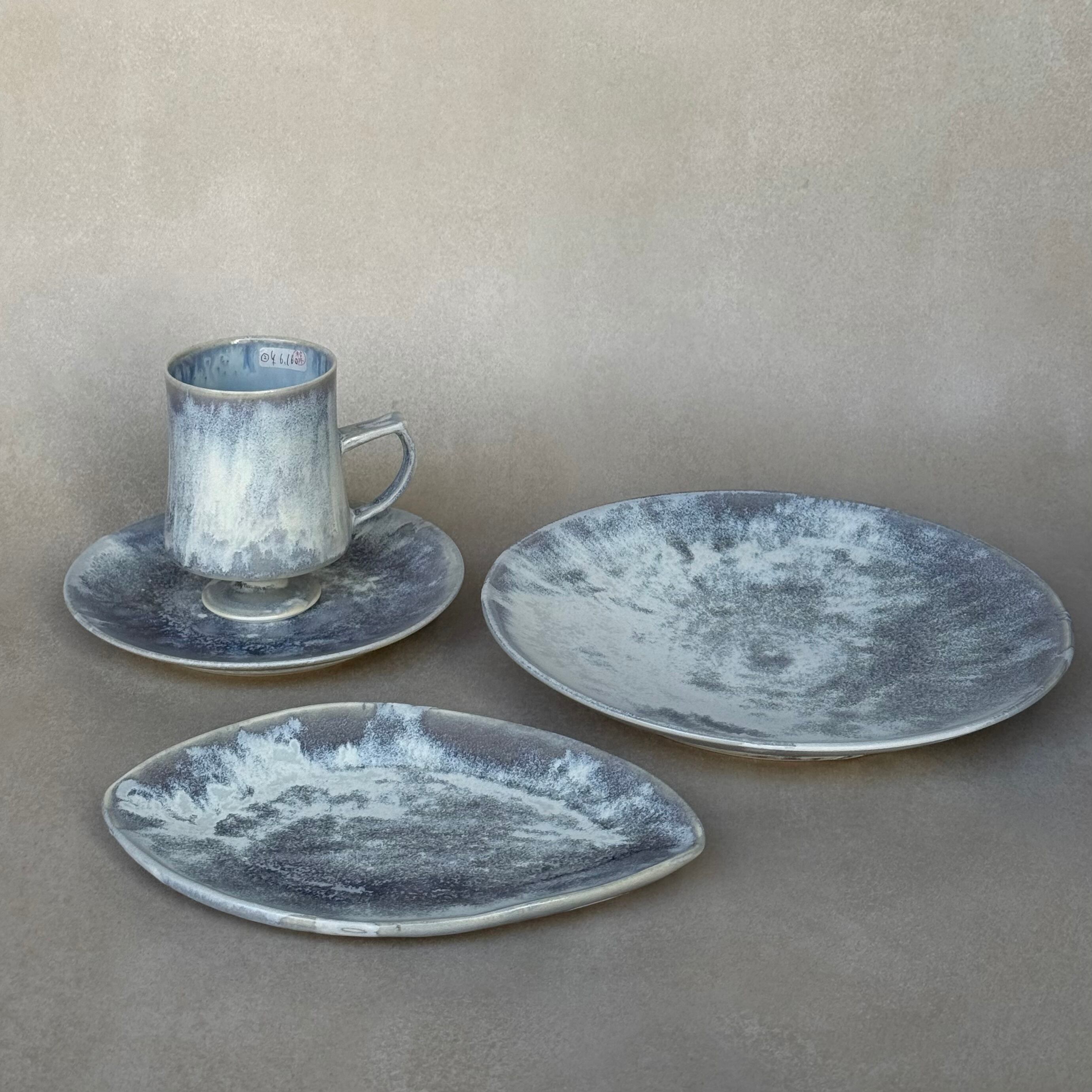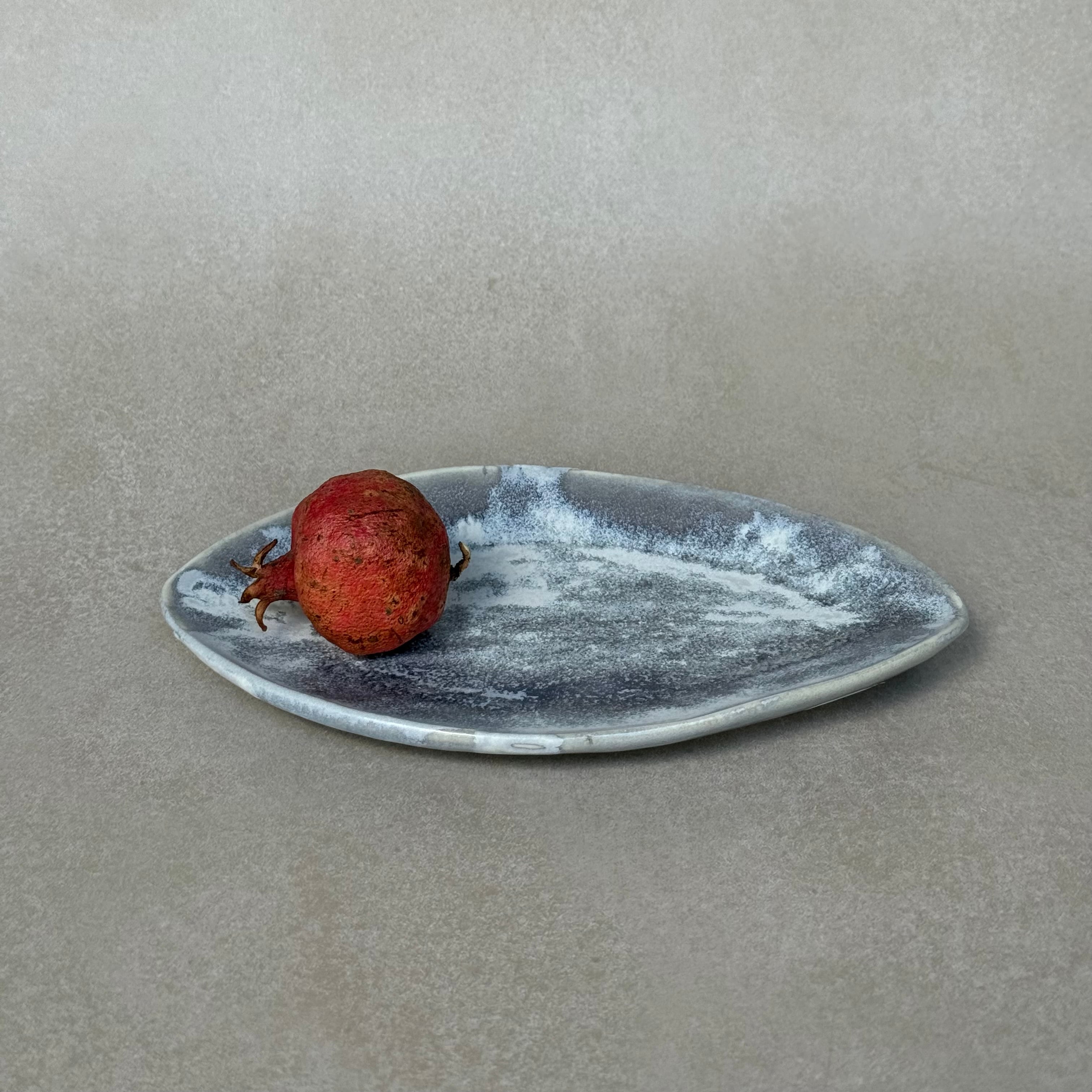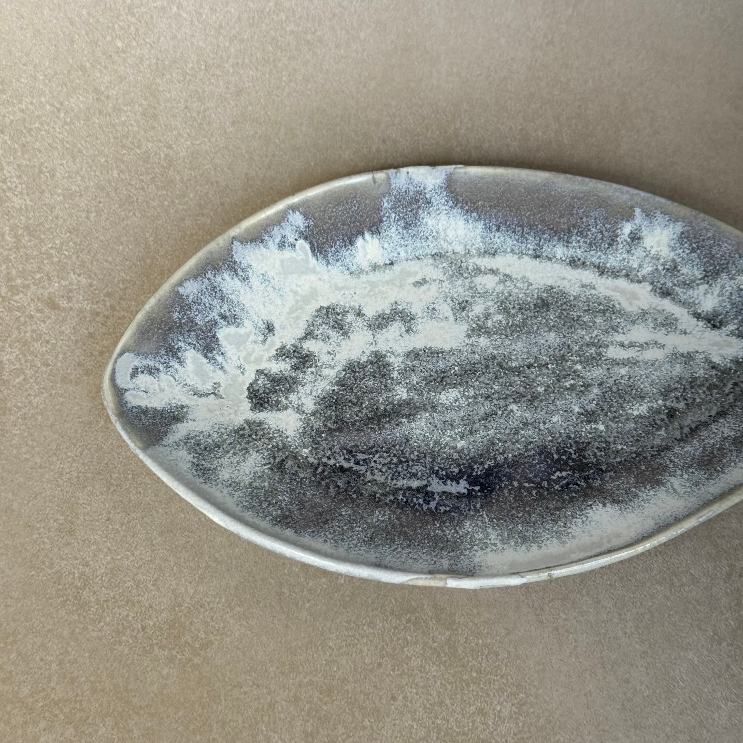 磁器でありながら、チタン釉の表情が美しいプレートです。