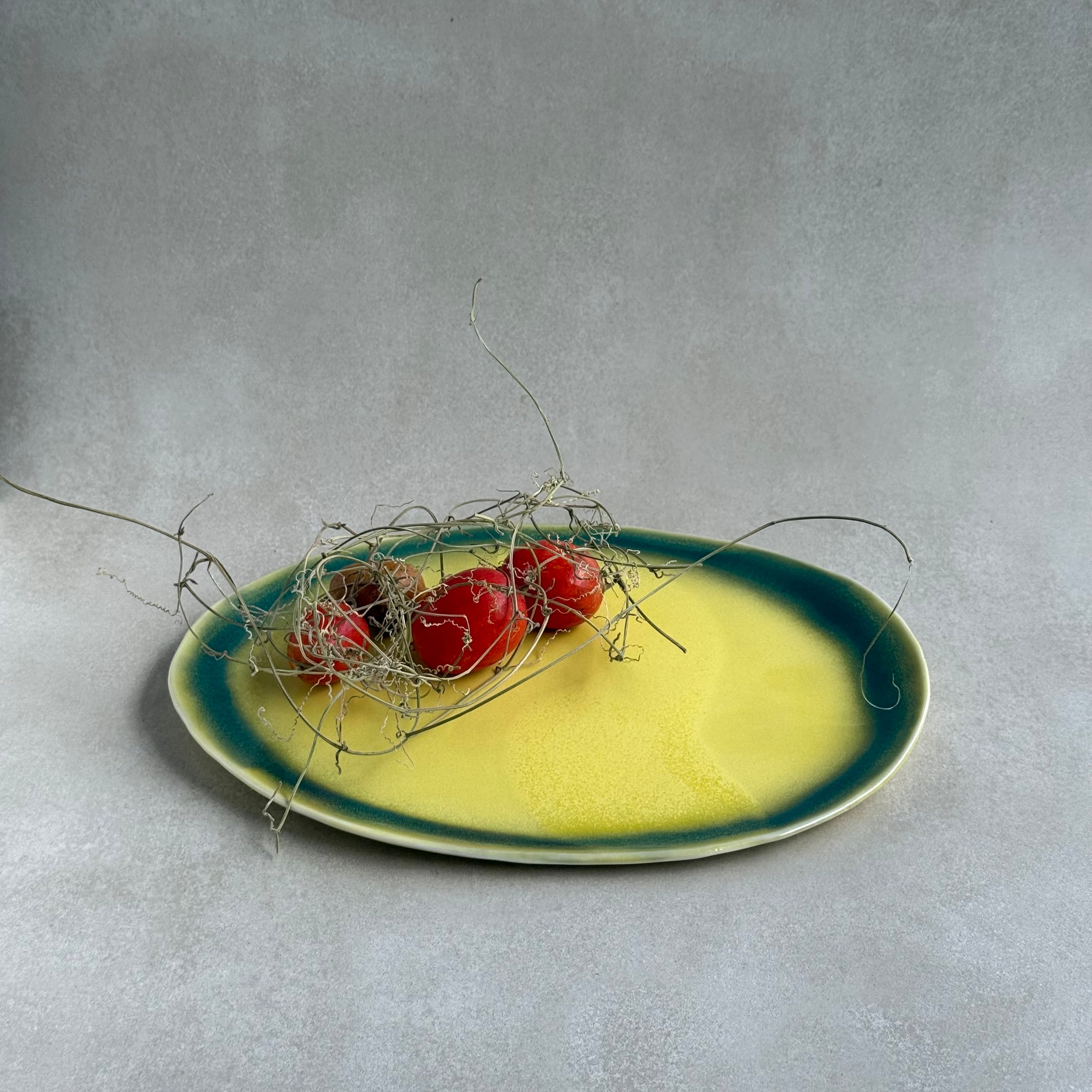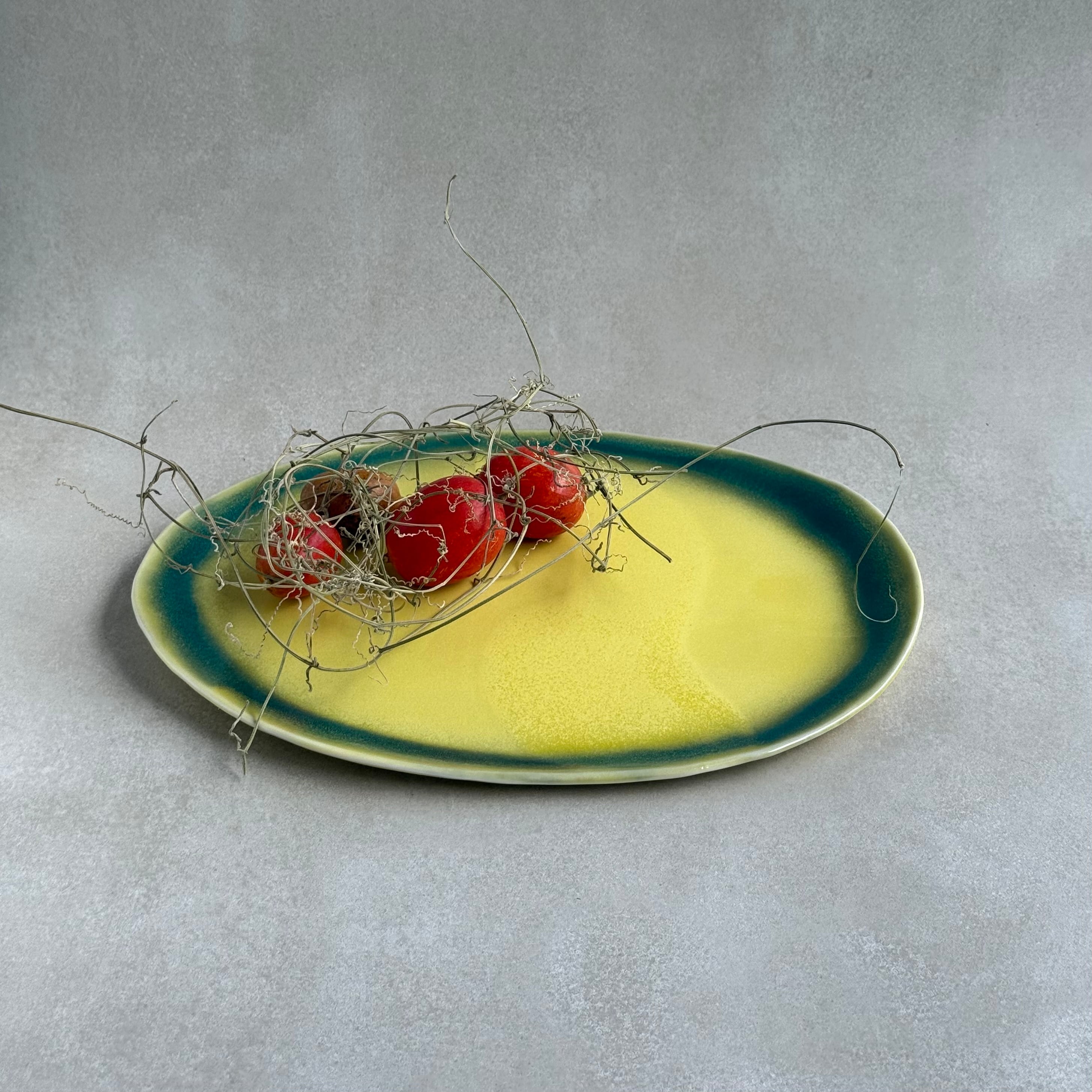 黄色と緑が色鮮やかなプレートです。食卓を華やかにしてくれます。