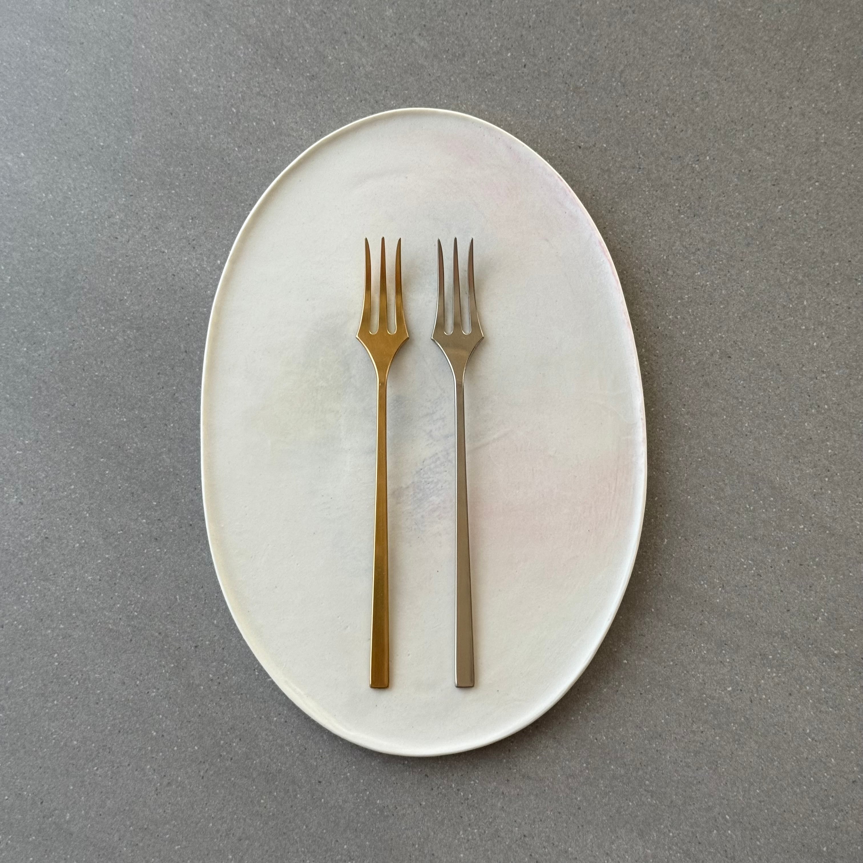 樫原さんの代表的なシリーズであるジュテから、お食事用のフォークより小ぶりなデザート用のフォークです。