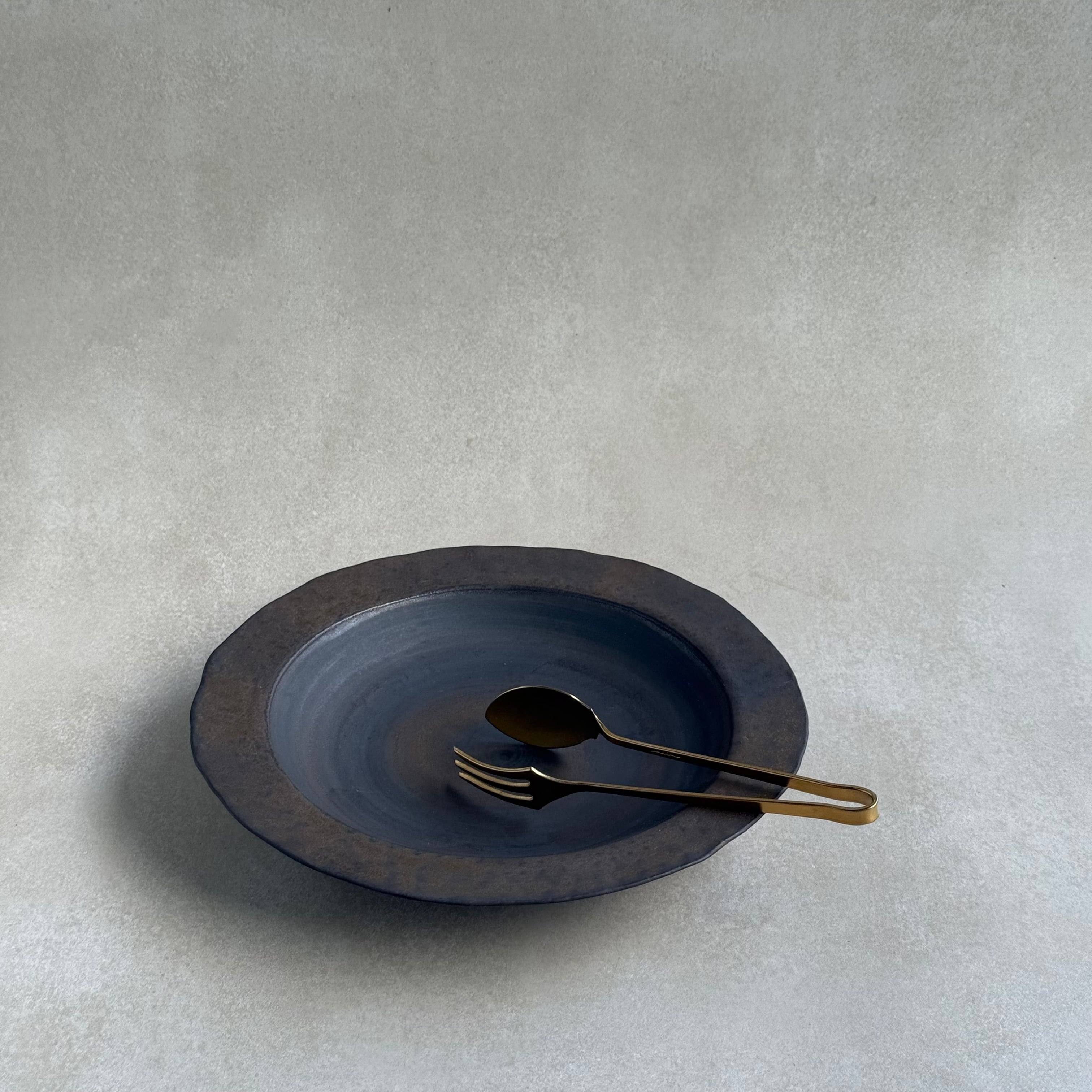 遠藤窯さんの ブロンズプレート石目リムスープ皿 です。