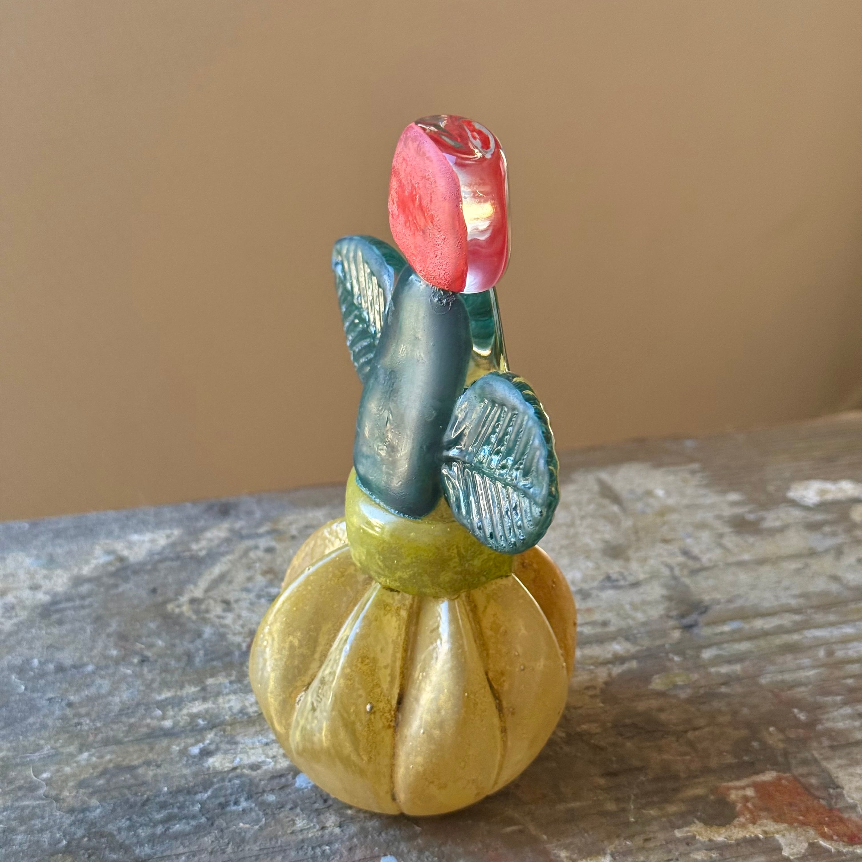 吹きガラスで形作り、エナメル絵付けをされて一つ一つ丁寧に作られています。