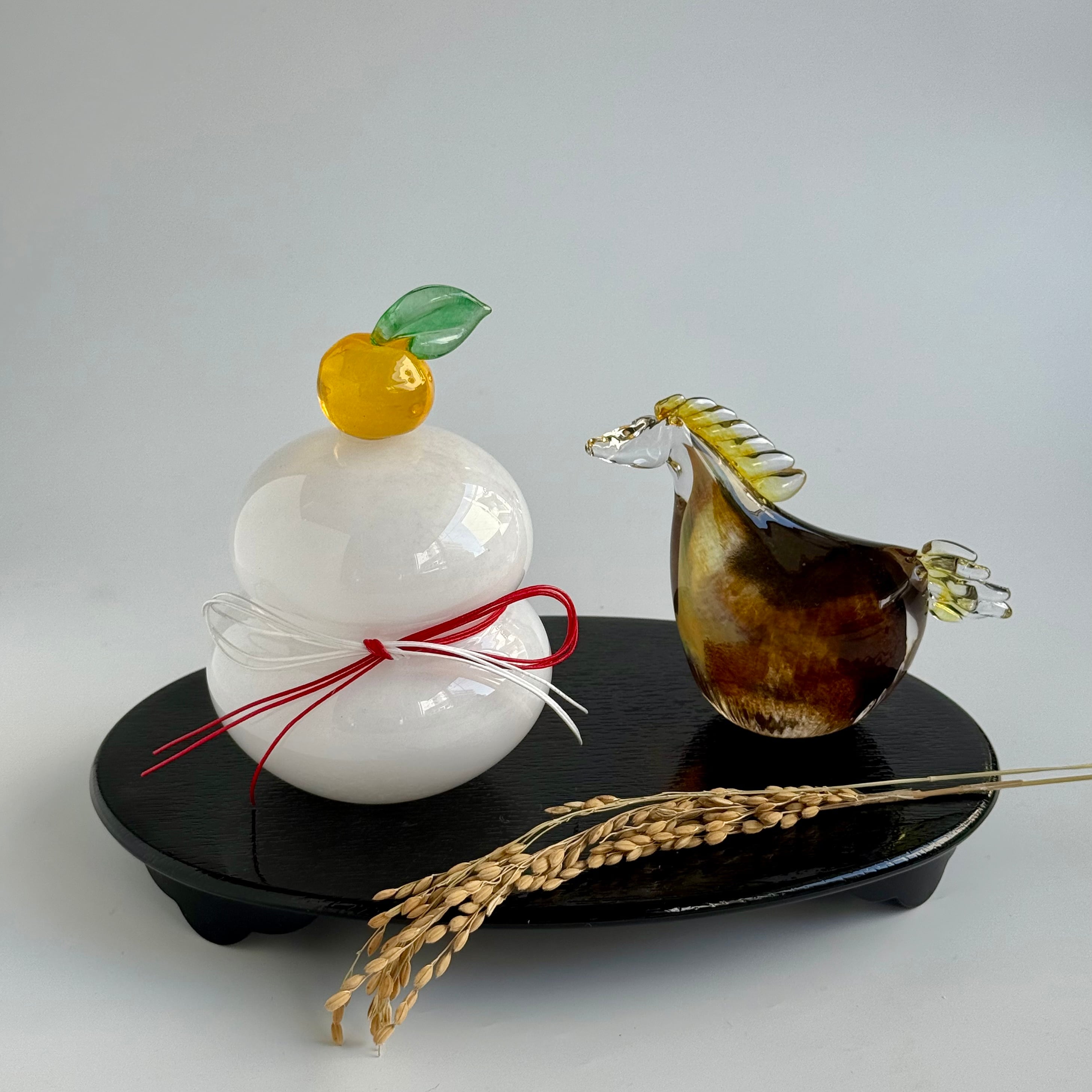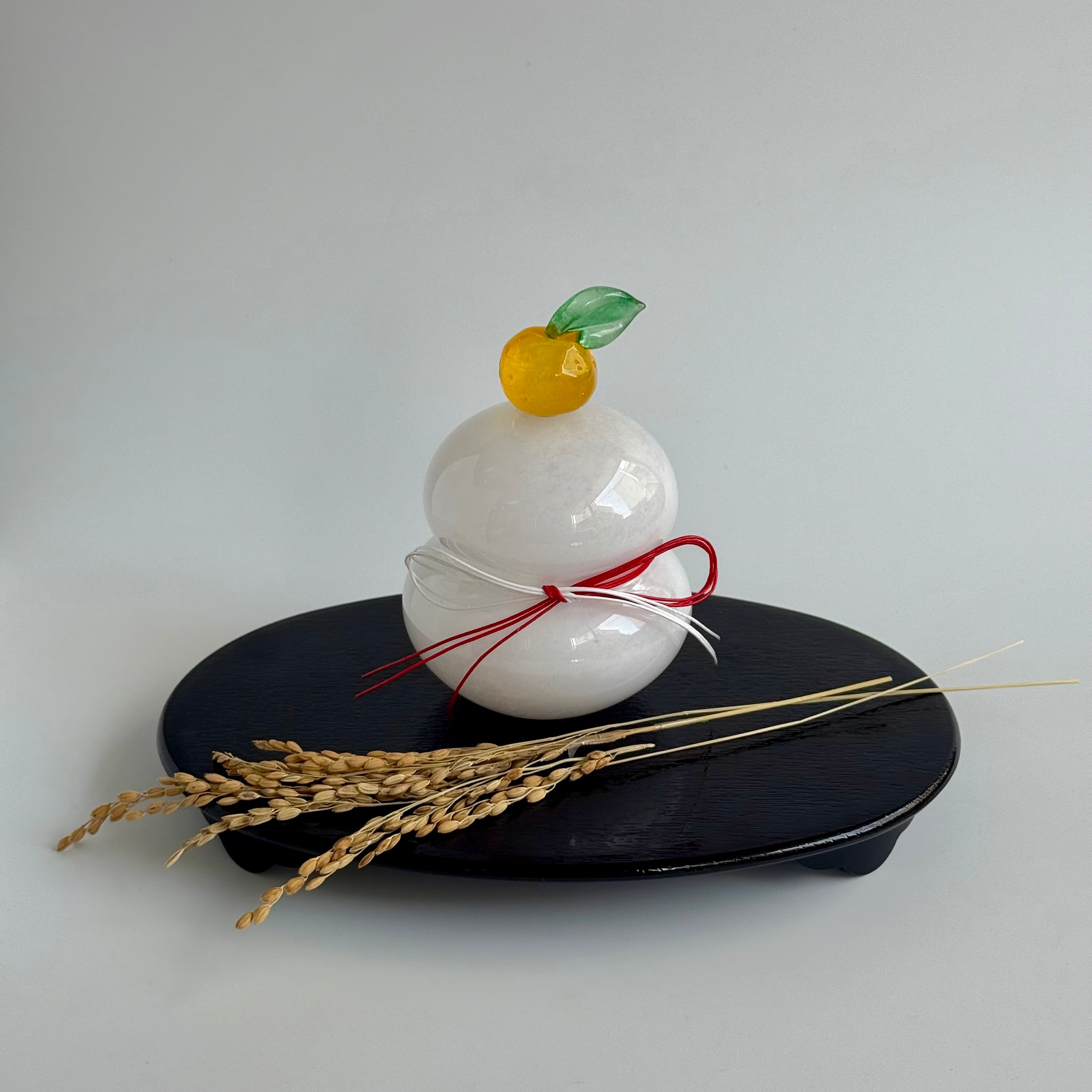 可児友紀 ガラスの鏡餅L 【黒台付き】