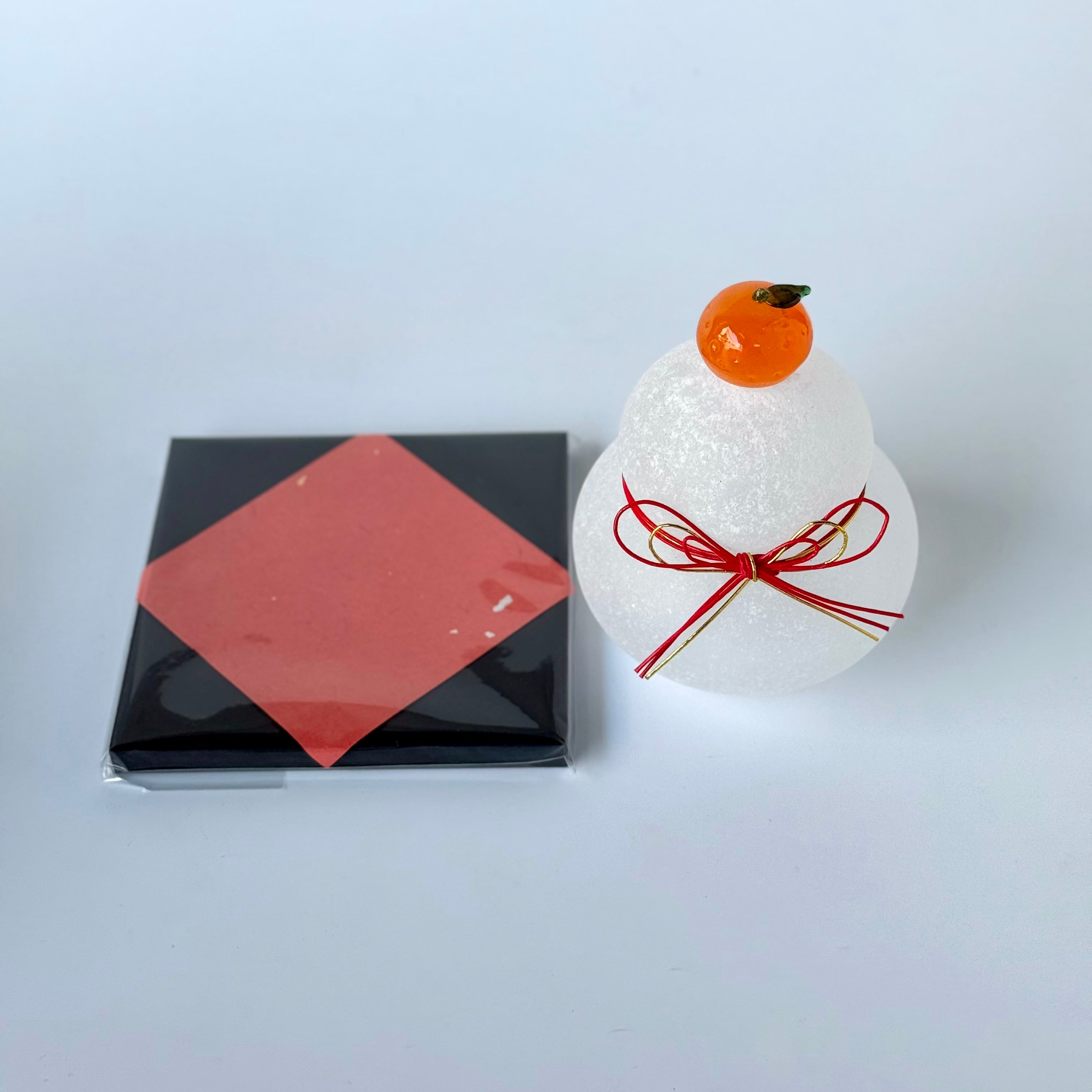 極楽寺がらす工房 ガラスの鏡餅L【黒台付き】