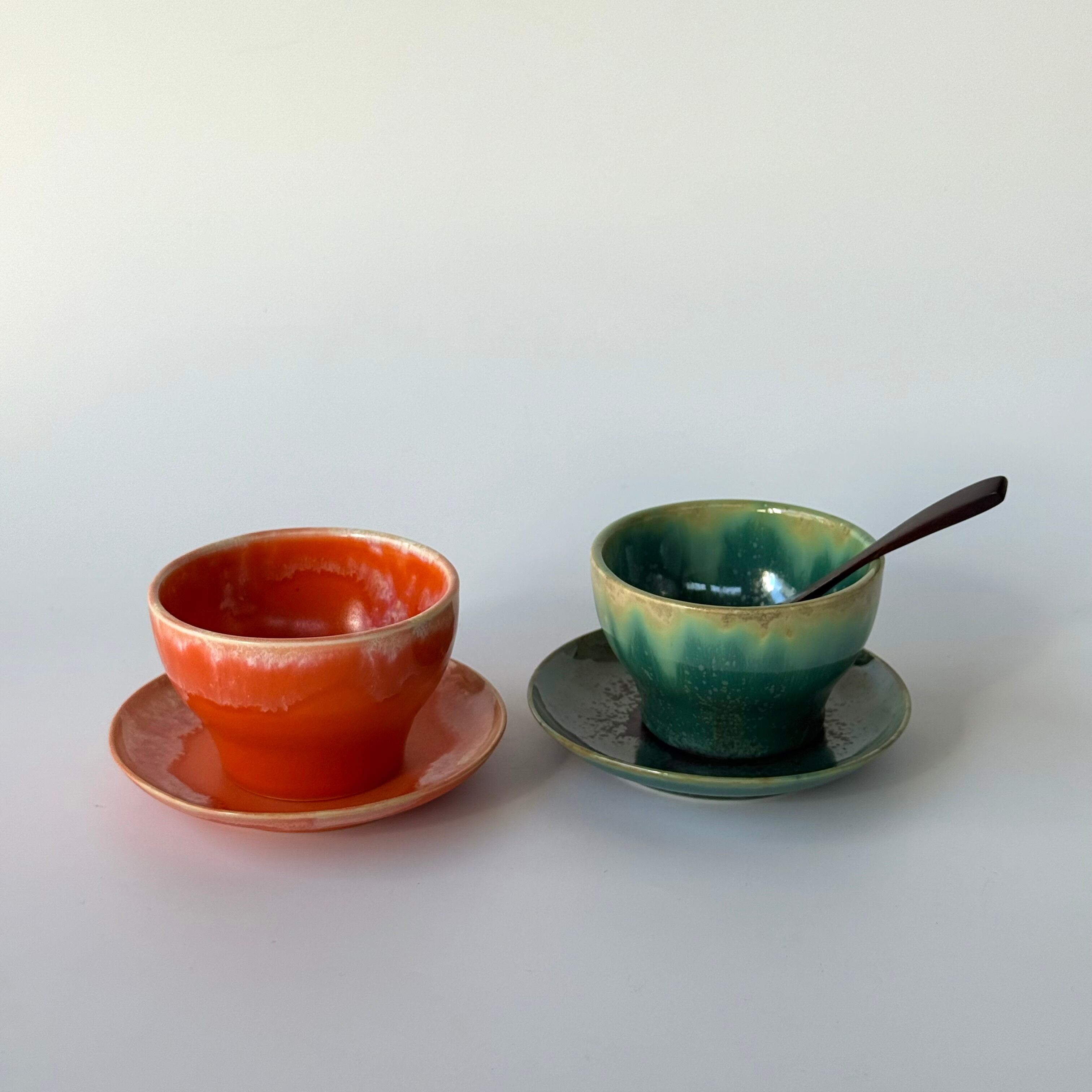 湯呑みとしても、蕎麦猪口としても、小鉢としても。4MARU plateと合わせてもお使いいただけます。popな色が、食卓を彩ります。