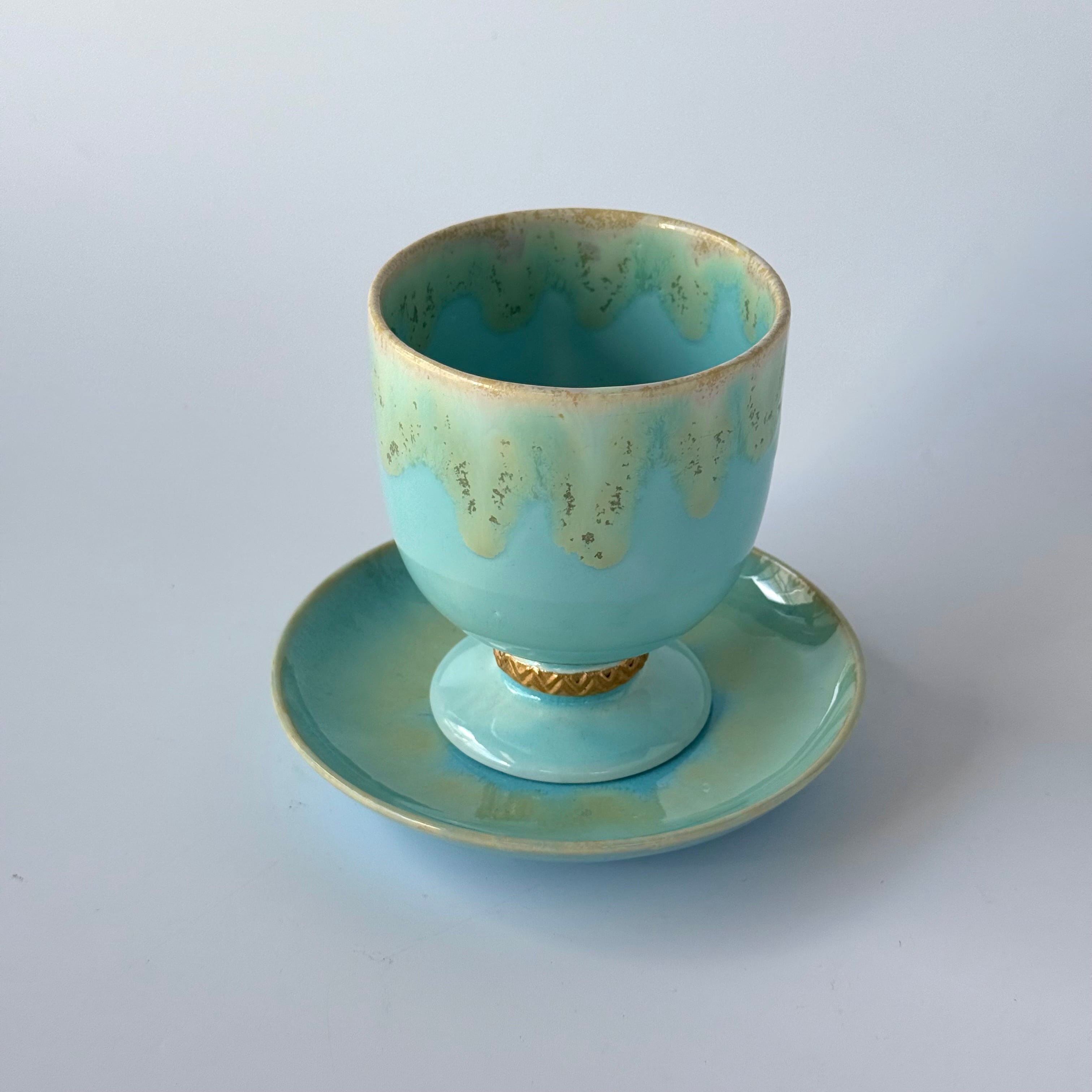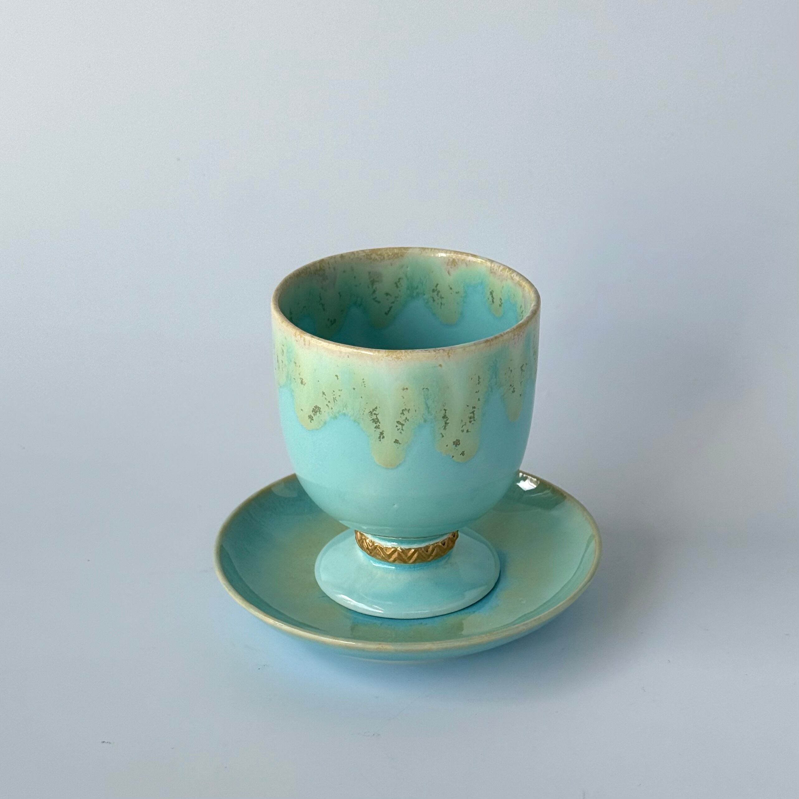脚付のゴールドが印象的なカップ。普段使いにも、特別な日にも食卓を華やかにしてくれます。