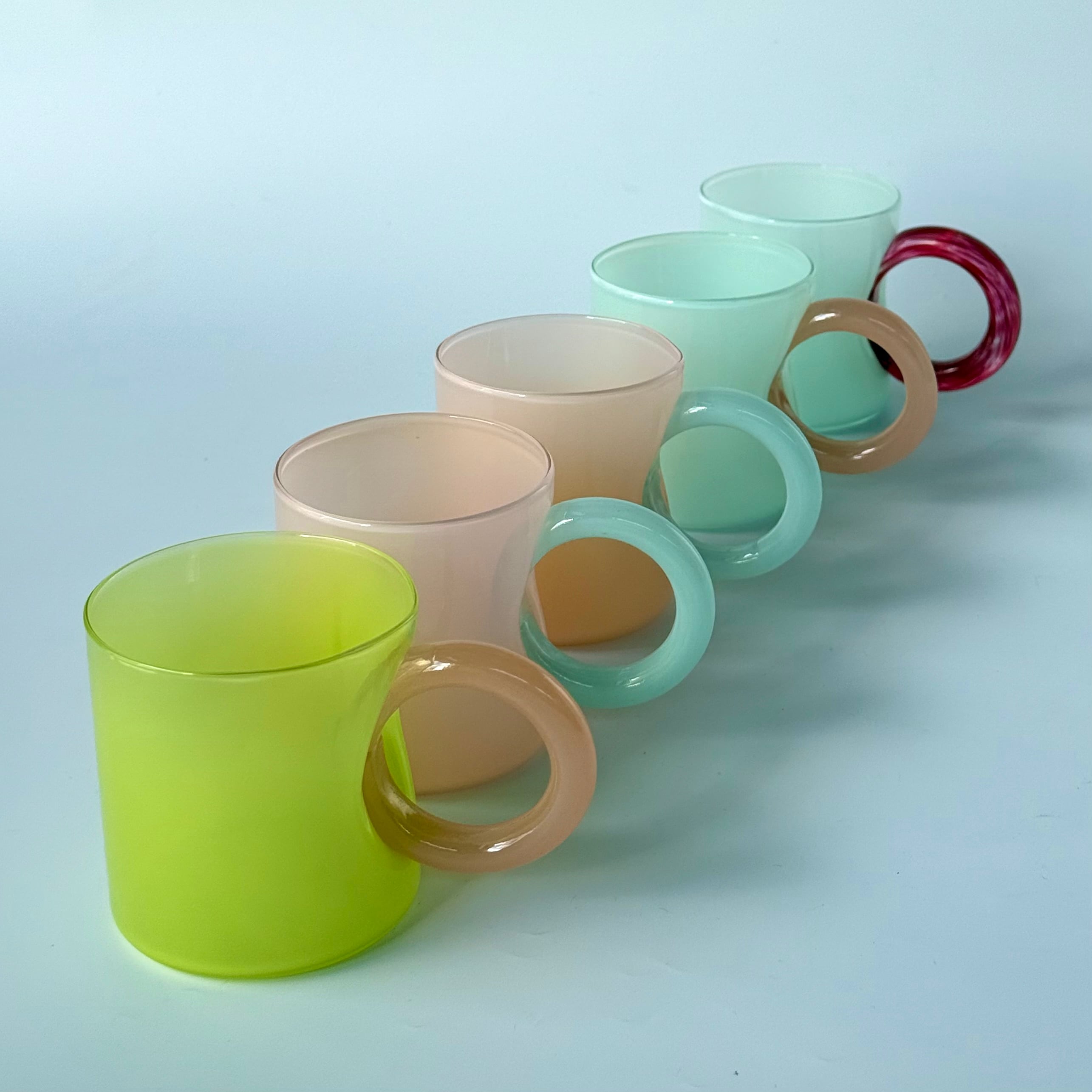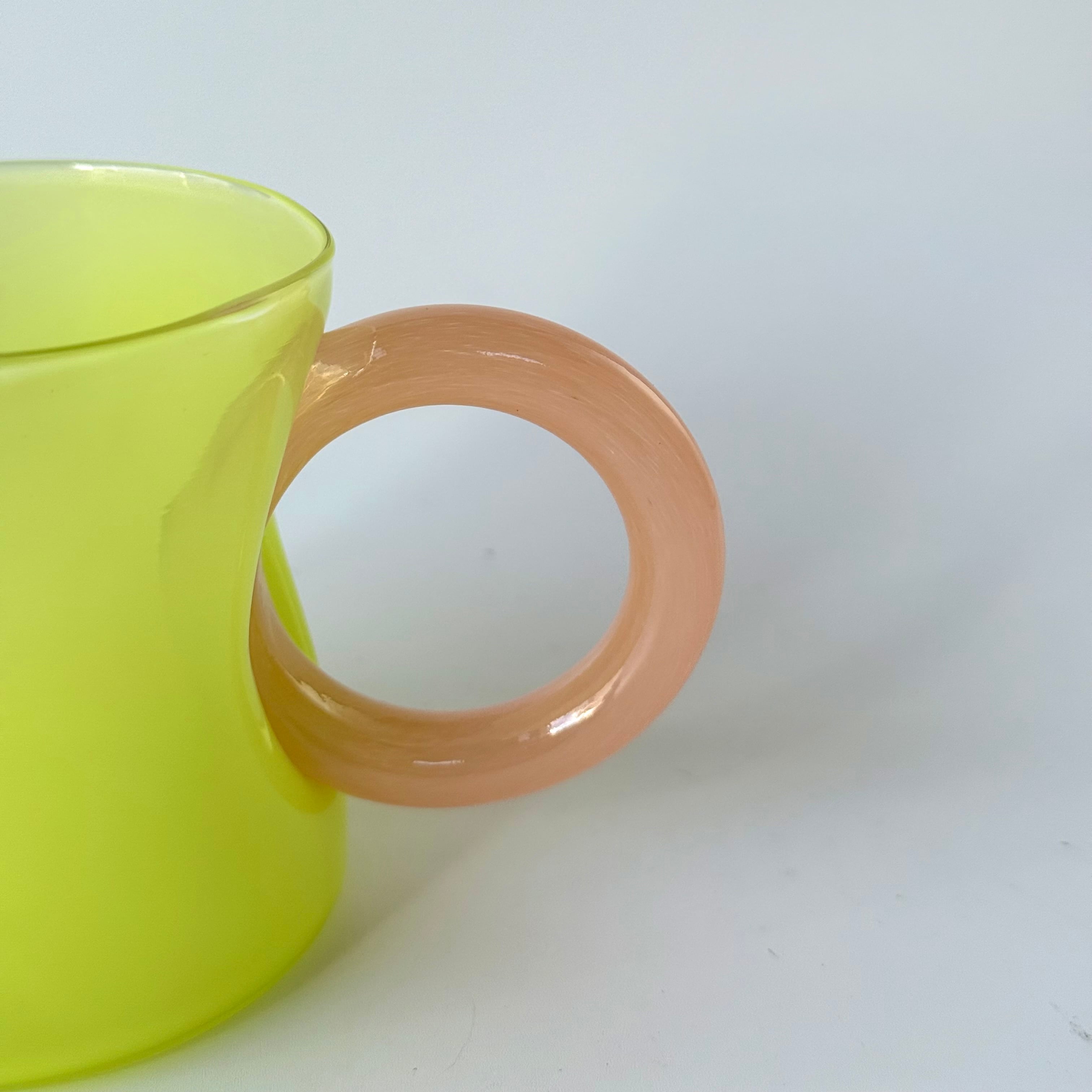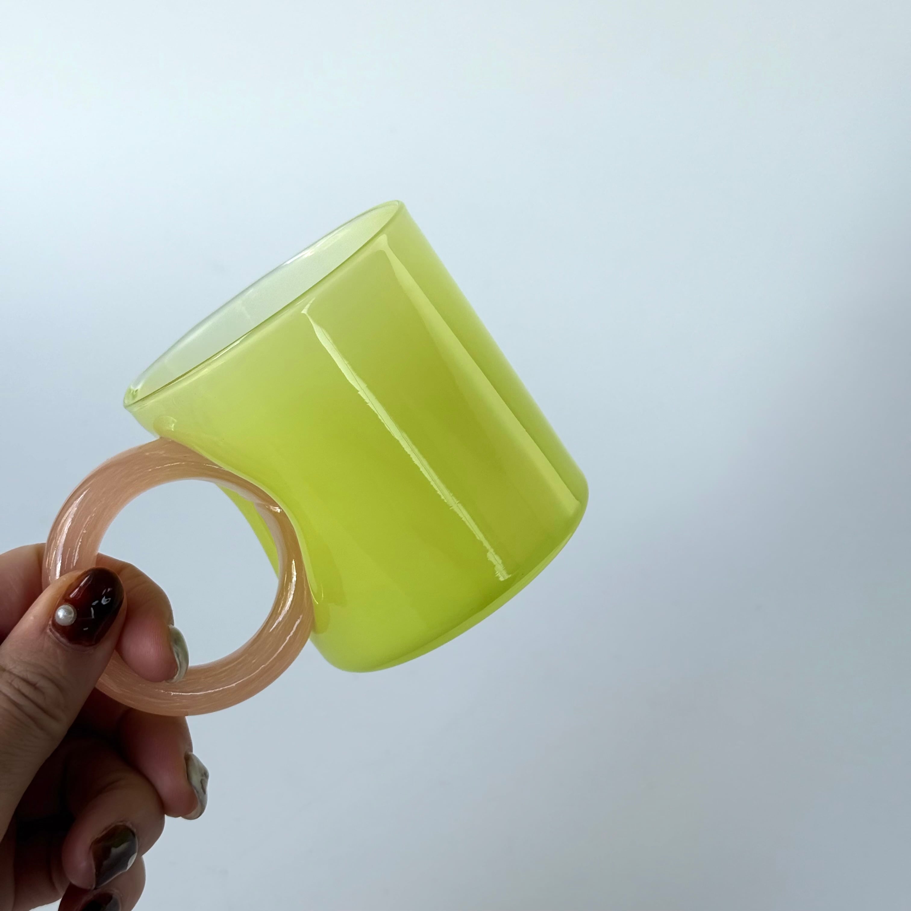 ・小さな気泡や不純物が、制作の過程で付着している場合がございます。また、取っ手部分に切り込みのような跡がございますが、制作の過程でできるものでヒビではありません。使用上は問題ない作品となっておりますので予めご了承ください。