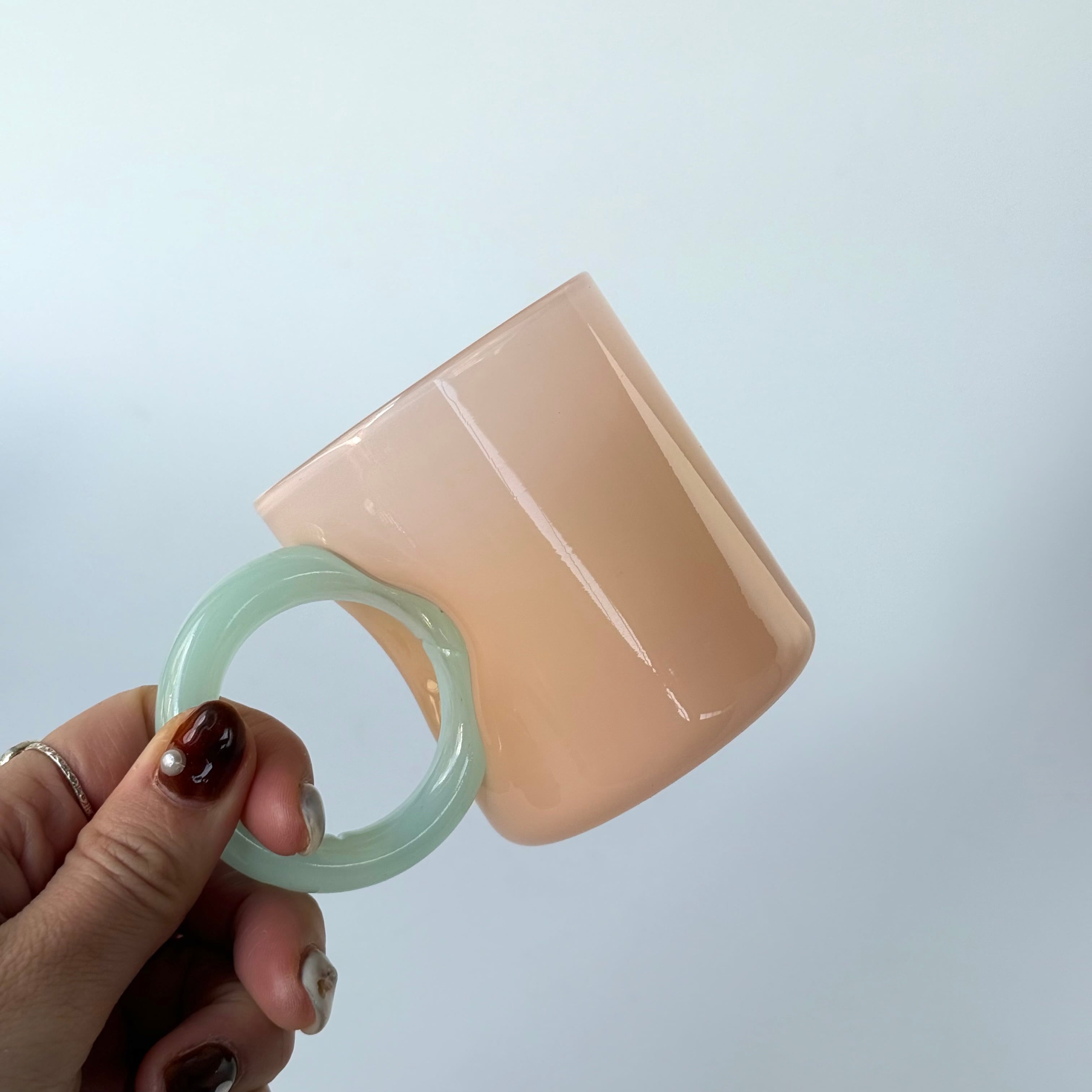 フランス語で「取っ手」を意味するこのグラスは、持ちやすさとデザイン性を兼ね備えています。見て、使って感じる心地よさ。