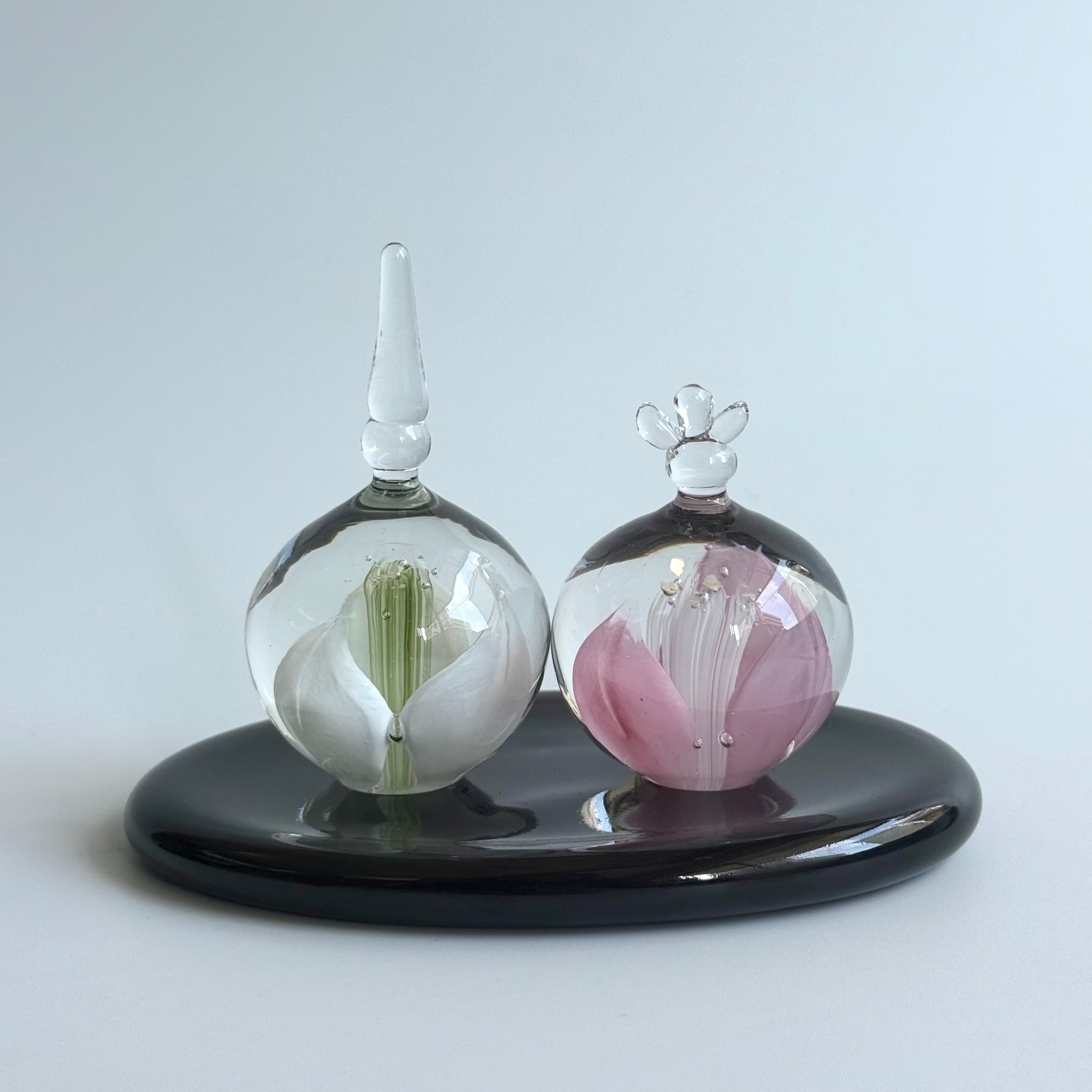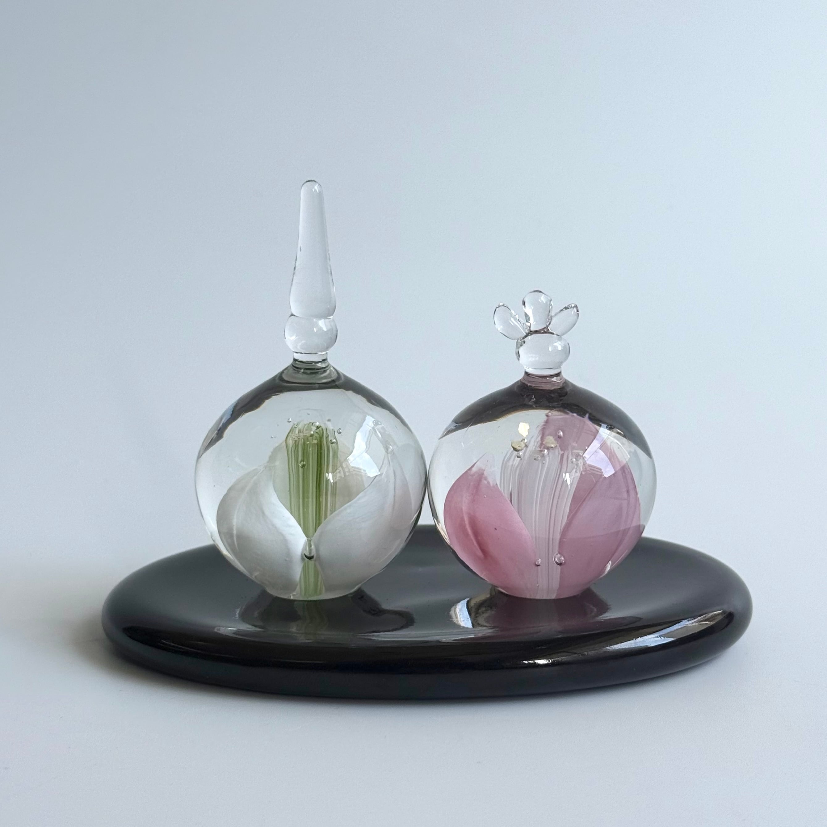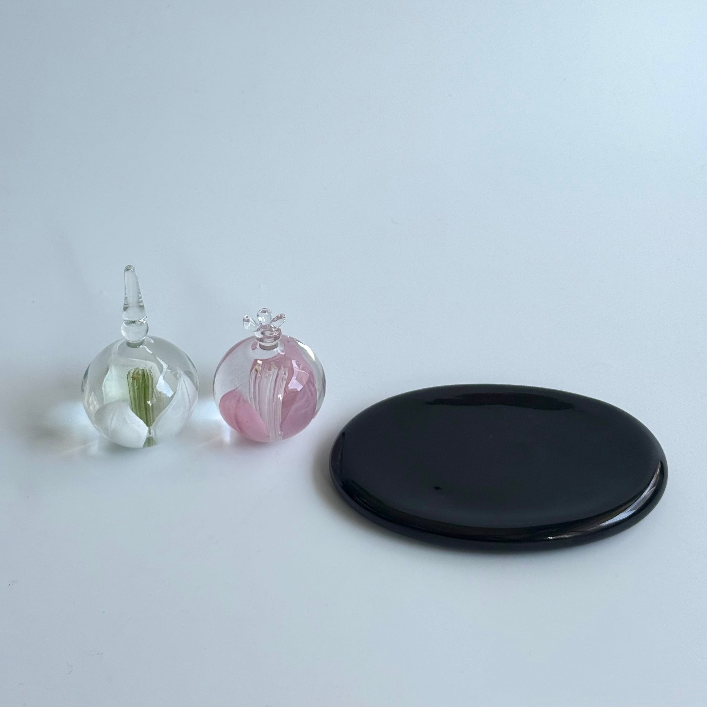 ガラスで作られたお道具、黒台がさらに洗練された印象です。