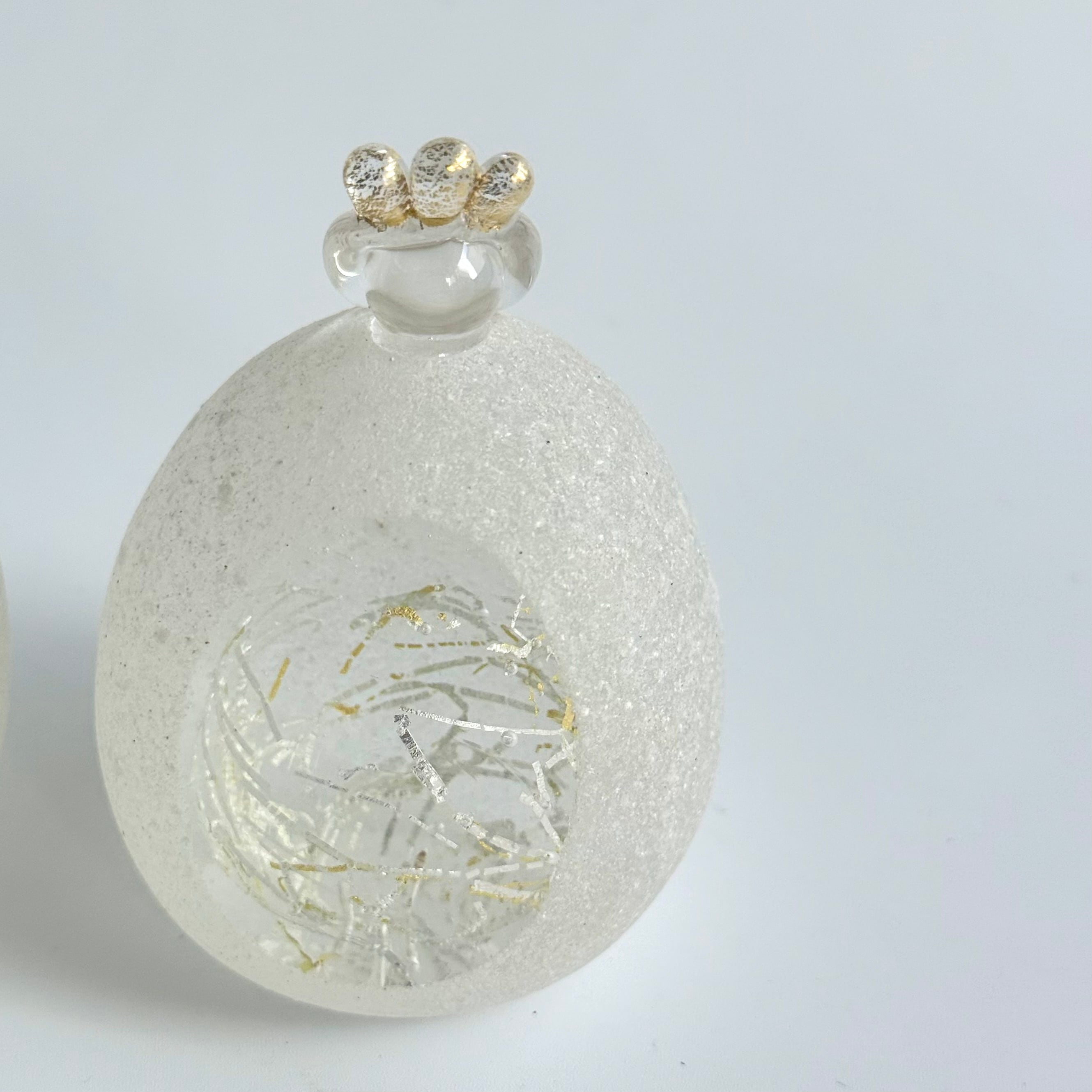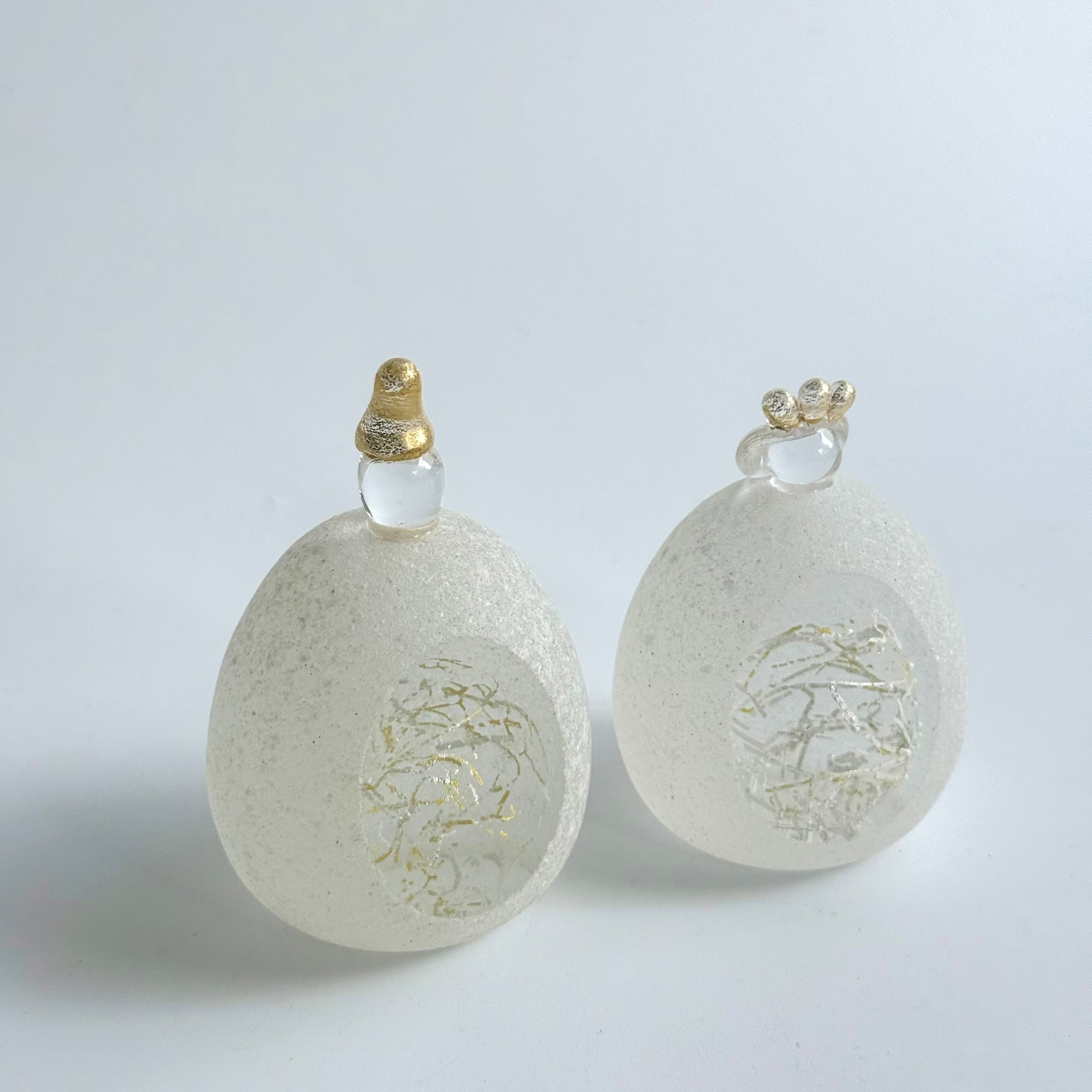 ガラスの表面はブラスト加工が施され、ざらっとした雪を思わせるような質感です。