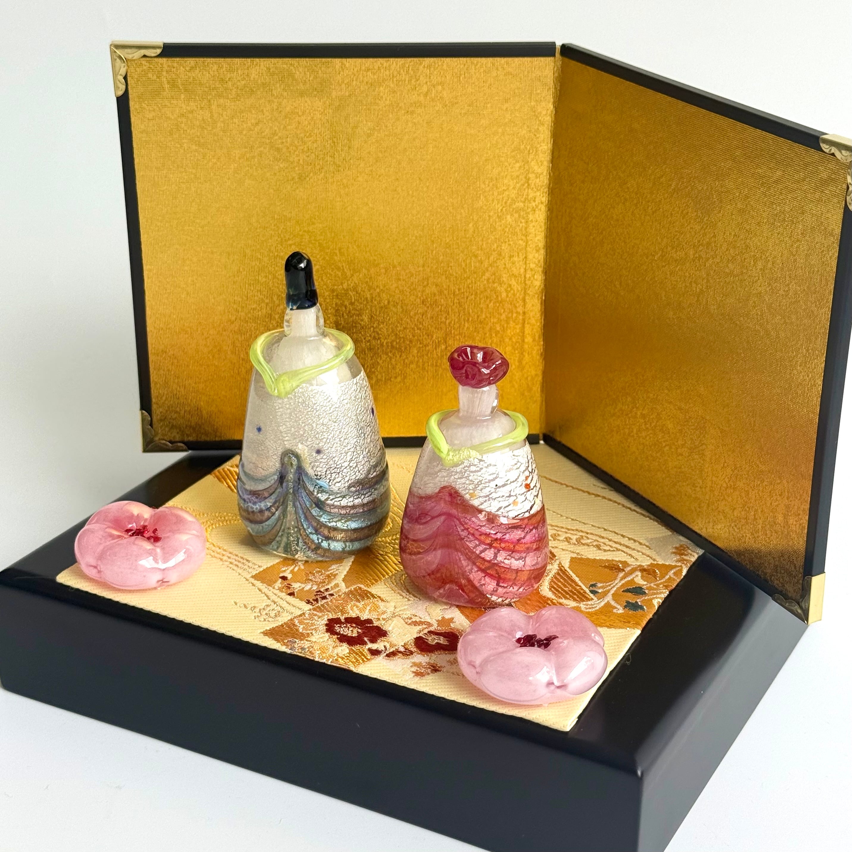 佐々木みどり ガラスのお雛様セット 梅【台・屏風・敷物・飾り・箱付き】