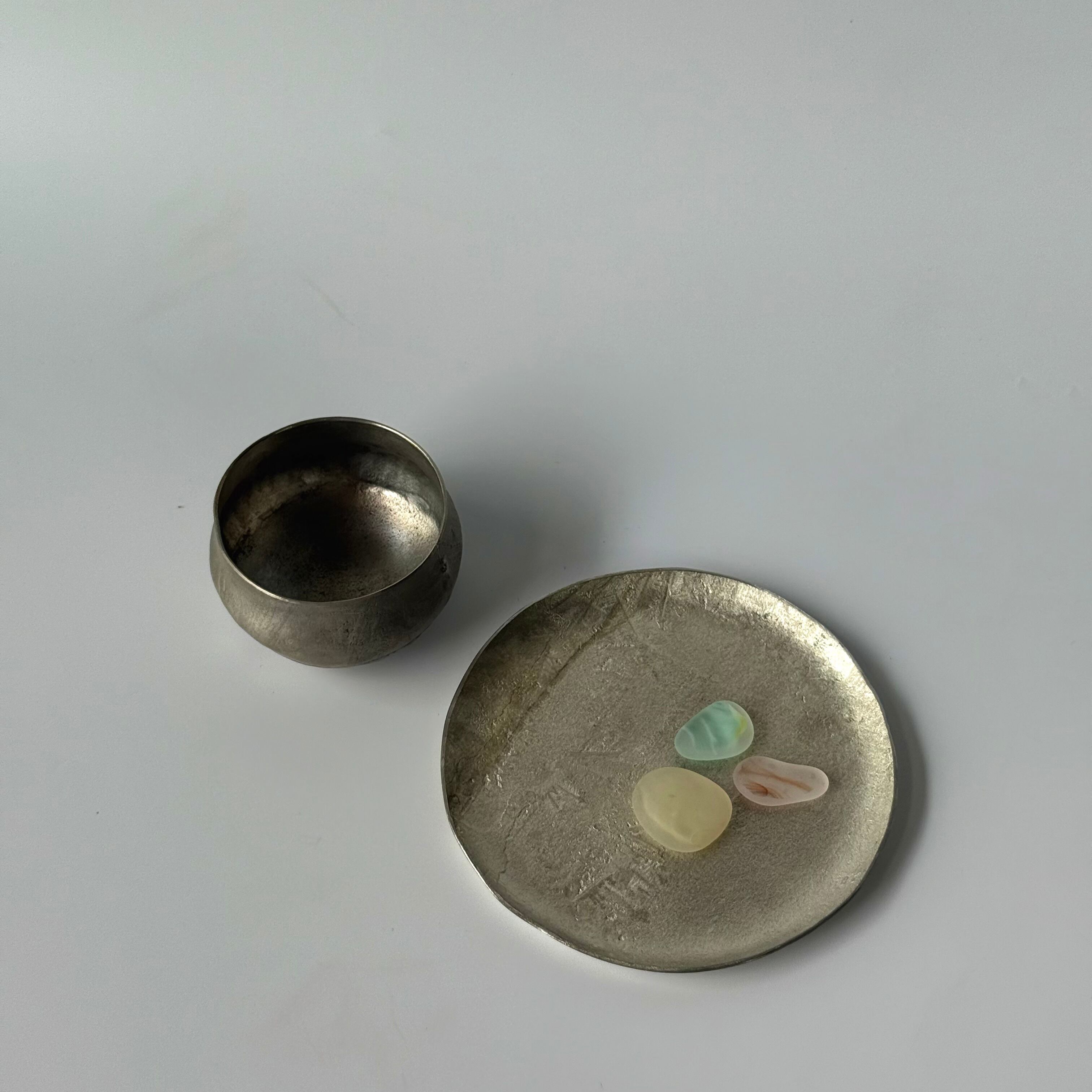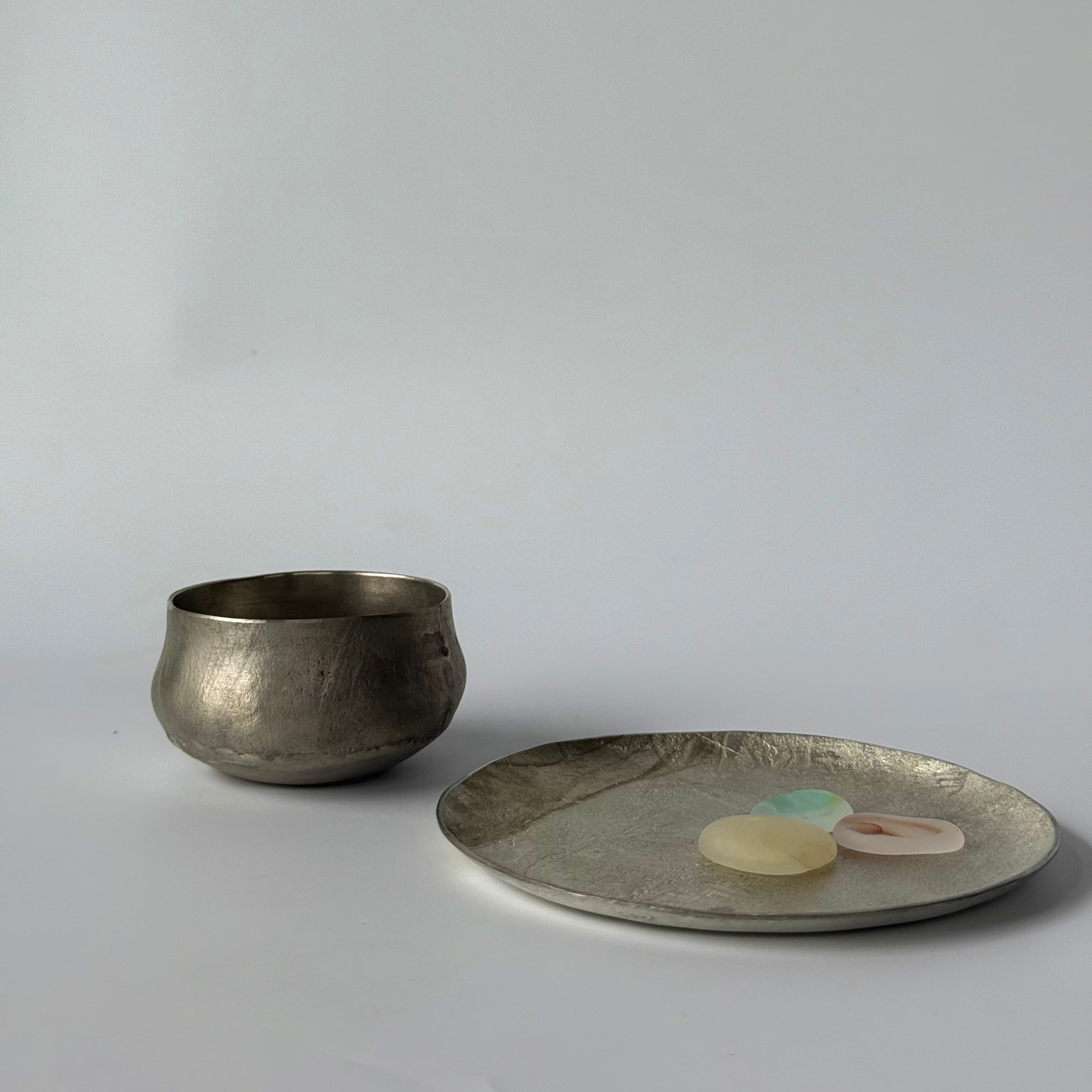 光を柔らかく包み込む、錫(すず)のうつわたち。
