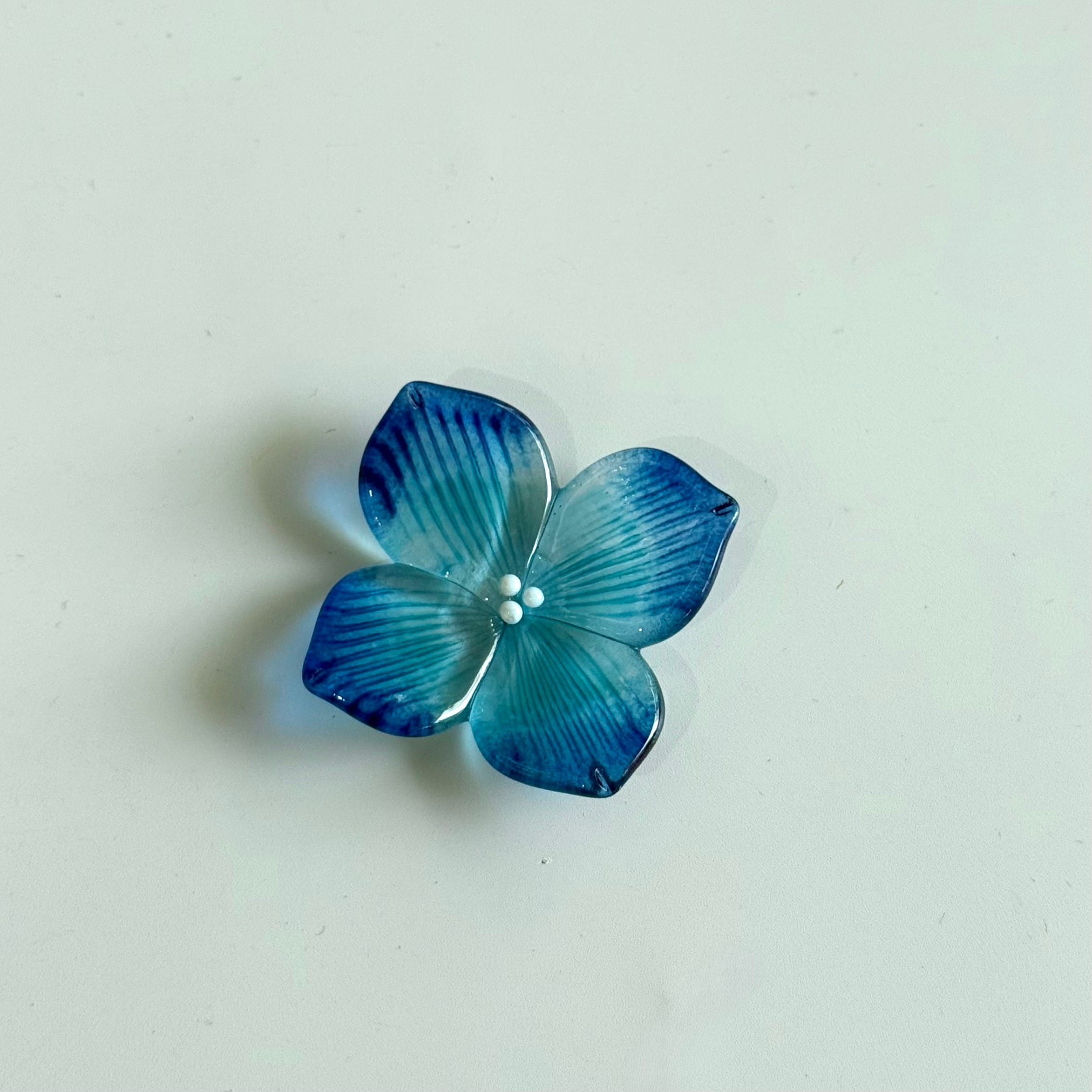 色鮮やかな紫陽花の花びらを表現した美しい色合いと透明感を持ち、光の加減で異なる表情を見せます。