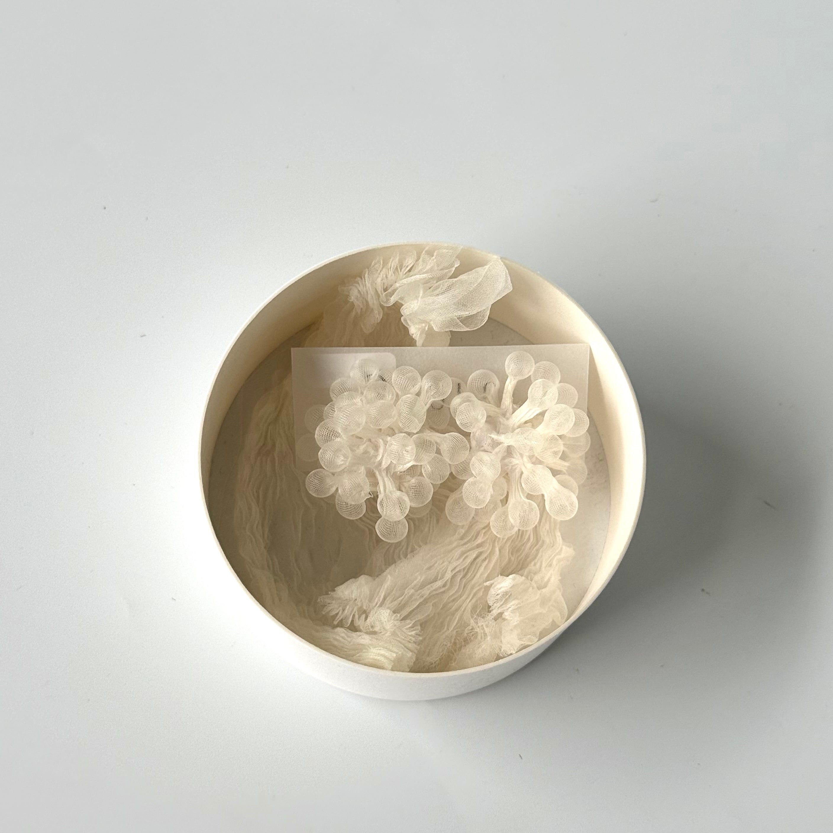 絹の薄い布を使って特殊な技法でつくられるアクセサリーブランド「Quguri」
