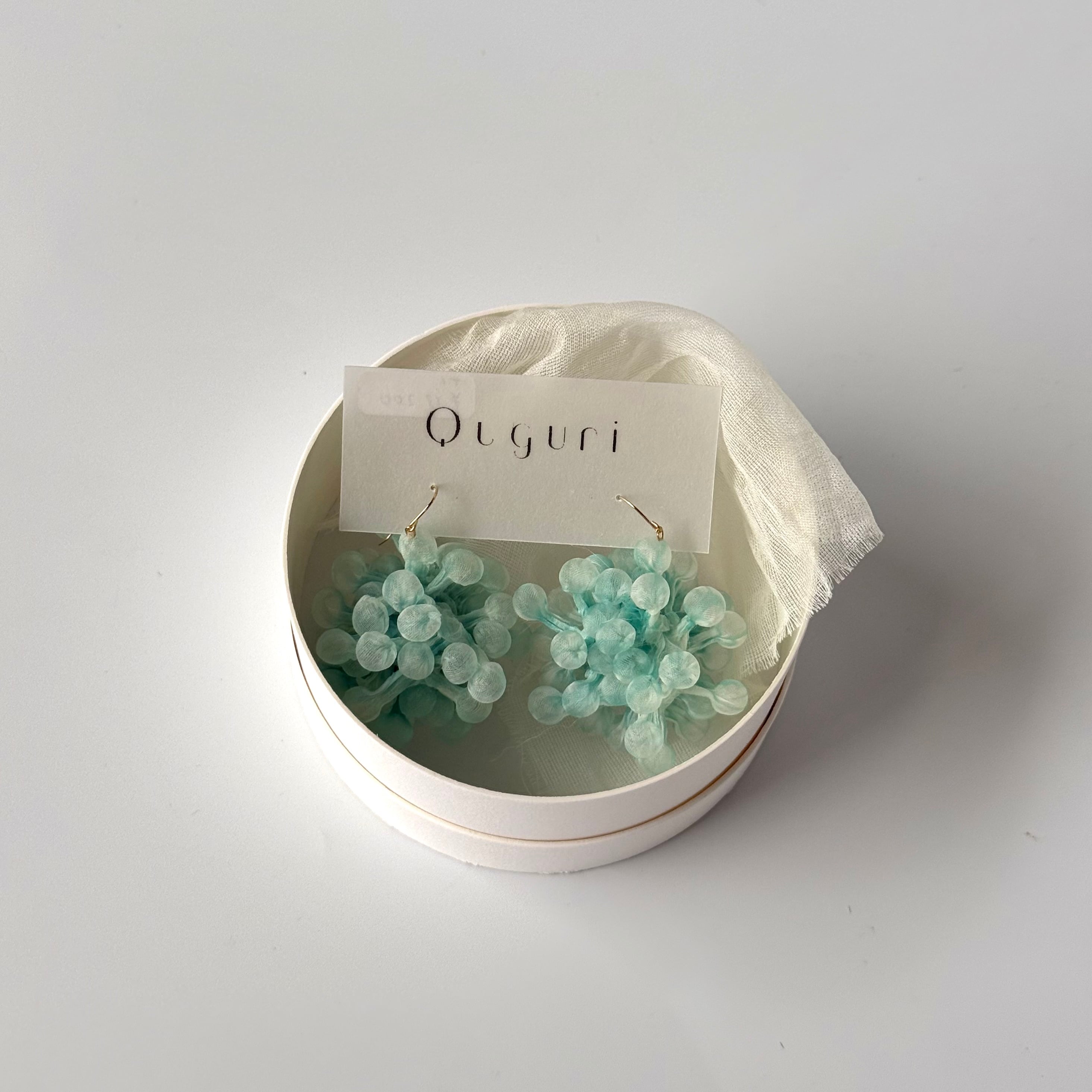 絹の薄い布を使って特殊な技法でつくられるアクセサリーブランド「Quguri」