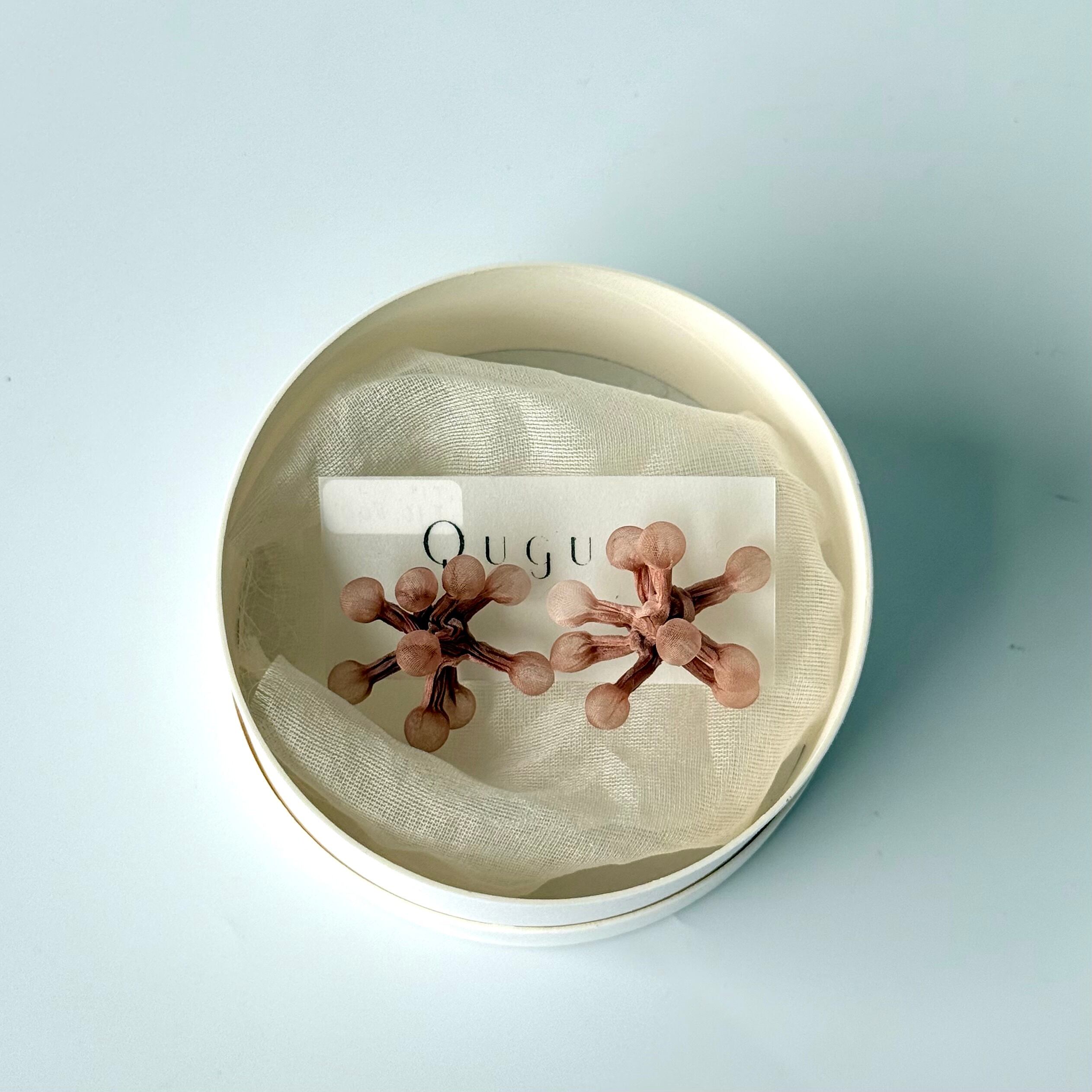 絹の薄い布を使って特殊な技法でつくられるアクセサリーブランド「Quguri」