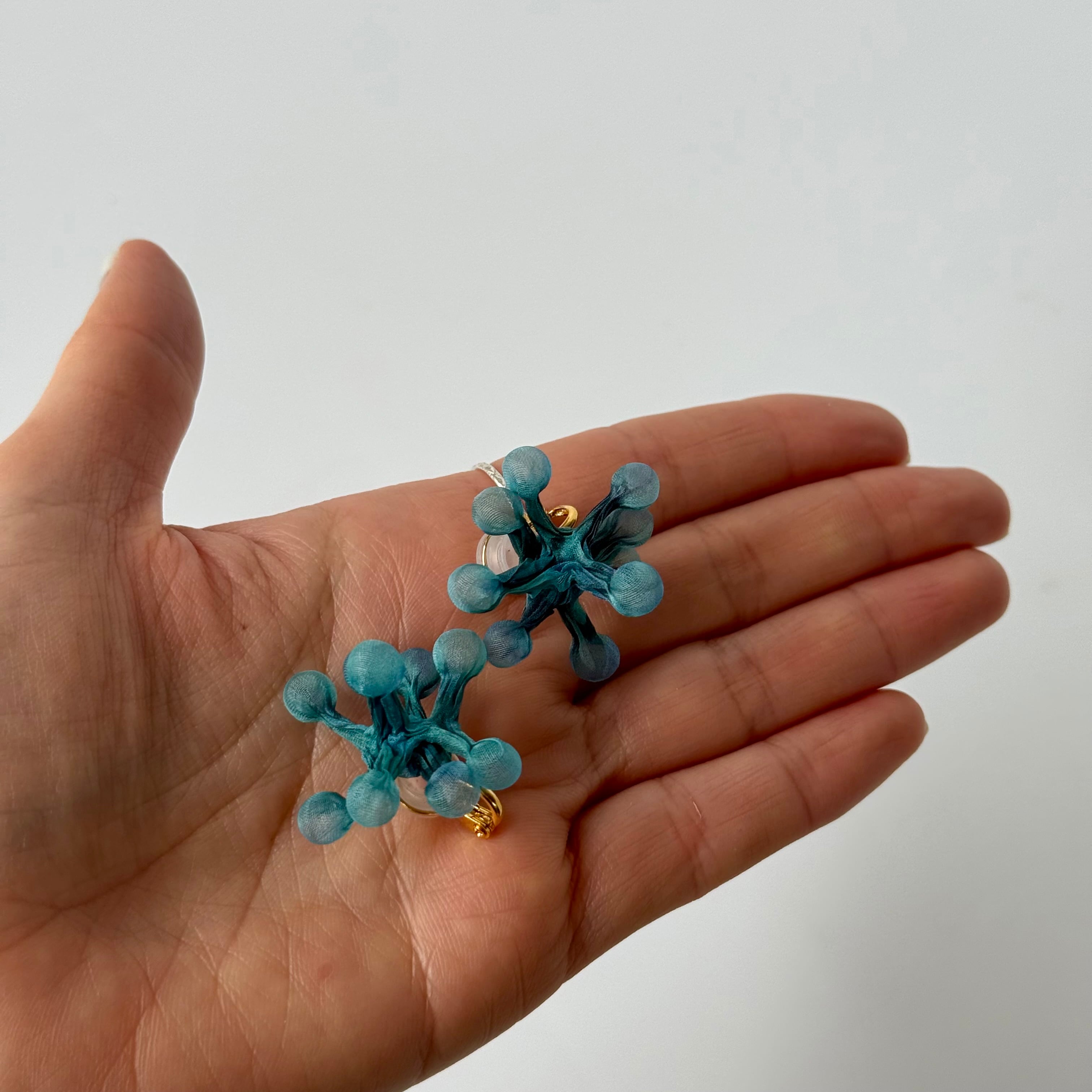 生命の持つ華やかさとその裏に潜む毒感を絞り染めと型染めによって立体造形物で表現しています。アクセサリーブランド「Quguri」展開中。