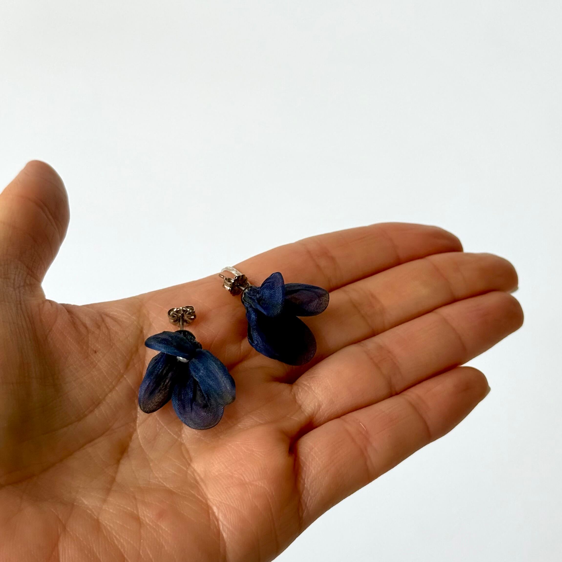 重ね染めした生地を絞り染めで立体的に仕上げた、アクセサリー。