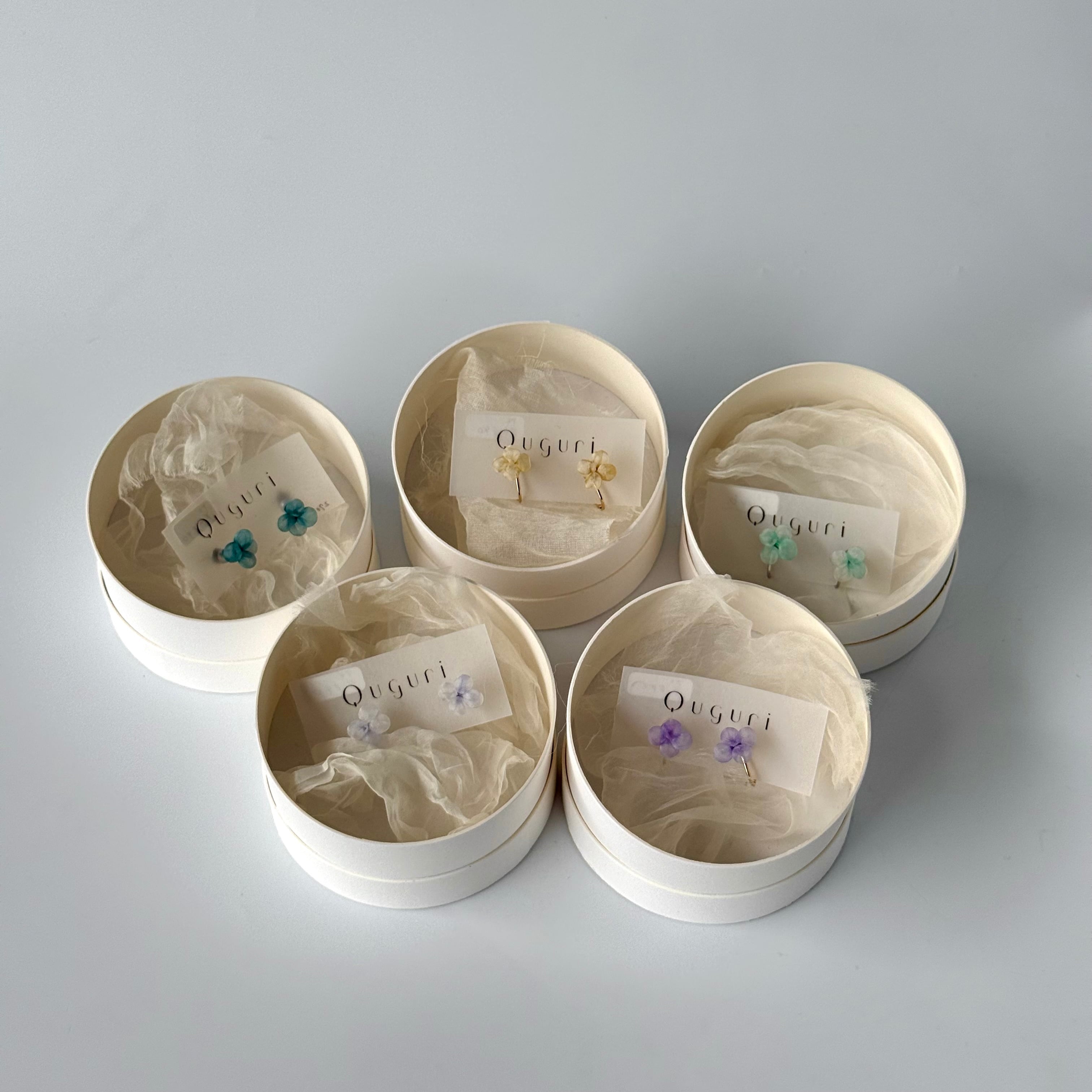絹の薄い布を使って特殊な技法でつくられるアクセサリーブランド「Quguri」