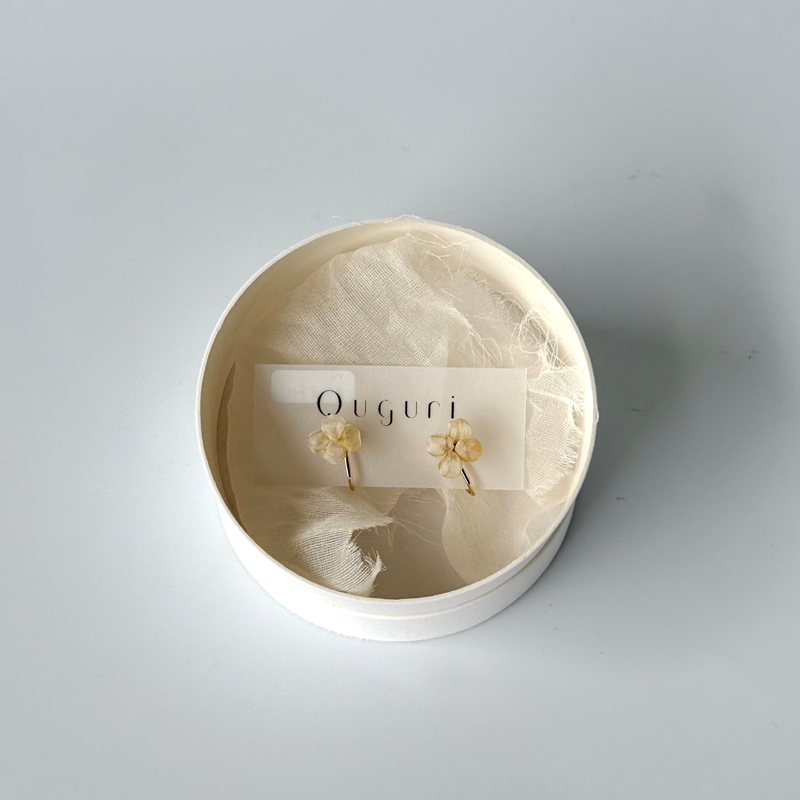 絹の薄い布を使って特殊な技法でつくられるアクセサリーブランド「Quguri」
