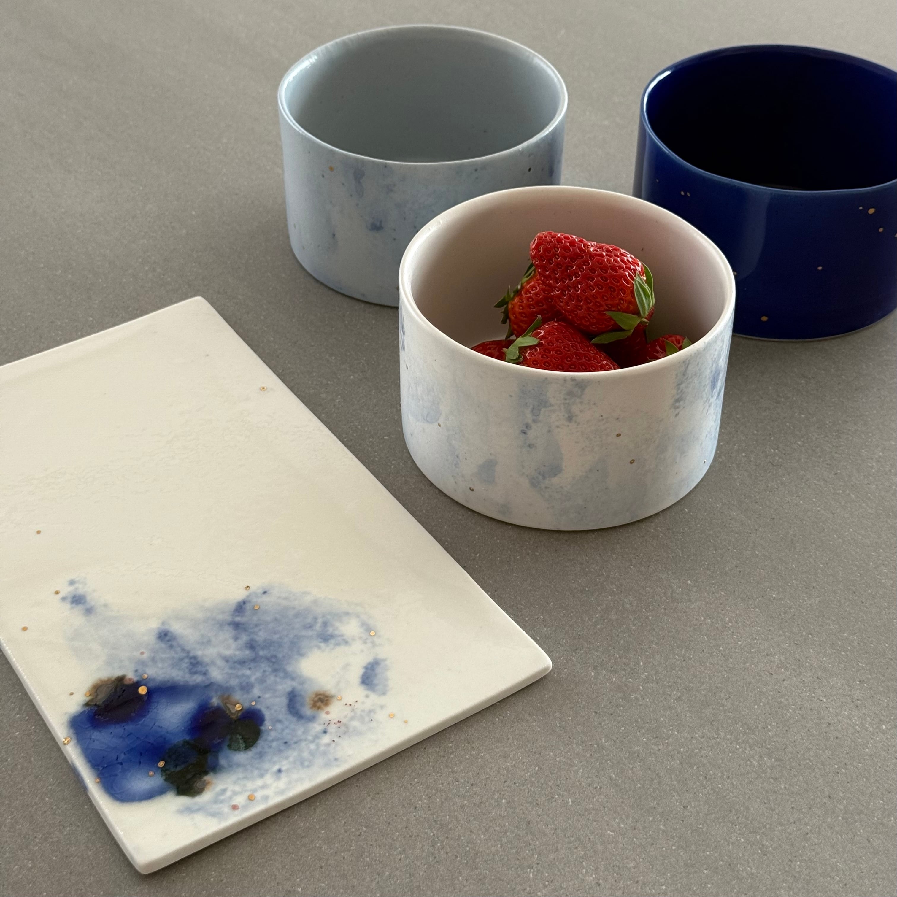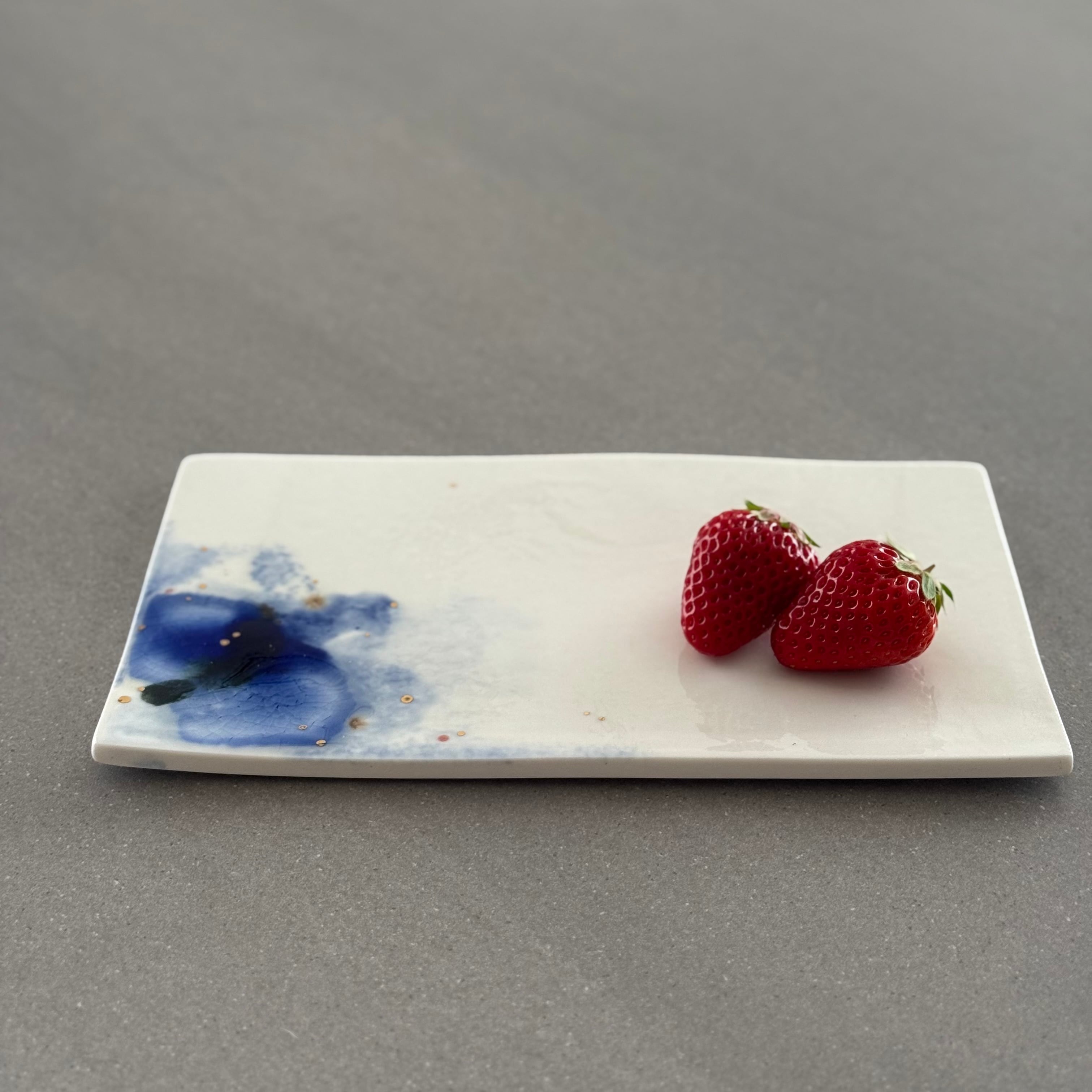 陶磁作家 犬堂南佳子さんのフラットプレートスクエアです。一つずつ丁寧に形作られており、かたちのゆらぎや色のちがいを楽しんでいただける作品です。