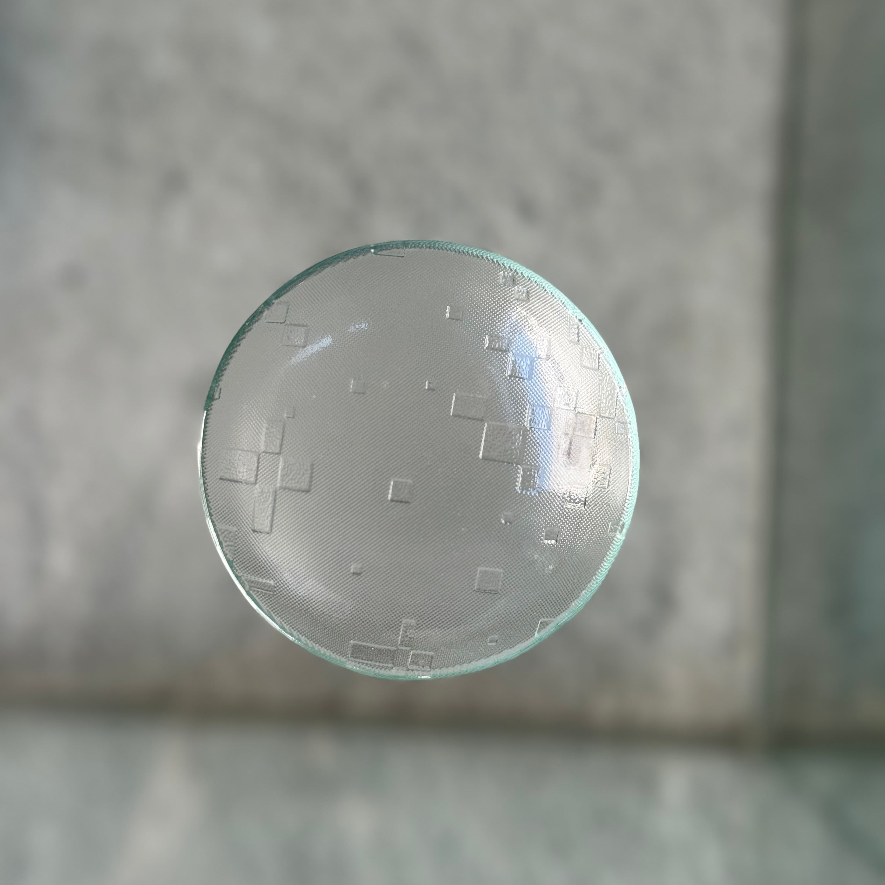 作品に使用している板ガラスは2mmの厚さで、昭和の時代から弊社工房にて保管していた未使用のものです。現在は廃番になっている、貴重なガラスです。