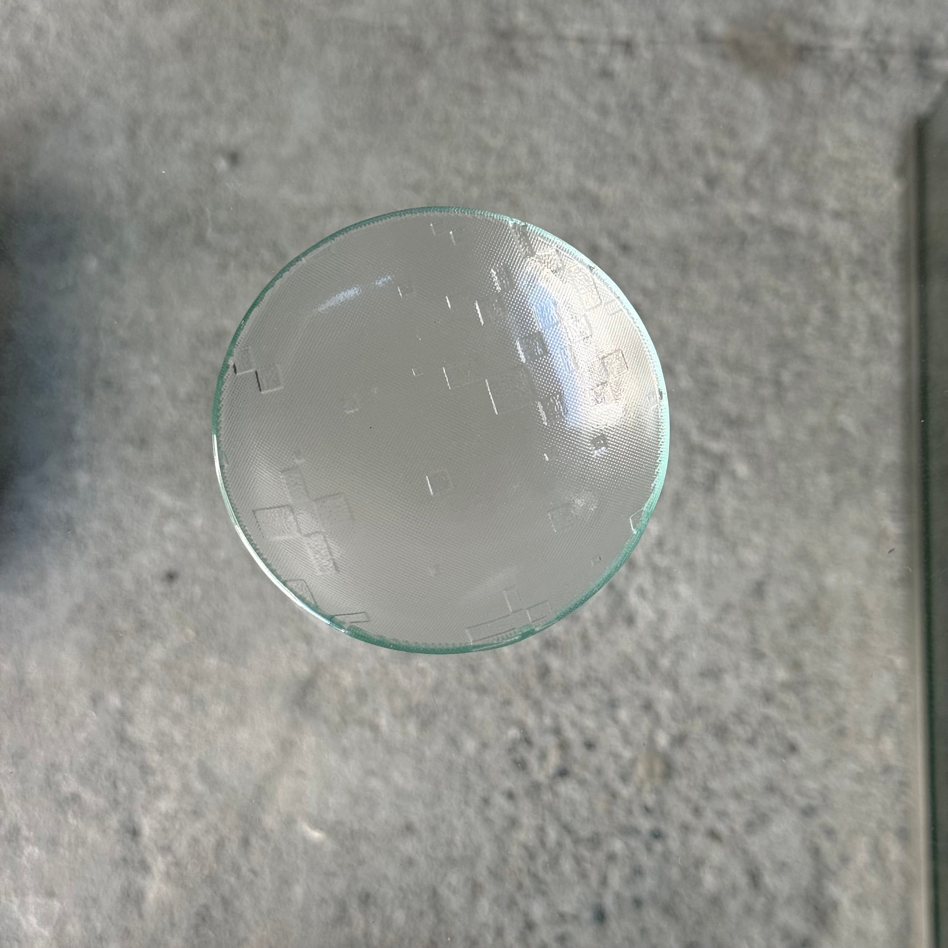 熟練の職人が、板ガラスを1つずつ手作業で丸くカットし、18時間かけて電気炉で焼成して制作しています。