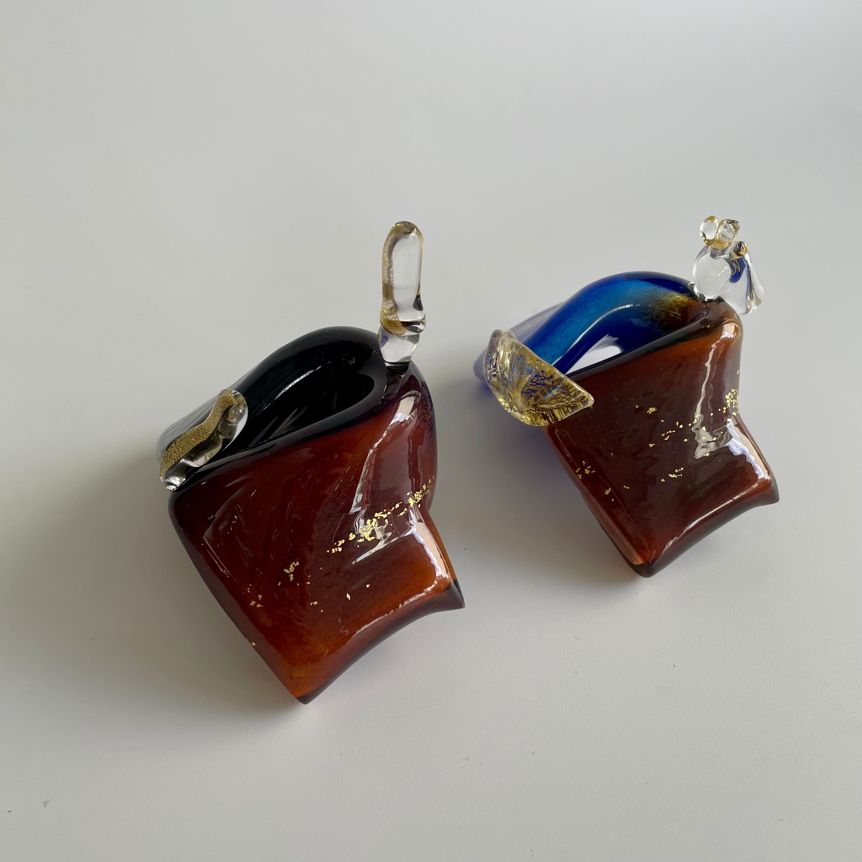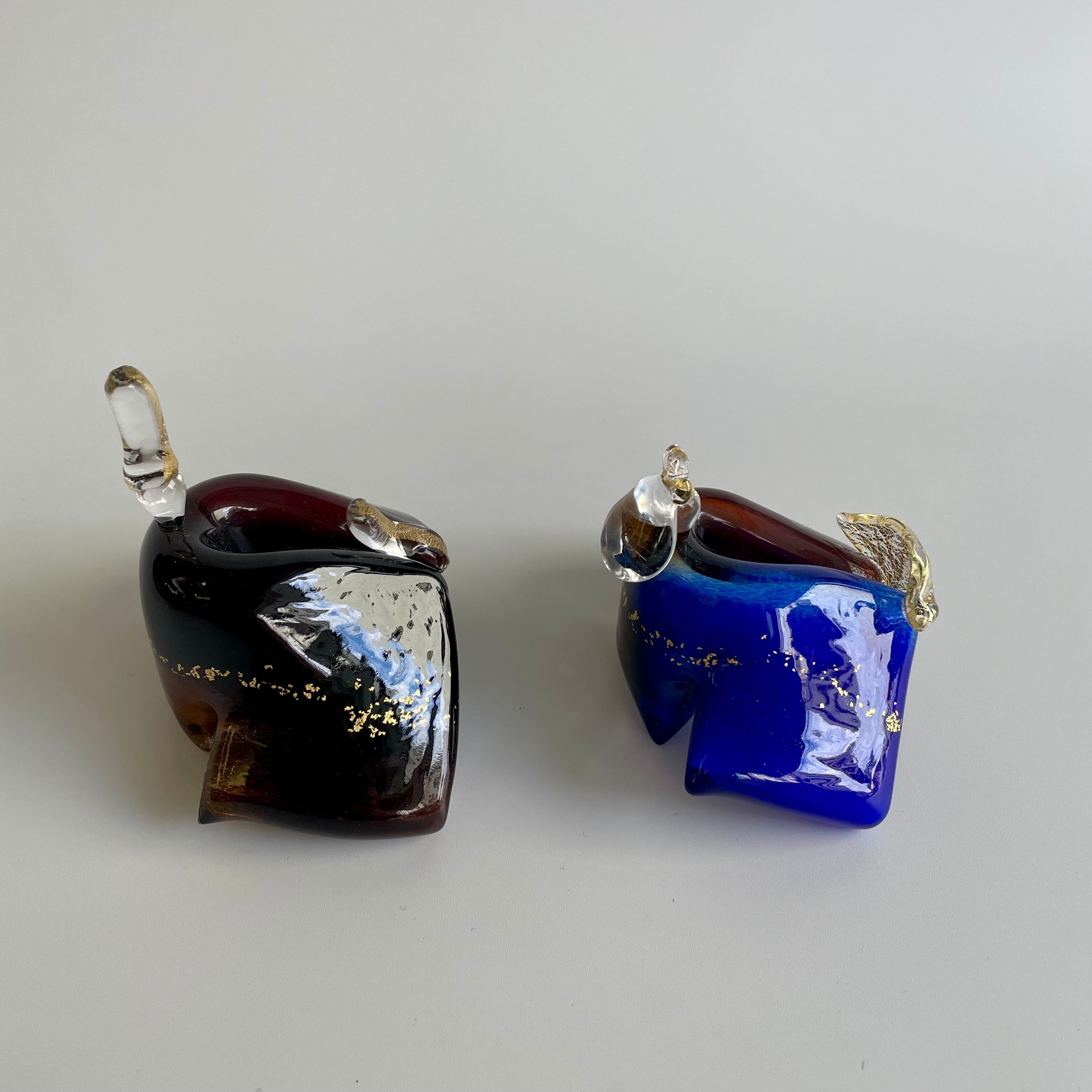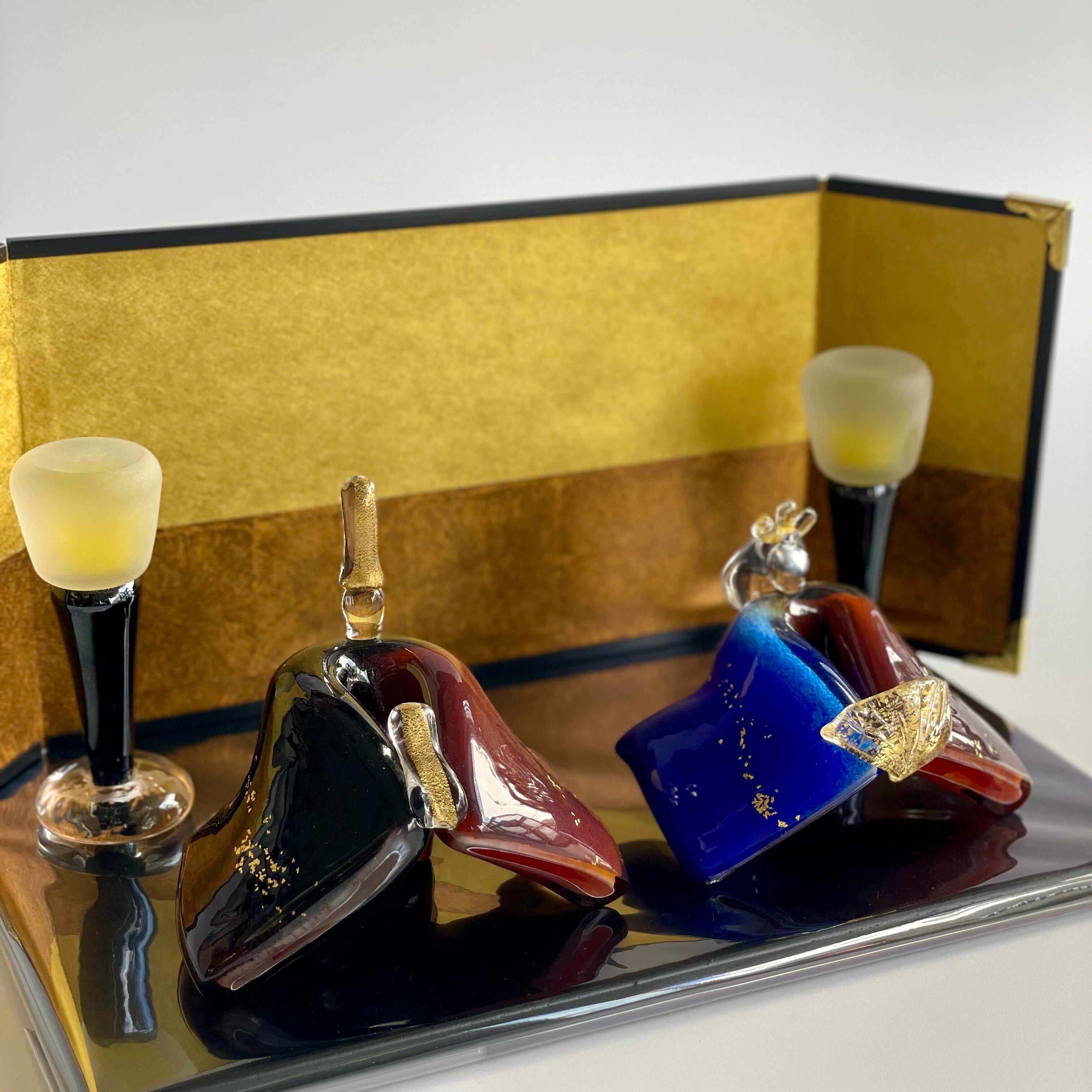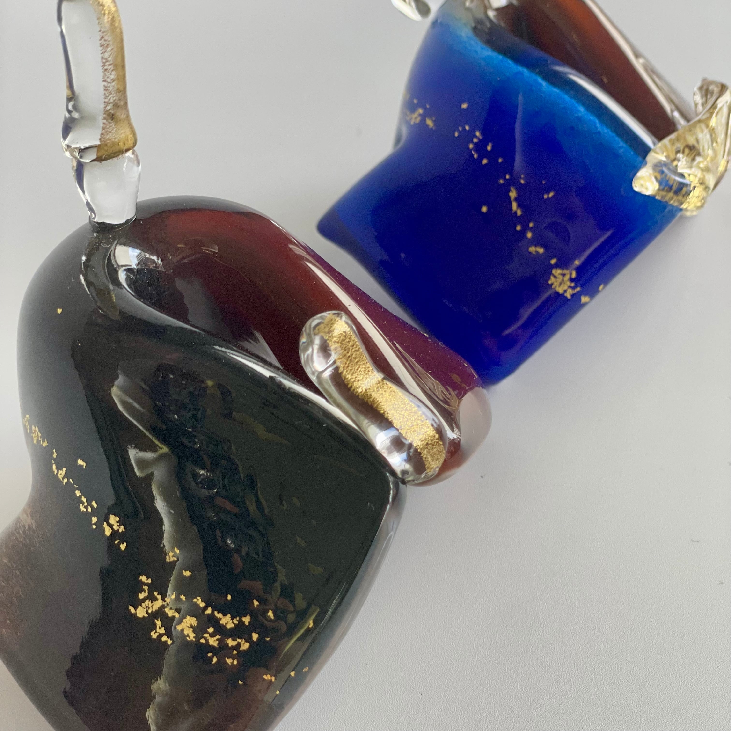 ガラスのお雛さま 夜桜です。吹きガラスで作られるお雛さまは、置く場所を選びません。シックな色合いが特徴で着物の質感が美しい作品となっています。