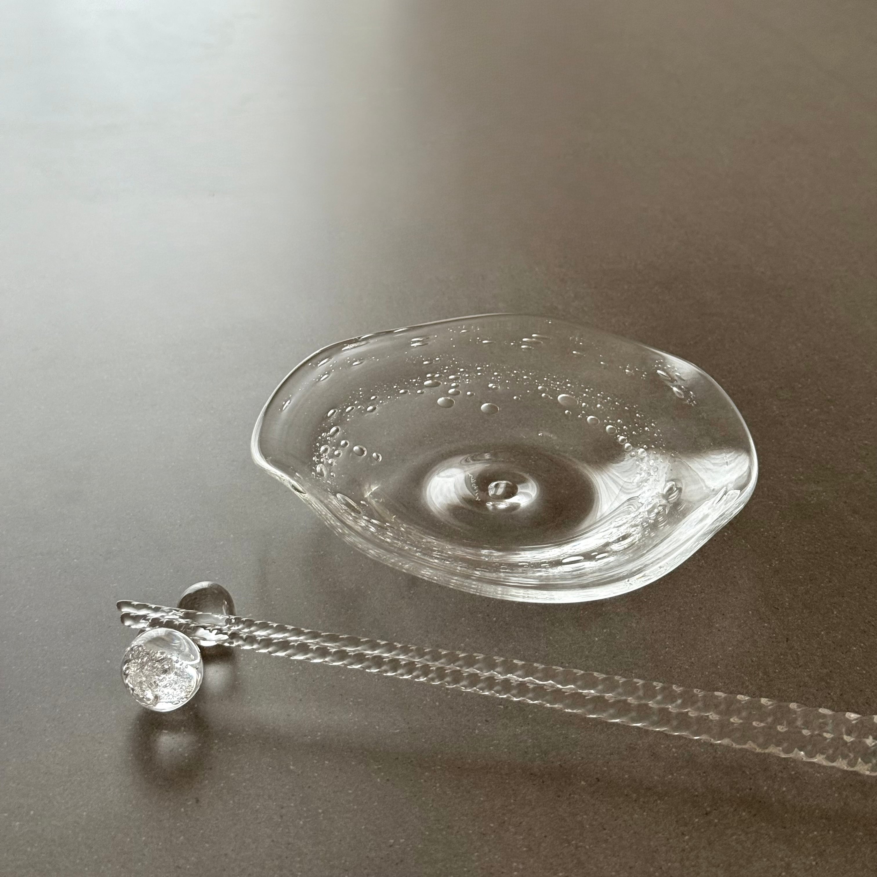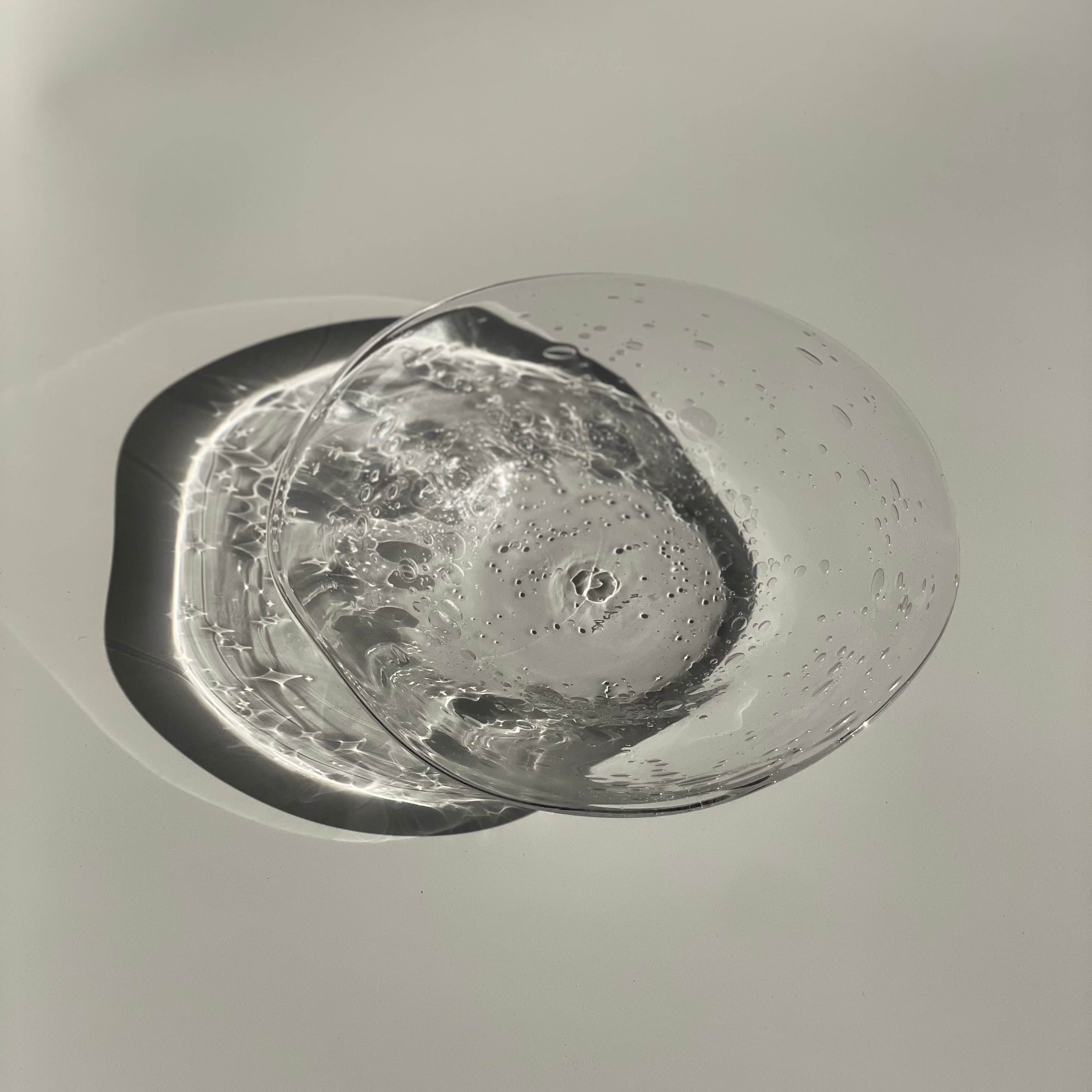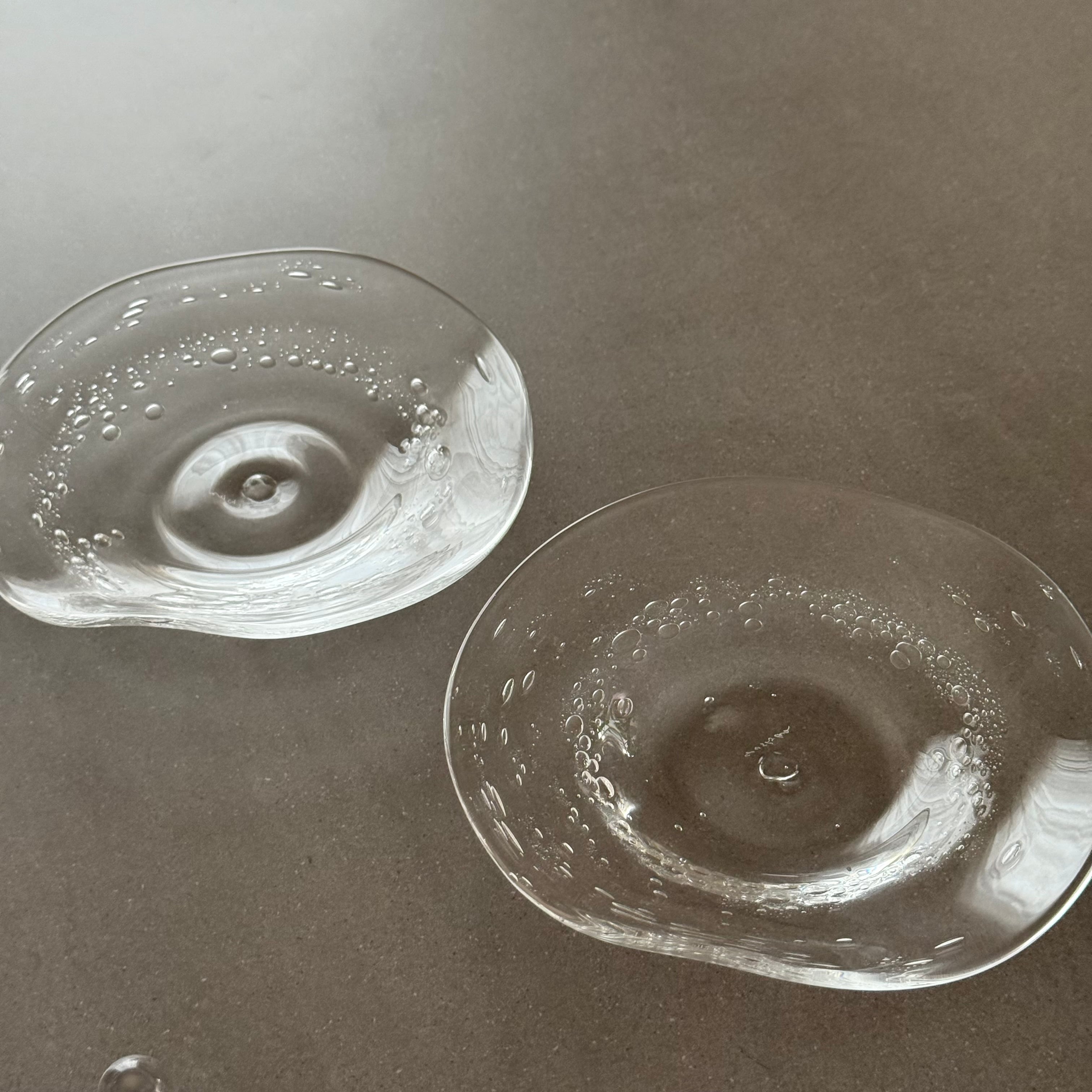 ガラスの中に閉じ込められた泡やゆらぎのある形。
