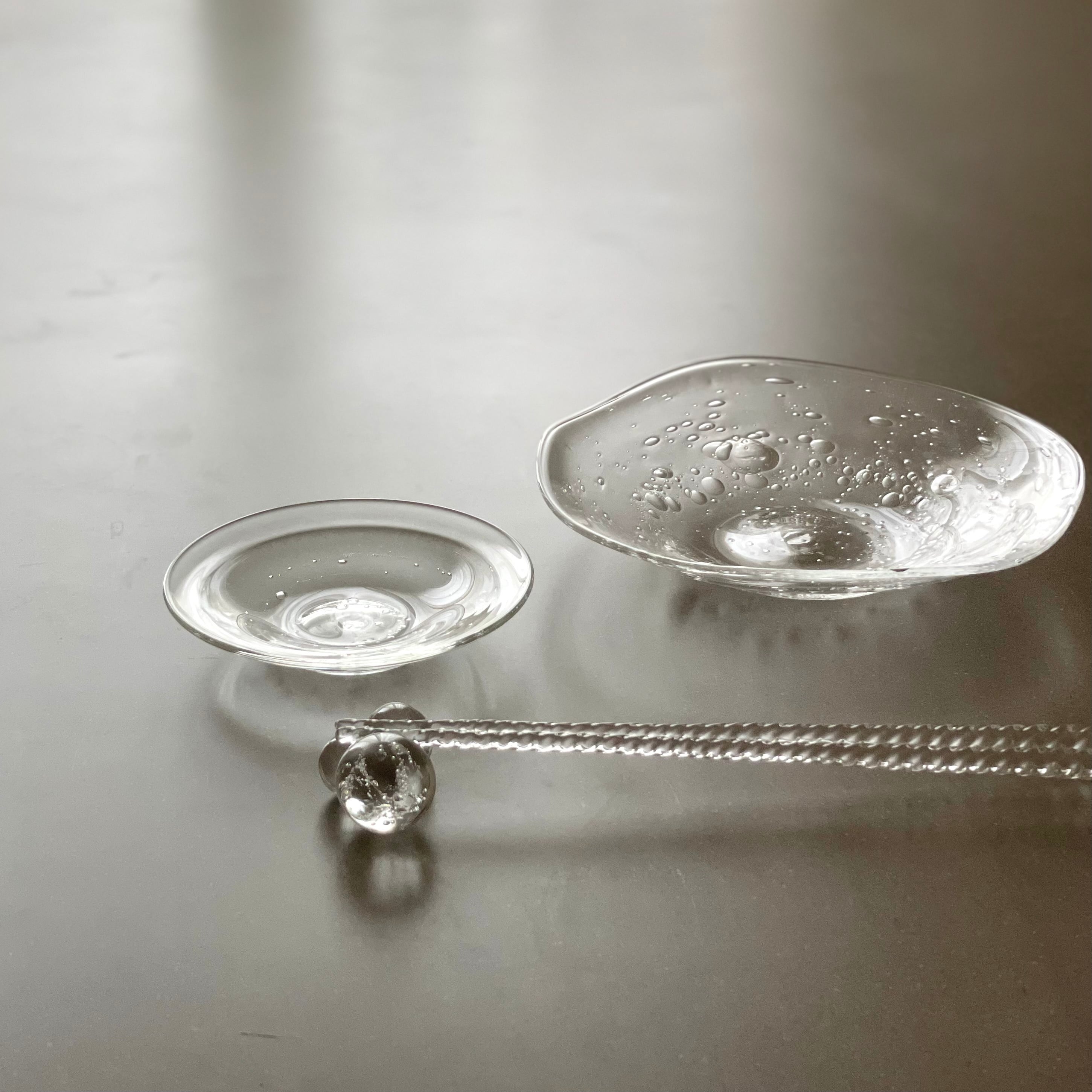 ガラスの中に閉じ込められた泡や水面を思わせるゆらぎのある形。