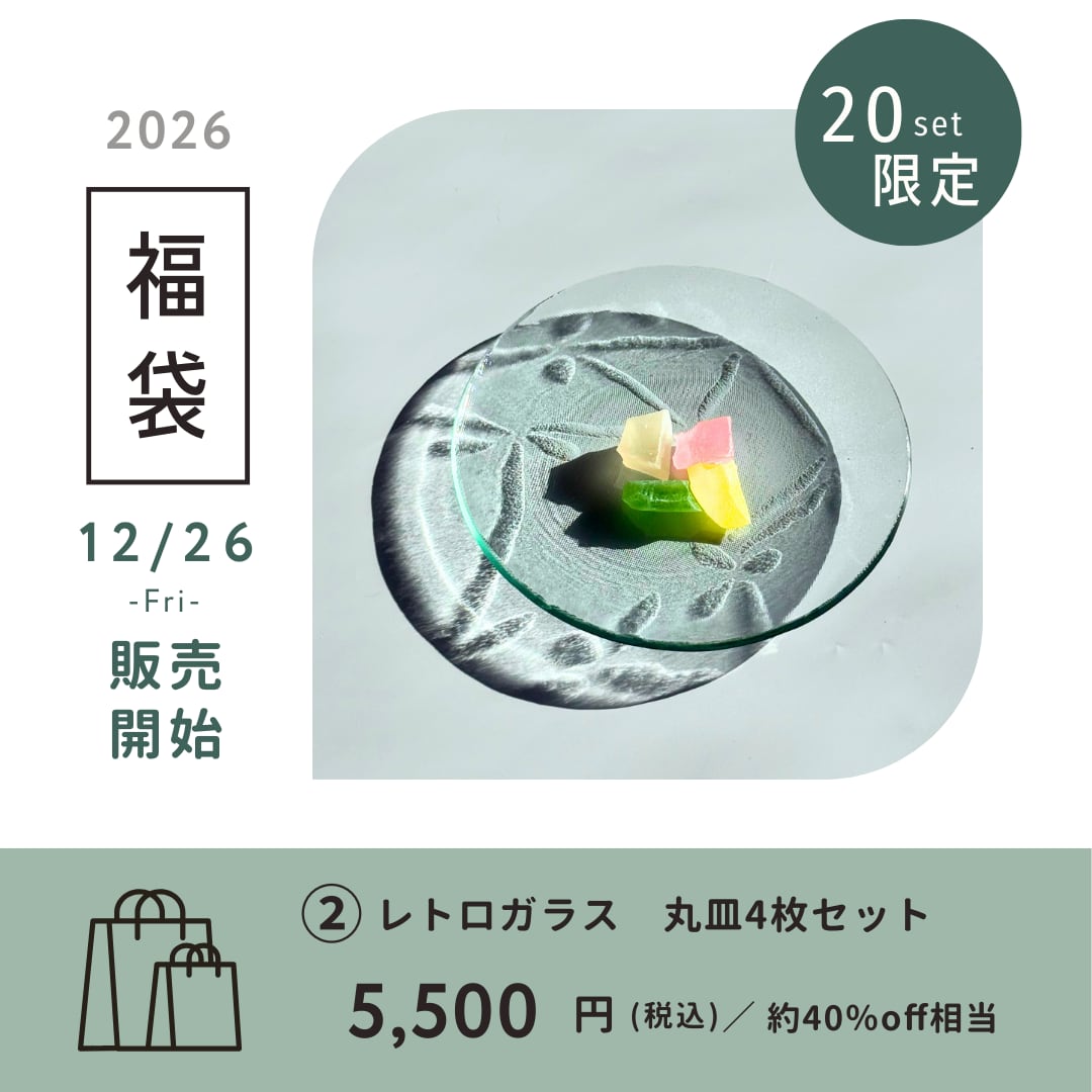 レトロガラス 丸皿4枚セット|2026 福袋②