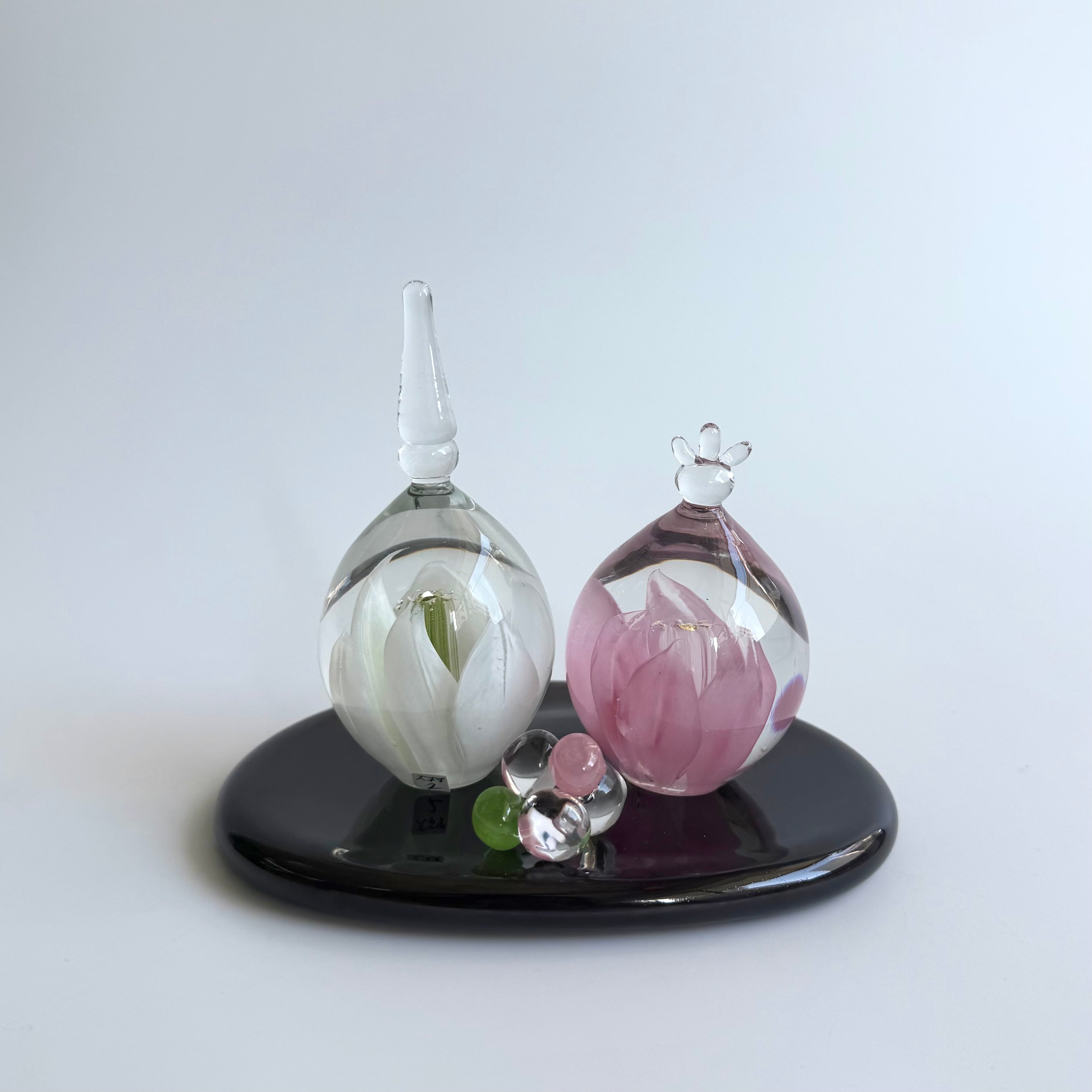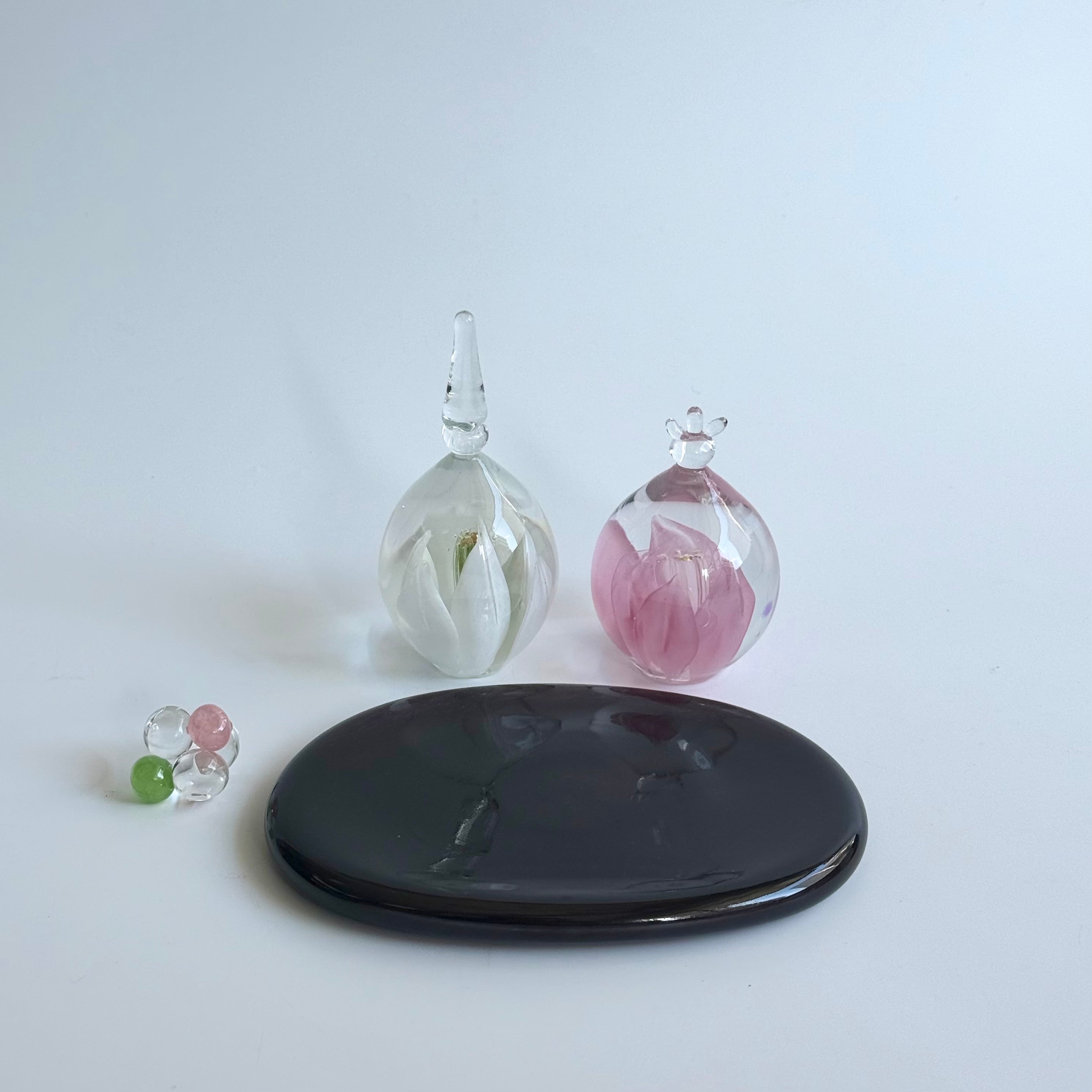 ガラスで作られたお道具、黒台がさらに洗練された印象です。